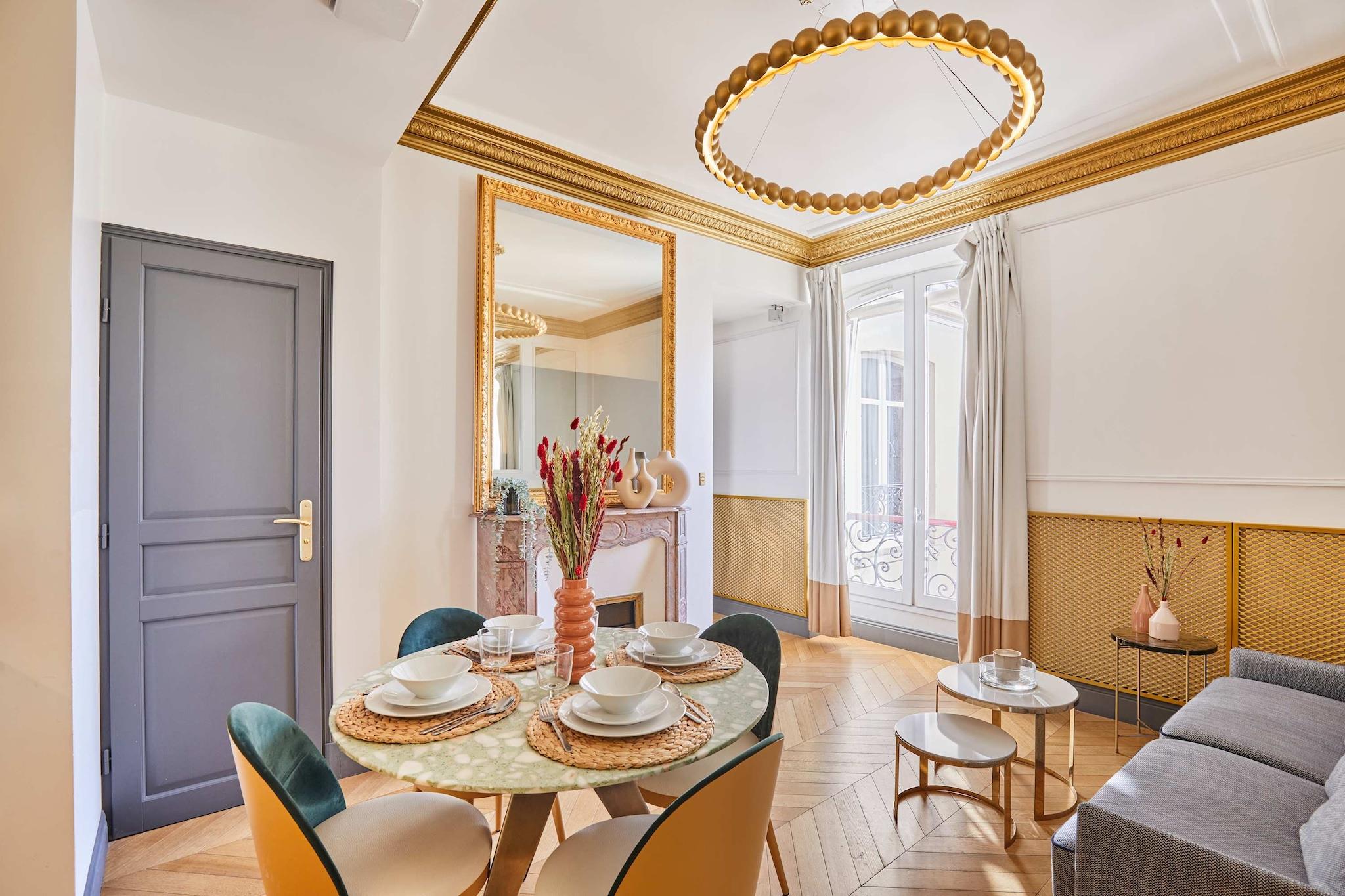 Fremragende parisisk lejlighed til 6 personer med aircondition, på 4. sal med elevator, ideelt beliggende i hjertet af Paris. Lejligheden er beliggende mellem Rue du Faubourg Saint-Honoré, Avenue des Champs Elysées og den berømte Avenue Montaigne. Denne smagfuldt indrettede lejlighed giver dig mulighed for at tilbringe et behageligt ophold i hjertet af det parisiske liv.
