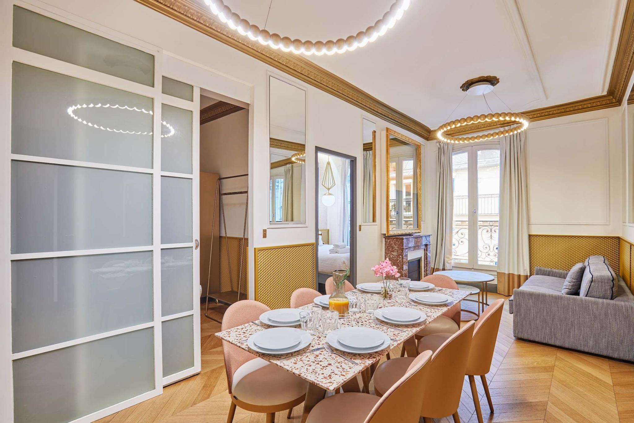 Sublim parisisk lejlighed til 6-8 personer med aircondition, på 4. sal med elevator, ideelt beliggende i hjertet af Paris. Lejligheden er beliggende mellem Rue du Faubourg Saint-Honoré, Avenue des Champs Elysées og den berømte Avenue Montaigne. Denne smagfuldt indrettede lejlighed giver dig mulighed for at tilbringe et behageligt ophold i hjertet af det parisiske liv.