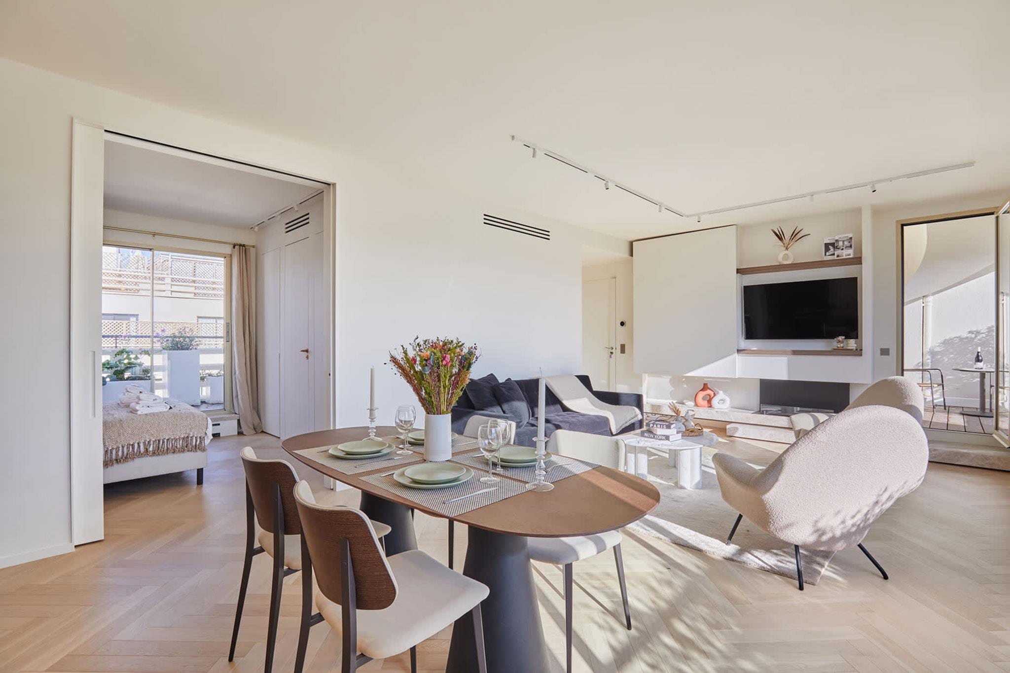 Velkommen til vores sublime, totalrenoverede lejlighed med aircondition og panoramaterrasse med udsigt over Eiffeltårnet. Vi er glade for at kunne præsentere denne perle beliggende på den luksuriøse Rue du Faubourg Saint-Honoré. Halvvejs mellem Place de la Madeleine og Place de la Concorde, overfor Élysée-paladset, vil denne lejlighed, designet af en berømt arkitekt, give dig en fortryllende ferie i hjertet af Paris. Ideel til en bryllupsrejse...