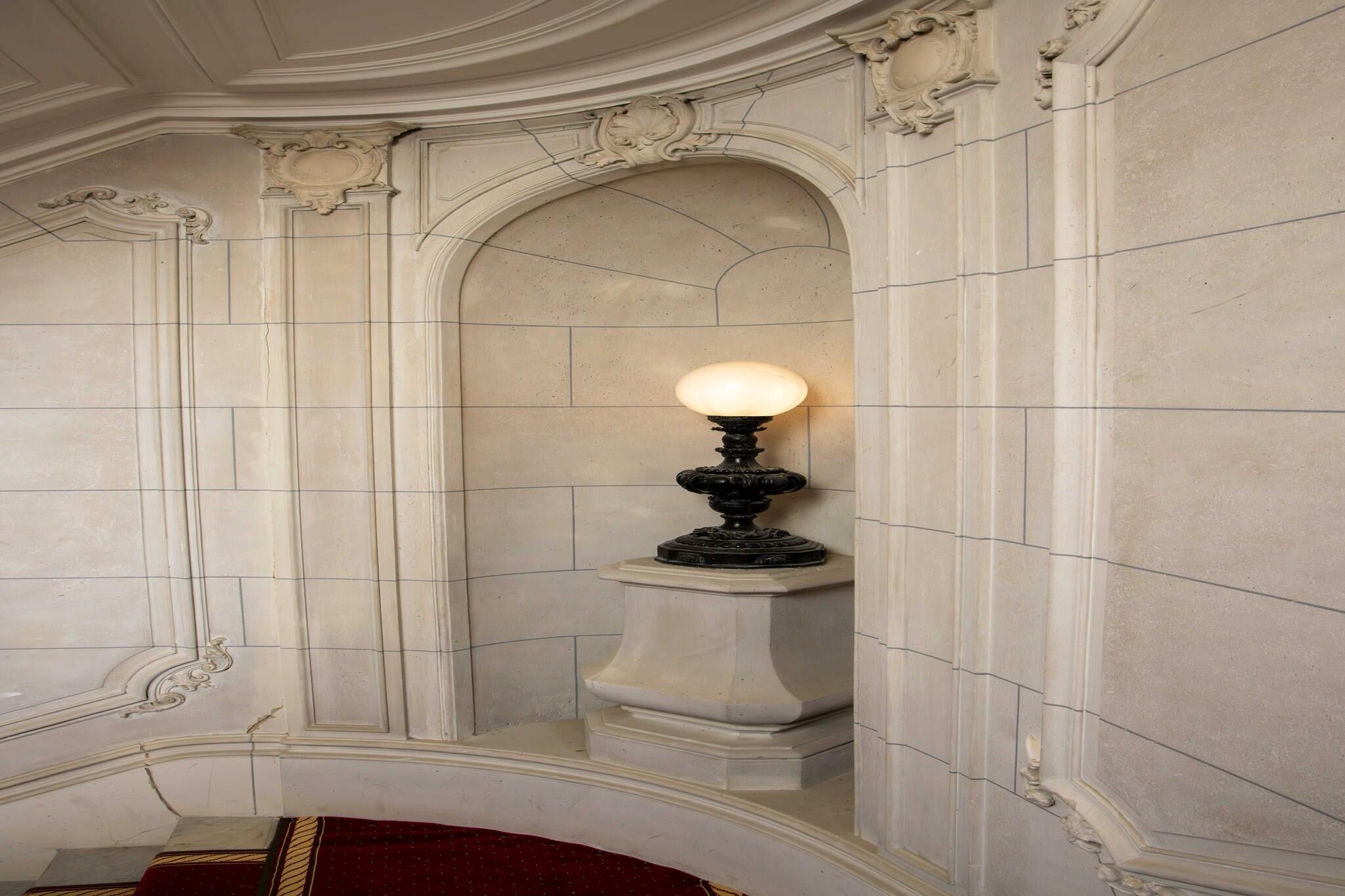 Sti til indgang oplyst om natten