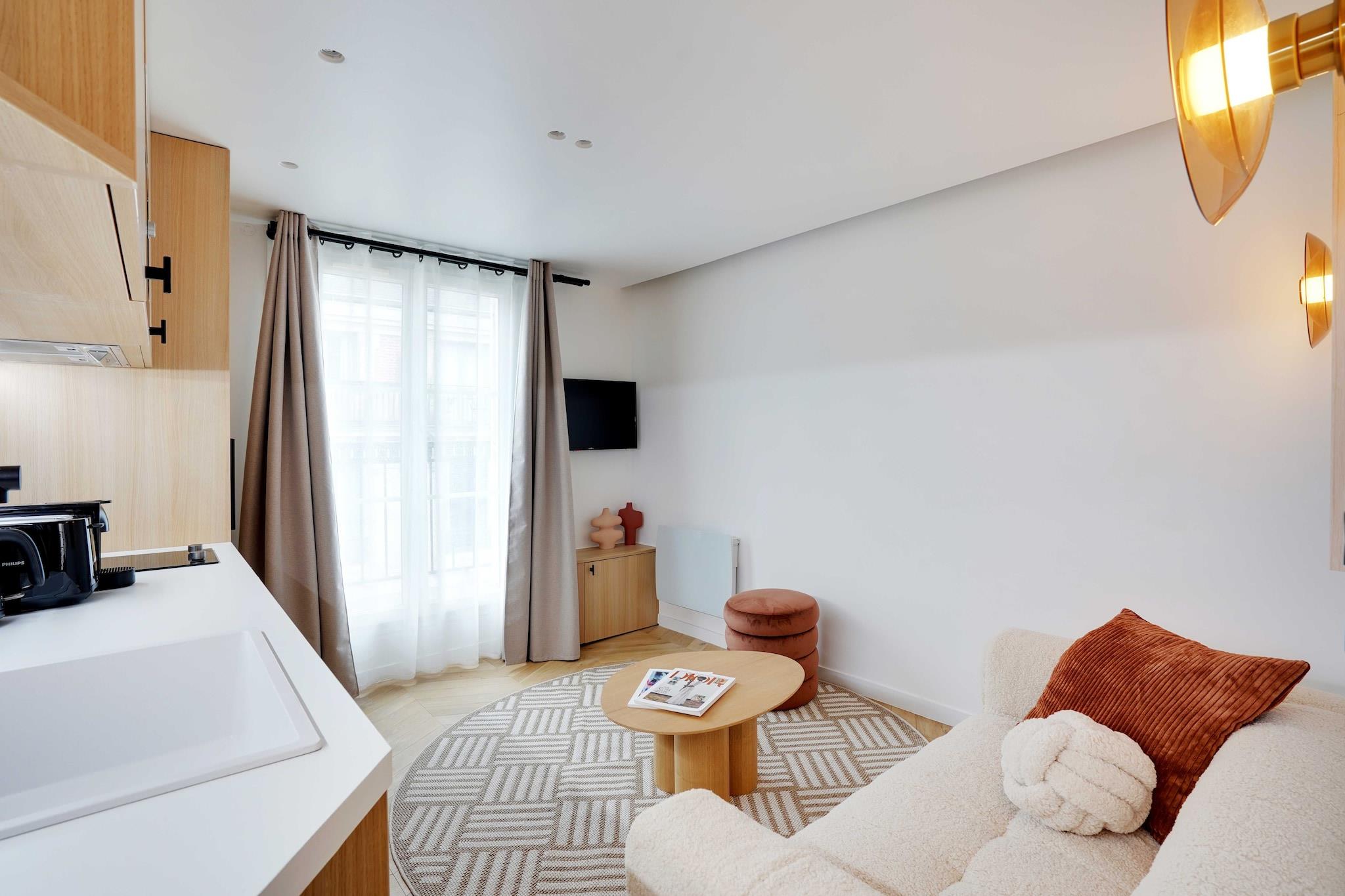 Checkmyguest offers this bright 20 m² apartment for two people. Ideally located in the 8th district at the foot of Gare St Lazare, 5 minutes' walk from the Grands Magasins, South Pigalle and close to Montmartre. Featuring a cozy sleeping area and all modern amenities, it's ideal for a business traveler, couple or student !