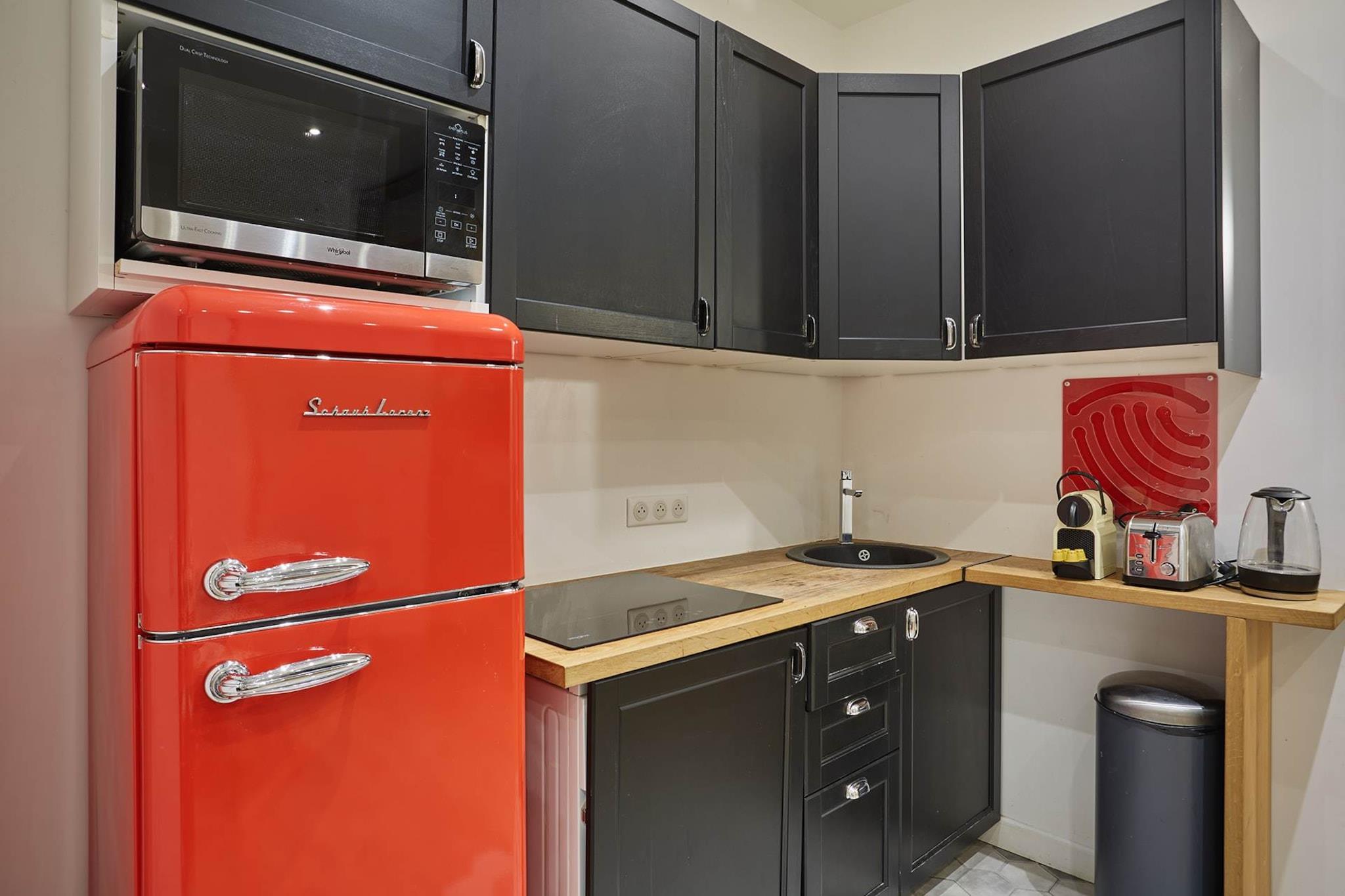 Stueetage: (Stue(dobbeltsovesofa, dobbeltsovesofa, Fjernsyn), Køkken(spisebord, elkedel, brødrister, kaffemaskine, mikrobølgeovn, køleskab, fryser, varme, , , Baking sheet, Wine glasses), soveværelse(Queen Bed), soveværelse(Queen Bed), badeværelse(bruser, toilet, , Shower gel)) , , , Førstehjælp, vaskemaskine, strygejern, føntørrer, , , Cleaning products, Coffee, Downtown, Extra pillows and blankets, Room-darkening shades