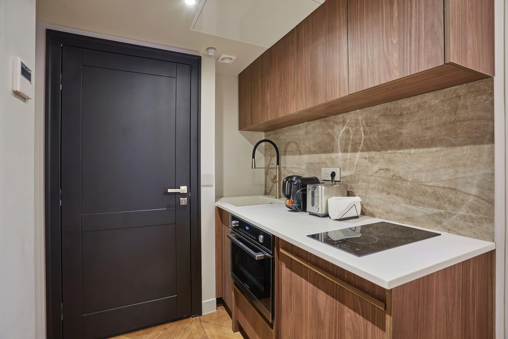 På 3. etage: (Stue(Internetadgang, dobbeltsovesofa, Fjernsyn), Køkken(spisebord, kakkelovn, elkedel, brødrister, kaffemaskine, ovn, mikrobølgeovn, køleskab, fryser, , , Baking sheet, Coffee, Wine glasses), soveværelse(Queen Bed), badeværelse(, bruser, håndvask, føntørrer, , Shower gel)) , , , Førstehjælp, tørretumbler, vaskemaskine, varme, klimaanlæg, strygejern, , , Carbon monoxide detector, Downtown