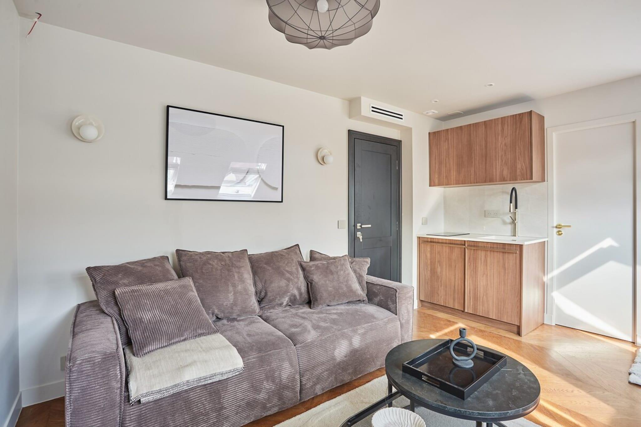 Lejligheden ligger på 6. sal med elevator og er ideelt placeret i hjertet af Paris, 9 minutter fra L'HOTEL DE VILLE. Du befinder dig i en fuldstændig sikker bygning. Der er et vaskerum til din rådighed i bygningen. Lejligheden har aircondition. Du er 15 minutter fra Rue de Turenne og den berømte Place des Vosges med dens mange butikker og caféer. 15 minutter fra Grévin Museum og Grands Boulevards.