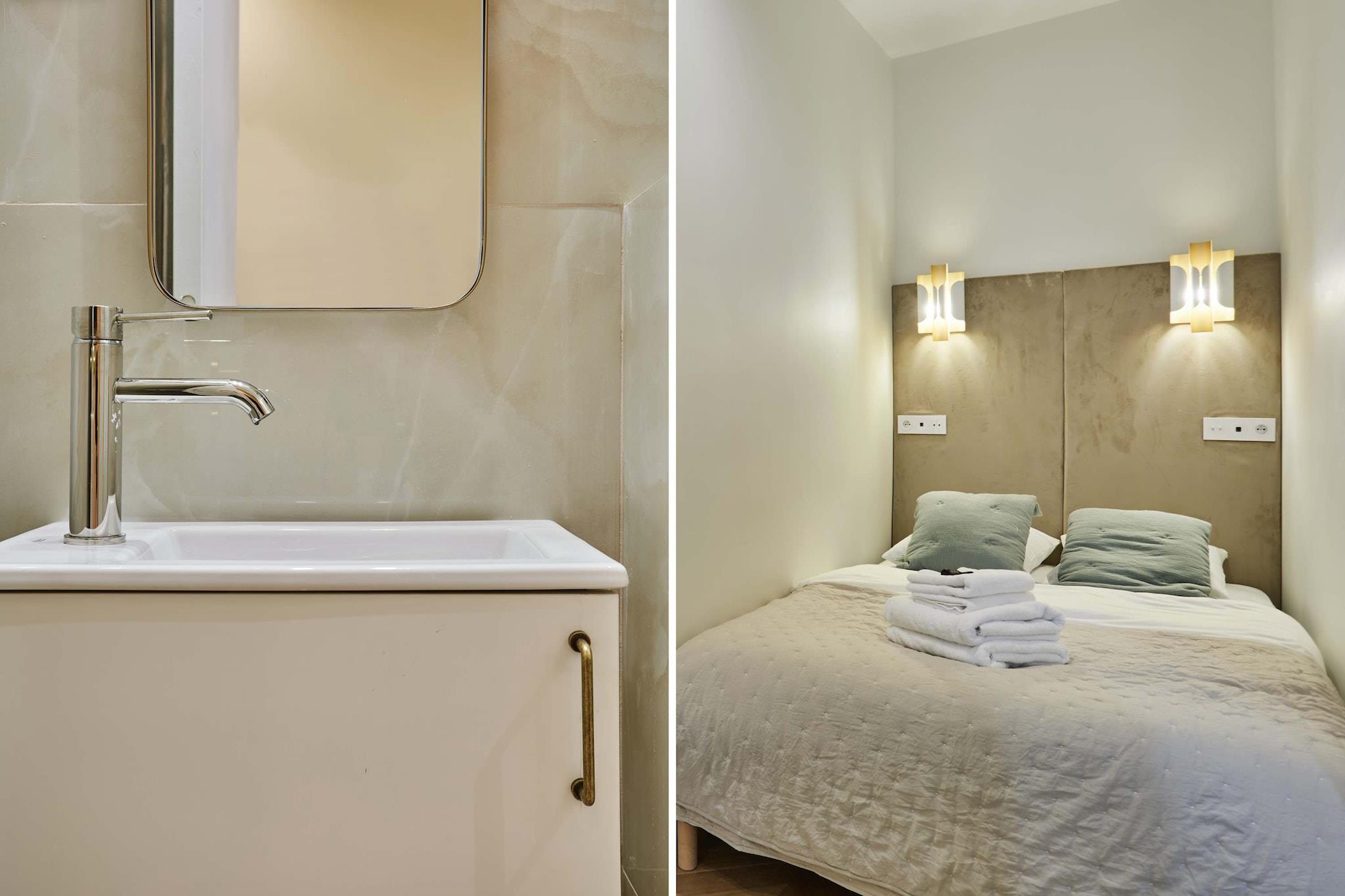 Denne sublime lejlighed med aircondition ligger i stueetagen i en Haussman-bygning, ideelt placeret mellem Sacré-Cœur og Grévin-museet. Tæt på Galeries Lafayette befinder du dig i hjertet af Paris. Beliggenheden er ideel for dem, der tager Eurostar eller Thalys. Denne lejlighed vil få dig til at drømme om en raffineret og elegant atmosfære med familie eller venner. Du vil være i nærheden af mange butikker, caféer og restauranter.
