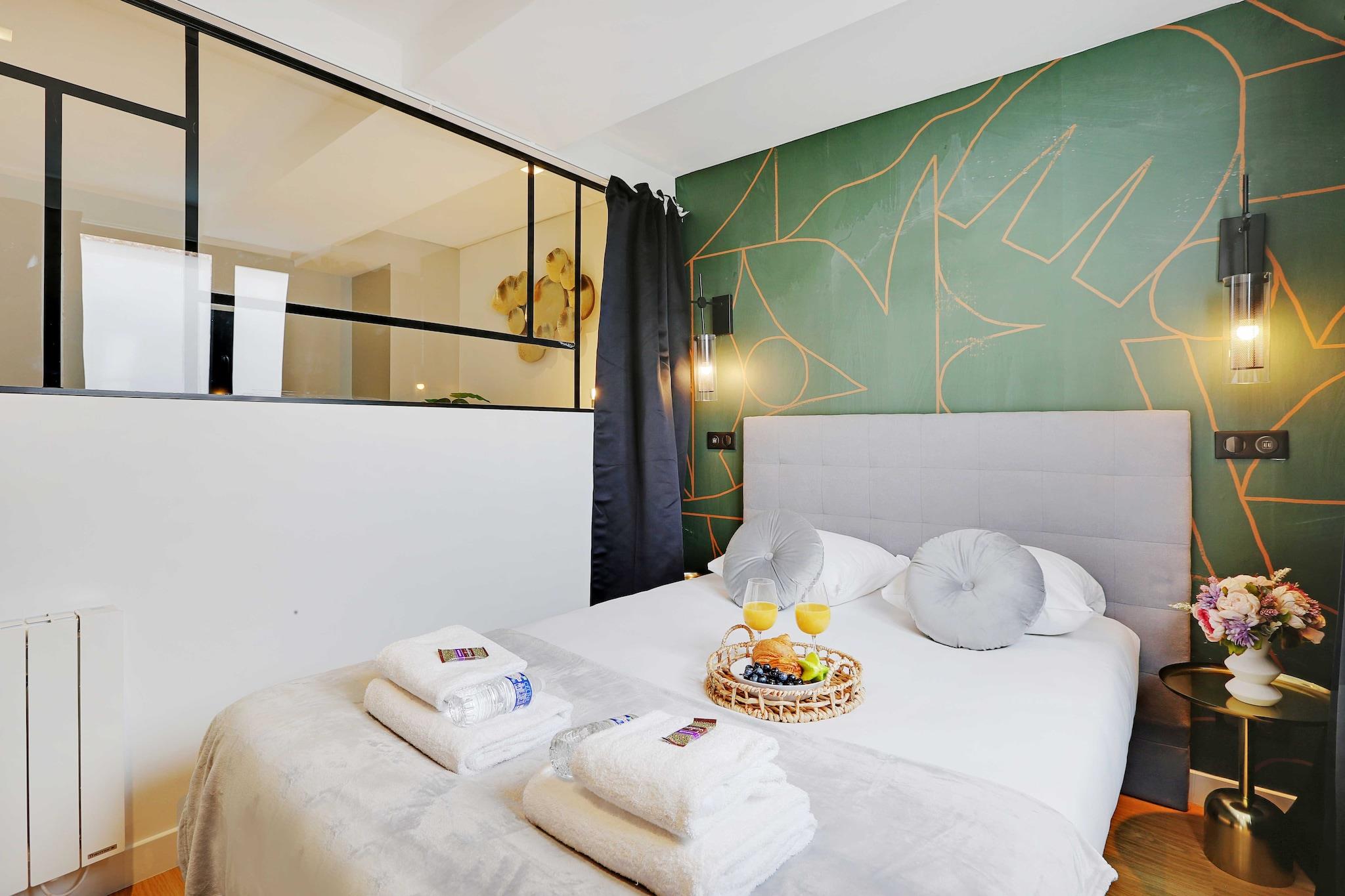 Velkommen til vores tidløst charmerende 50 m² store oase, perfekt for op til 6 gæster og ideelt beliggende ved siden af det pulserende Marais-distrikt, kun et stenkast fra Place des Vosges. For nylig renoveret og udstyret med alle moderne bekvemmeligheder garanterer denne lejlighed et problemfrit ophold og en enestående rejseoplevelse i hjertet af Paris. Beliggende inden for 10 minutters gang fra ikoniske steder som Place de la République og Place de la Bastille, placerer vores ejendom dig i et kulturelt hotspot. Marais er berømt for sin dynamiske atmosfære, der byder på et væld af museer, kunstgallerier, designerbutikker, caféer, restauranter og trendy barer - en dejlig blanding af tradition og modernitet. Du finder flere metrostationer inden for 5 minutters gang, herunder Richard Lenoir (linje 5) og Bastille (linje 1, 5 og 8), som giver nem adgang til byens berømte vartegn, såsom Eiffeltårnet, Louvre-museet , Montmartre og Latinerkvarteret. Gæster har fuld adgang til hele lejligheden, hvilket sikrer, at du føler dig hjemme. Den førsteklasses beliggenhed giver mulighed for problemfri navigation i hele byen, med adskillige offentlige transportmuligheder, herunder dag- og natbuslinjer, en nærliggende Vélib cykeludlejningsstation og pålidelige taxatjenester til rådighed. Oplev det bedste fra Paris fra dette dejlige tilflugtssted!