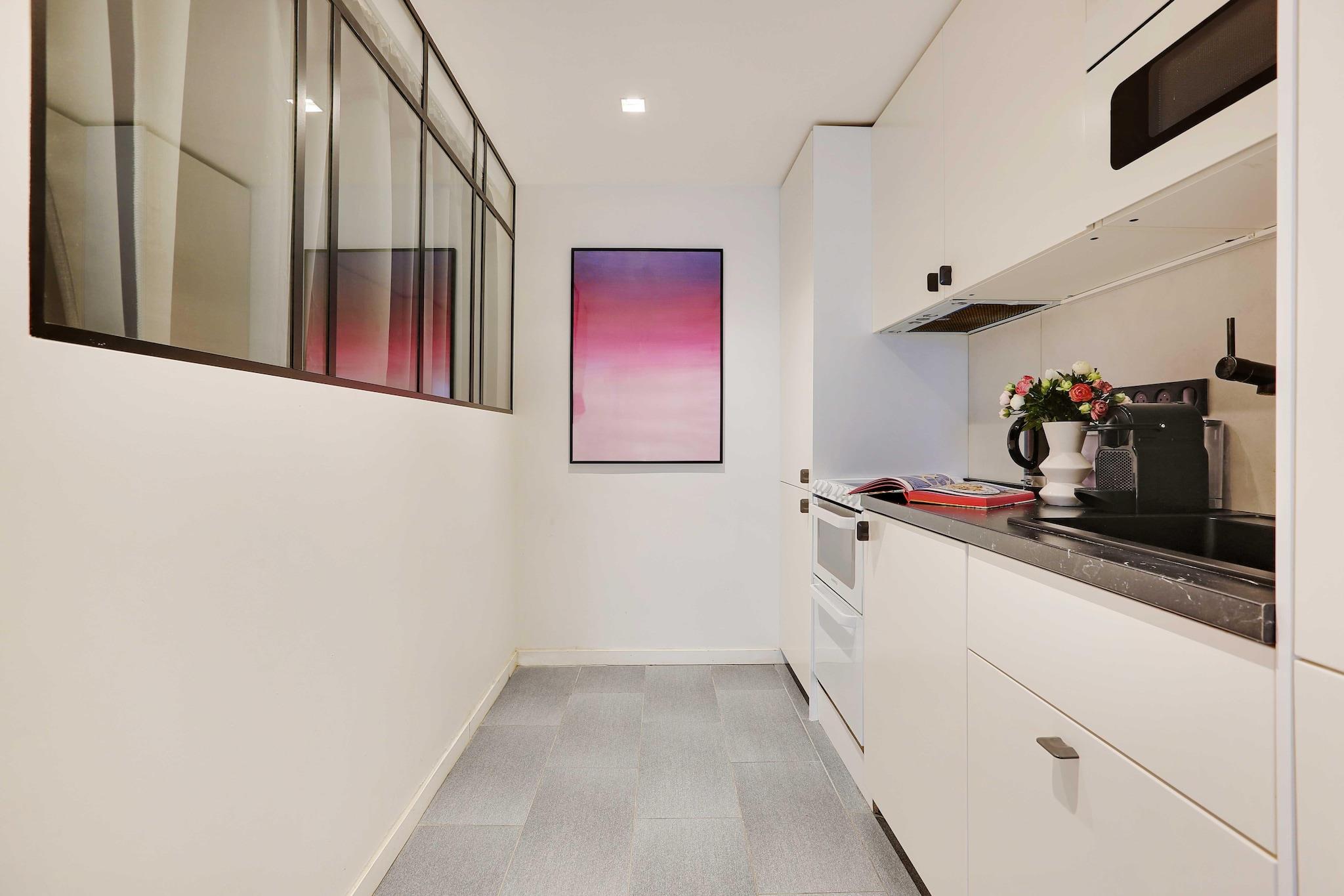 Velkommen til vores charmerende 32 m² store lejlighed, der kan rumme op til 6 gæster, ideelt beliggende ved siden af det pulserende Marais-distrikt og kun en kort gåtur fra Place des Vosges. For nylig renoveret og udstyret med moderne bekvemmeligheder sikrer denne lejlighed et problemfrit ophold og en enestående rejseoplevelse lige i hjertet af Paris. Pladsen: Beliggende inden for en 10-minutters gåtur fra ikoniske vartegn såsom Place de la République og Place de la Bastille, vores ejendom tilbyder nem adgang til det kulturelt rige Marais. Området, der er kendt for sin dynamiske atmosfære, byder på et væld af museer, kunstgallerier, designerbutikker, caféer og trendy barer, der problemfrit blander tradition og modernitet. Adskillige metrostationer ligger inden for 5 minutters gang fra lejligheden, så du kan nå hvert hjørne af hovedstaden og udforske de forskellige ikoniske steder i byen: Eiffeltårnet, Louvre-museet, Montmartre og Sacré-Cœur, venstrefløjen Bank og Latinerkvarteret. Gæsteadgang: Du vil have fuld adgang til lejligheden, så du kan føle dig hjemme. At komme rundt: Lejlighedens geografiske placering vil give dig mulighed for at bevæge dig meget nemt og hurtigt gennem hovedstaden i Frankrig via dens mange offentlige transportmuligheder: - Metro: Richard Lenoir (linje 5), som ligger 1 minuts gang væk - Metro: Bastille (linje 1/5/8), som ligger 6 minutters gang væk - Talrige dag- og natbuslinjer - Vélib station - Flere taxiselskaber til rådighed