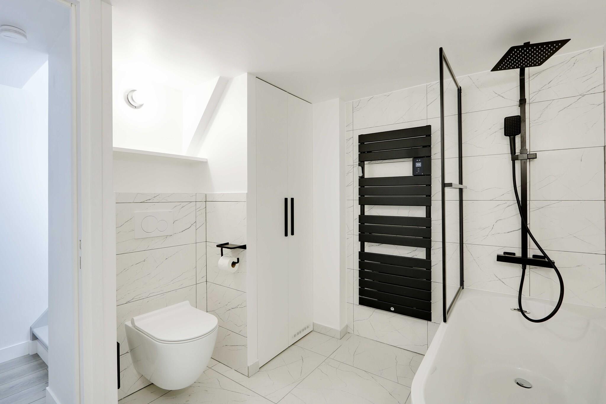 Stueetage: (Stue(dobbeltsovesofa, Fjernsyn), Køkken(kakkelovn, kogeplade, elkedel, brødrister, kaffemaskine, ovn, combi-mikroovn, opvaskemaskine , køleskab, fryser, elektriske kogeplader, , , Wine glasses), soveværelse(dobbeltseng, Fjernsyn, varme), soveværelse(køjeseng, varme), badeværelse(badekar, håndvask, toilet, føntørrer), badeværelse(bruser, håndvask, toilet, føntørrer)) Mellemetage: (dobbeltseng) , , , , , Førstehjælp, Legeområde, vaskemaskine, varme, strygejern, Håndklæder/sengelinned (inkl.), , , , Carbon monoxide detector, Cleaning Disinfection, Downtown, Enhanced cleaning practices, Extra pillows and blankets, High touch surfaces disinfected, Long term stays allowed, Room-darkening shades, Town