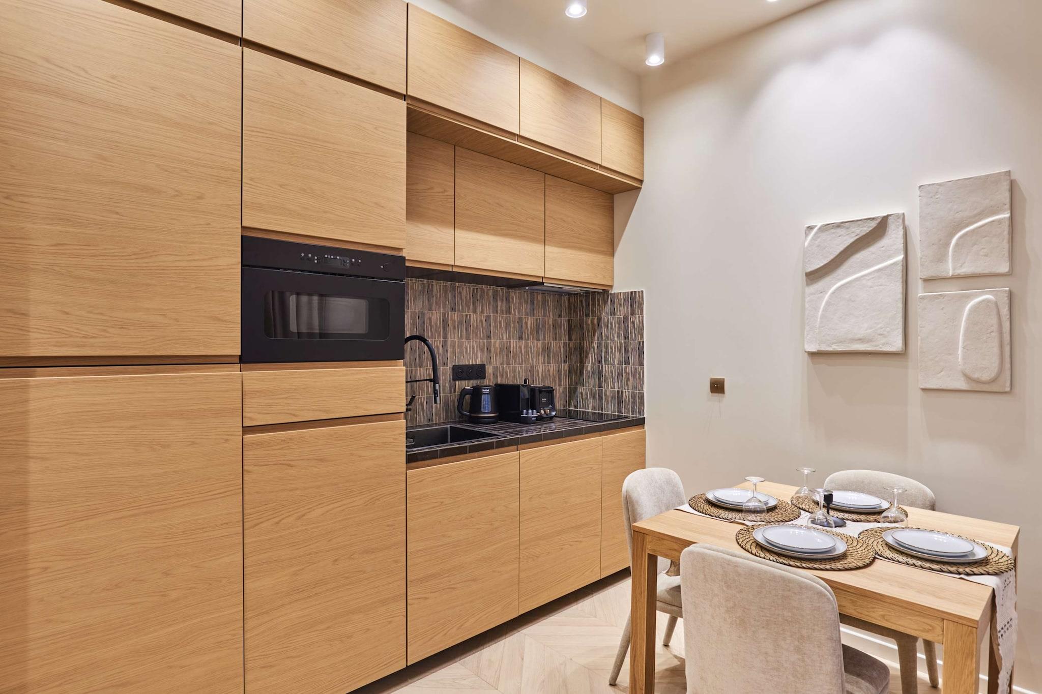 Oplev vores renoverede og airconditionerede lejlighed, designet som et studie med soveværelse og stue. Denne raffinerede pied-à-terre-lejlighed, der vender ud mod det majestætiske Montparnasse-tårn, har en førsteklasses beliggenhed i hjertet af et elegant og livligt boligkvarter, kun få minutter fra Saint-Germain-des-Prés. Lejligheden er indrettet af professionelle designere og tilbyder en elegant og moderne atmosfære. Fuldt udstyret garanterer den absolut komfort for et uforglemmeligt parisisk ophold med familie eller venner.