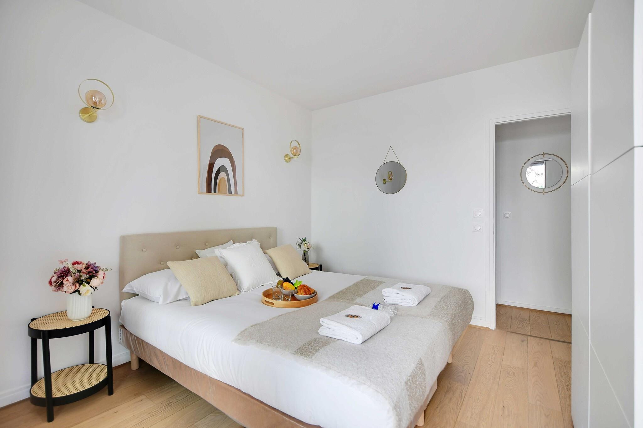 Checkmyguest offers you an elegant 90 m² 2-bedroom apartment in the Grenelle district of Paris' 15th arrondissement. Well-equipped for unforgettable stays, this apartment is close to the majestic Eiffel Tower and the historic Hôtel des Invalides, for an exceptional Parisian experience. The geographical location of the apartment will allow you to move around the capital very easily via these many public transport options : Metro: The nearest metro station to Avenue Paul Déroulède is La Motte-Picquet - Grenelle, served by lines 6, 8 and 10. This station offers easy access to various parts of Paris. Bus: Several bus lines serve stops close to the avenue, offering convenient connections to other parts of the city. Vélib': The City of Paris' self-service bicycle service, Vélib', offers nearby bicycle stations, providing an environmentally-friendly travel option. Autolib': For those who prefer to drive, the Autolib' service offers self-service electric cars in the region. Cab: Parisian cabs are readily available and can be hailed on the street or booked by phone. Walking: Avenue Paul Déroulède is also great for walking, allowing residents and visitors to explore the surrounding area on foot. The 15th arrondissement's central location facilitates access to a network of public transport, offering great flexibility for getting around the city.