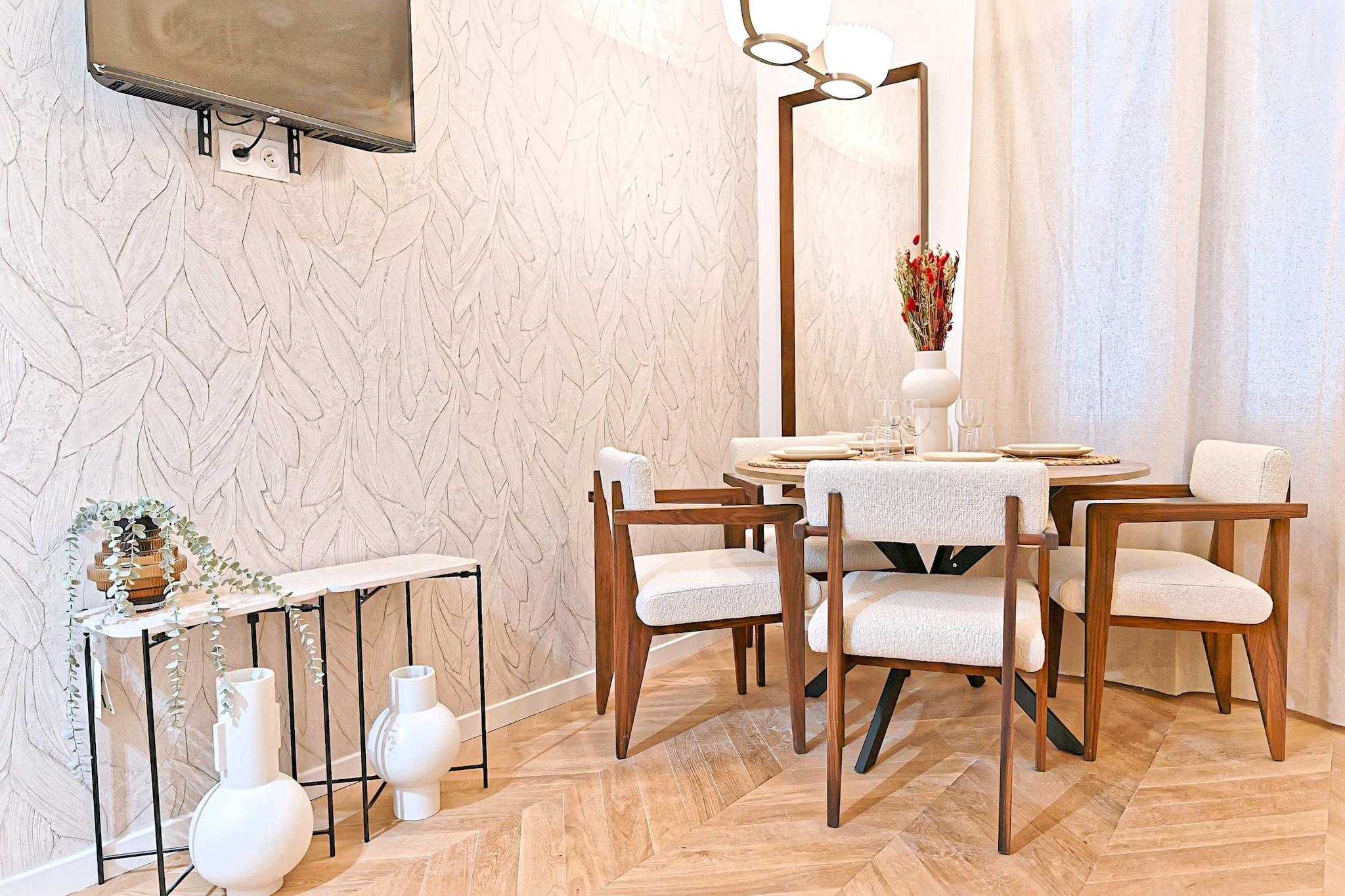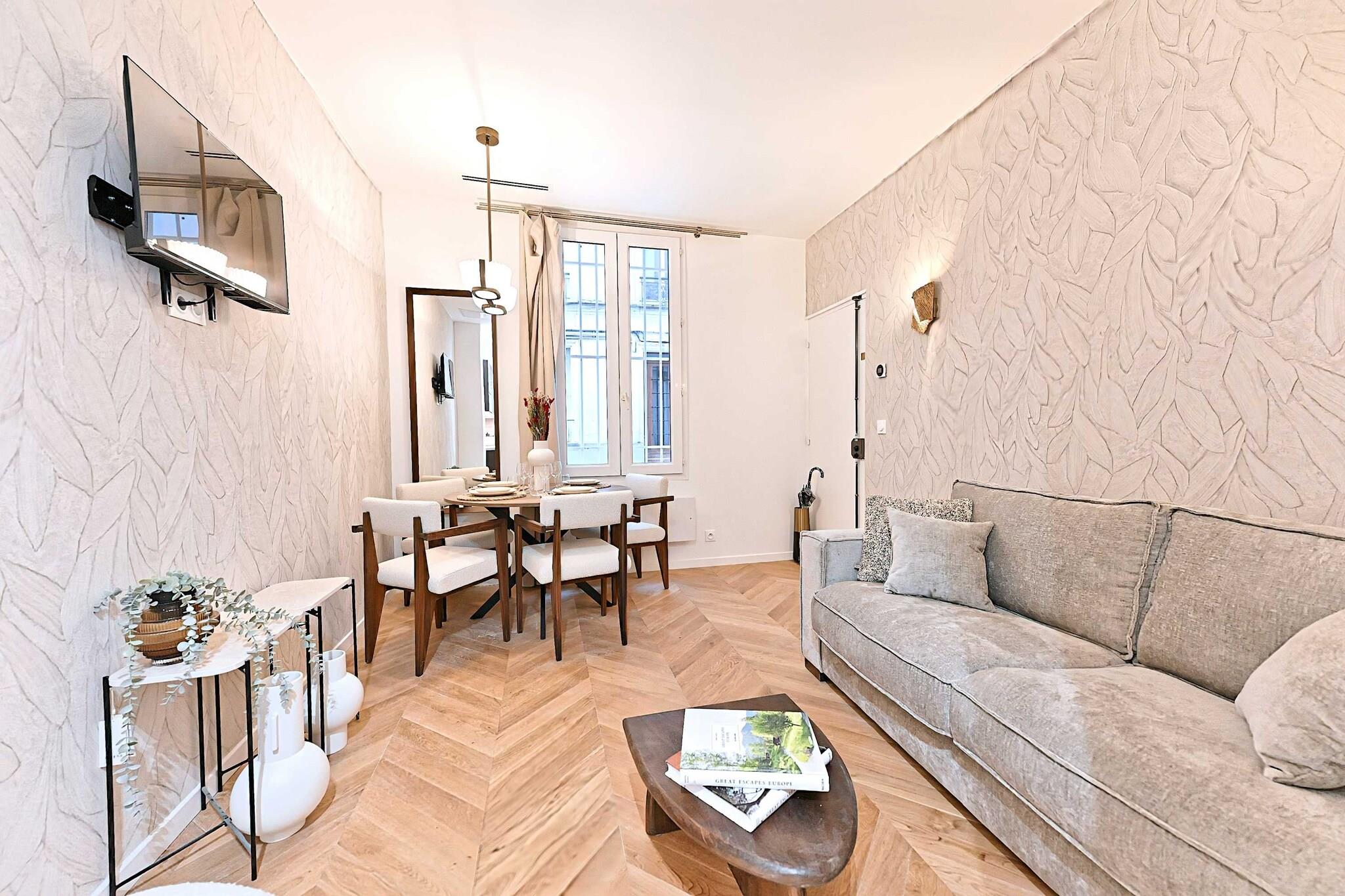 ? Elegant 2-værelses lejlighed med aircondition i ét plan - komfort og modernitet i Paris ? ?? En førsteklasses beliggenhed i hjertet af Paris Forkæl dig selv med en fredfyldt flugt i et centralt parisisk kvarter. Beliggende på en stille gade, kombinerer denne lejlighed perfekt parisisk charme med moderne komfort. Beliggende i nærheden af butikker, restauranter og store turistattraktioner tilbyder det den ideelle balance mellem fredelige omgivelser og tilgængelighed til byens bedste højdepunkter.