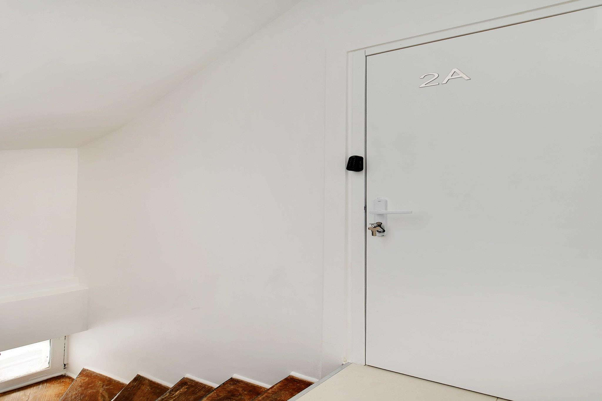 På 2. etage: (Køkken(kakkelovn, elkedel, brødrister, kaffemaskine, mikrobølgeovn, køleskab, , ), Stue/soveværelse(, , dobbeltseng, Fjernsyn, klimaanlæg), badeværelse(, føntørrer, Håndklæder/sengelinned (inkl.), , )) , Førstehjælp, Legeområde, varme, strygejern, , Carbon monoxide detector, Cleaning Disinfection, Downtown, Enhanced cleaning practices, High touch surfaces disinfected, Long term stays allowed, Room-darkening shades, Town