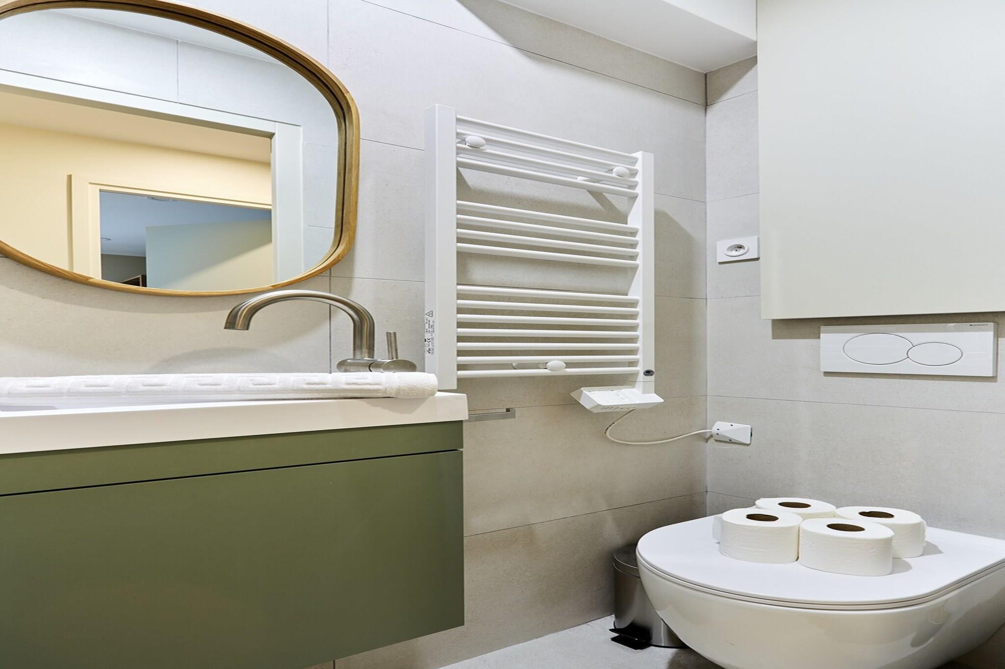 På 1. etage: (Stue(dobbeltsovesofa, Fjernsyn, spisebord), Køkken(elkedel, brødrister, kaffemaskine, mikrobølgeovn, køleskab, fryser, varme, , , Baking sheet, Wine glasses), soveværelse(, , Queen Bed), badeværelse(bruser, toilet, , Shower gel)) , Førstehjælp, tørretumbler, vaskemaskine, strygejern, føntørrer, crib(paid), , Carbon monoxide detector, Cleaning products, Coffee, Downtown, Extra pillows and blankets, Room-darkening shades