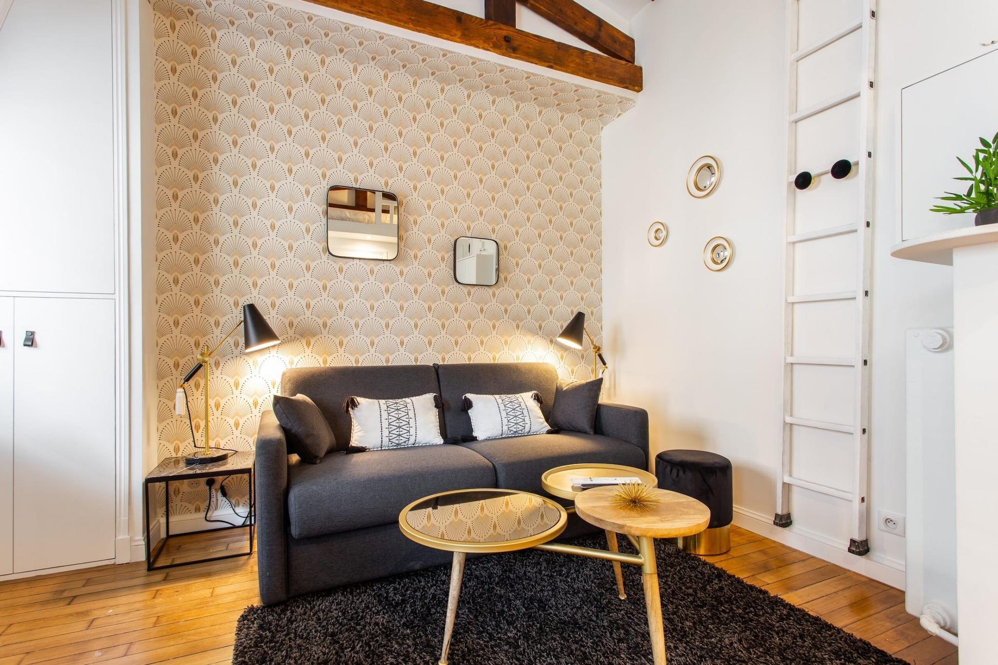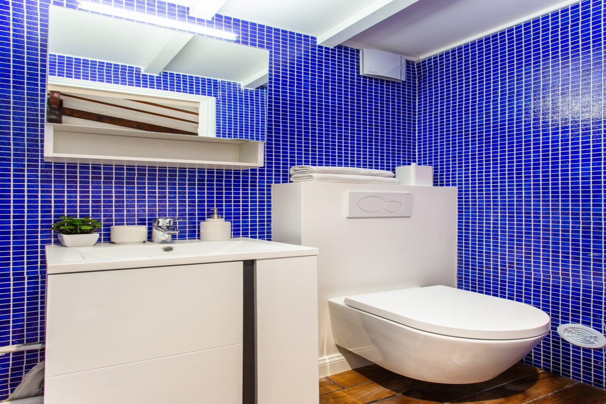 På 5. etage: (Køkken(spisebord, kakkelovn, elkedel, brødrister, kaffemaskine, mikrobølgeovn, køleskab, elektriske kogeplader, , , Wine glasses), Stue/soveværelse(, , enkeltsovesofa, køjeseng, Fjernsyn), badeværelse(bruser, toilet, føntørrer, , )) , , , Førstehjælp, Legeområde, vaskemaskine, varme, strygejern, Håndklæder/sengelinned (inkl.), , , Carbon monoxide detector, Cleaning Disinfection, Downtown, Enhanced cleaning practices, High touch surfaces disinfected, Long term stays allowed, Room-darkening shades, Town