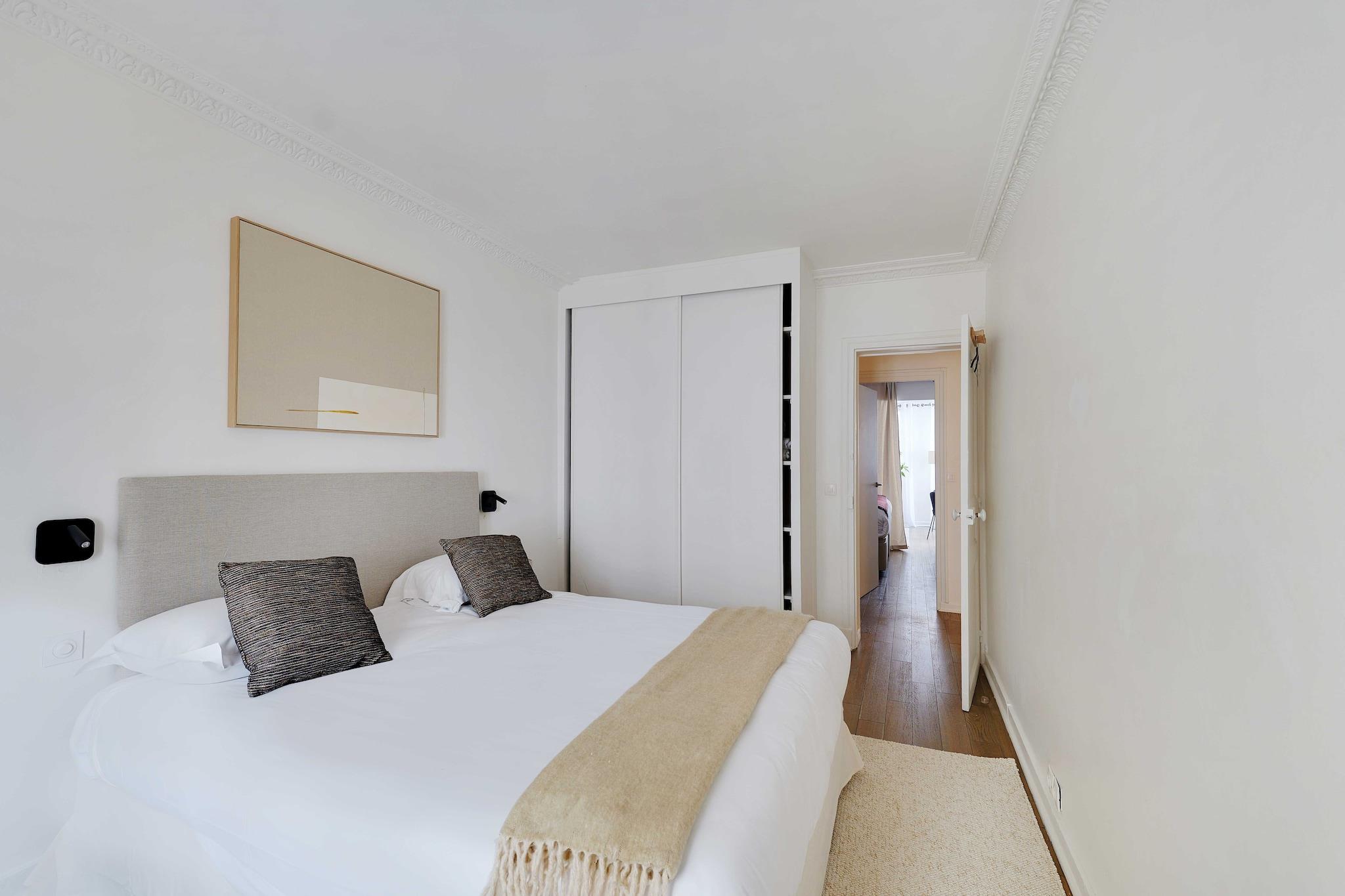 ?? Checkmyguest tilbyder en smuk lejlighed på 54 m² i Paris' 16. arrondissement, kun få skridt fra Eiffeltårnet. Den er elegant og rummelig og har plads til op til 6 gæster. Med nærliggende transportmuligheder kan du nemt udforske ikoniske monumenter, butikker og den parisiske atmosfære med familie eller venner.