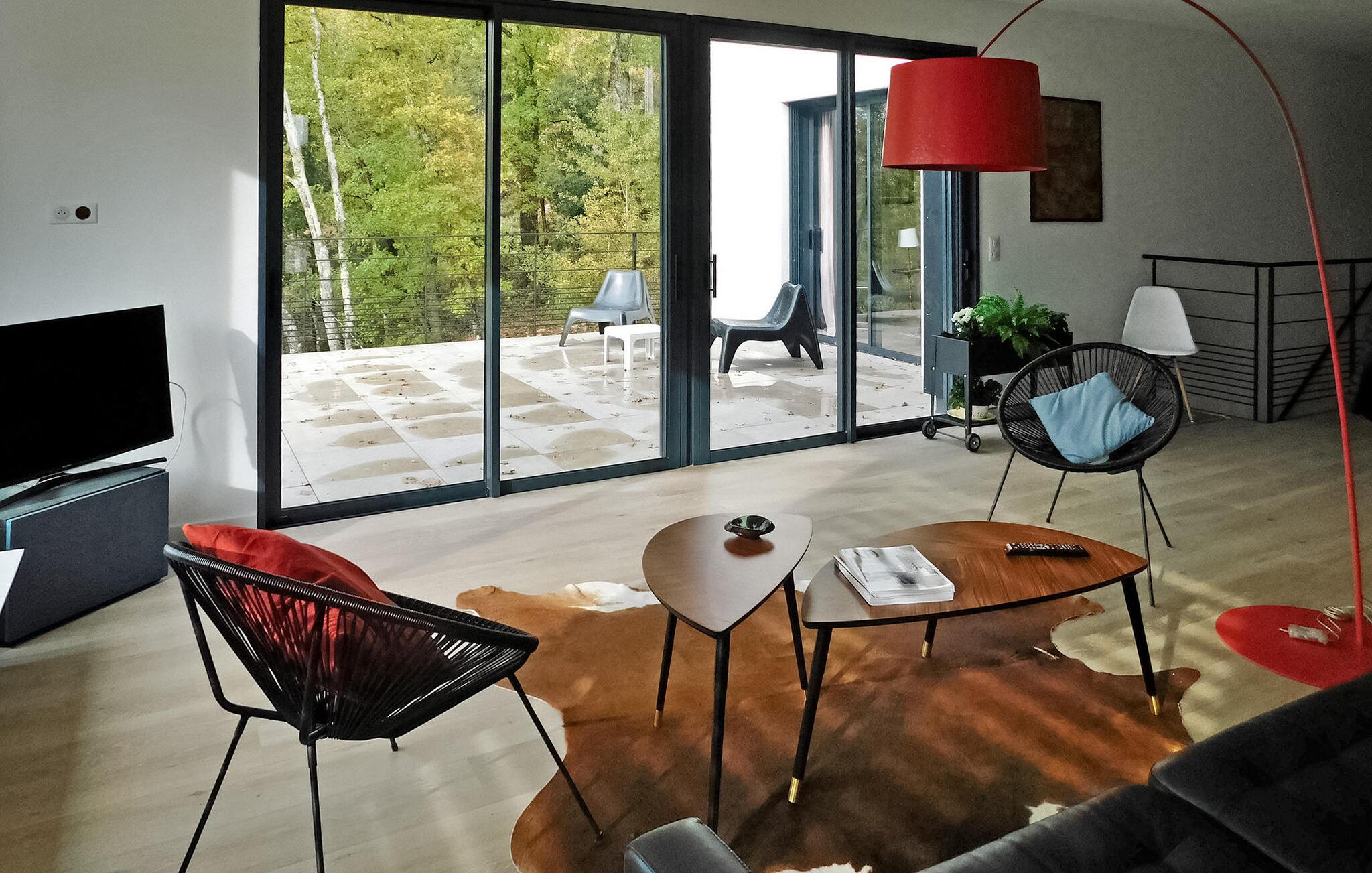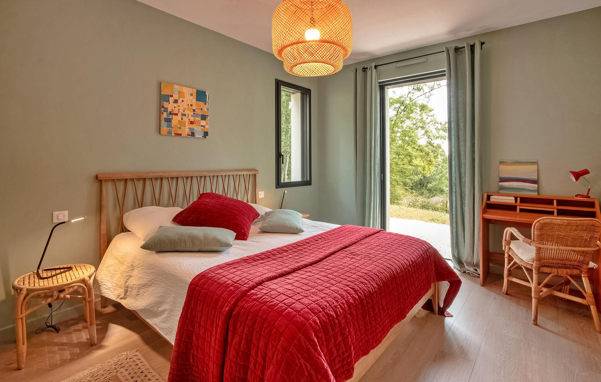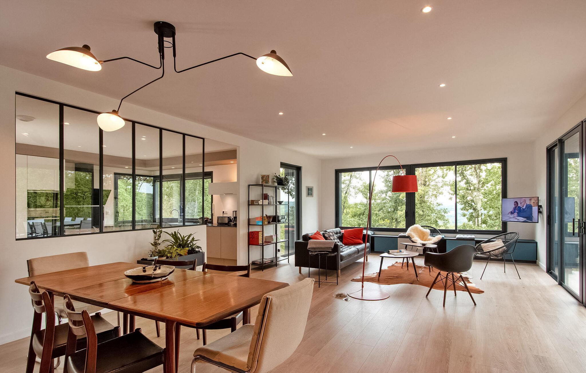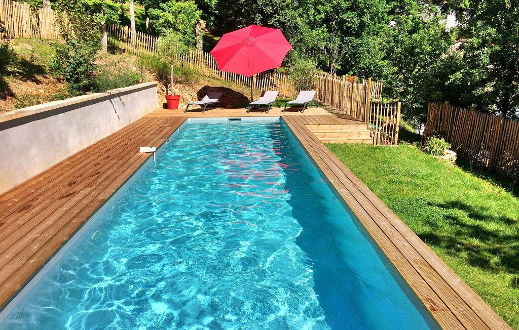 Nyd en pragtfuld ferie i denne rummelige villa i Dordogne, perfekt til en gruppe, der søger afslapning og komfort. Denne moderne villa har en privat opvarmet og lukket pool, der tilbyder en dejlig udsigt over dalen. Villaen byder på en række faciliteter. Stueetagen består af et rummeligt opholdsrum med spiseplads samt et komfortabelt opholdsområde. Dobbelt karnapper åbner ud til terrassen, udstyret med solgardiner, mens det halvåbne køkken giver adgang til det fri gennem en glasdør. Villaen indeholder også et ensuite soveværelse i stueetagen med udgang til terrassen. På haveniveau omfatter villaen yderligere soveområder, herunder et soveværelse perfekt til at rumme 4 børn. Udendørs byder på rigelig plads til afslapning og nydelse. Du vil finde en opvarmet swimmingpool sikret med en dykkeralarm og et hegn. Bemærk venligst, at ejerne bor på en nabogrund med egen indgang. På grund af de stejlt skrånende grunde kræves der særlig opmærksomhed for små børn. Huset er beliggende på landet, den nærmeste landsby er Cazoulès (ingen butikker), nærmeste butikker (supermarked og marked) i Souillac (5 km)
