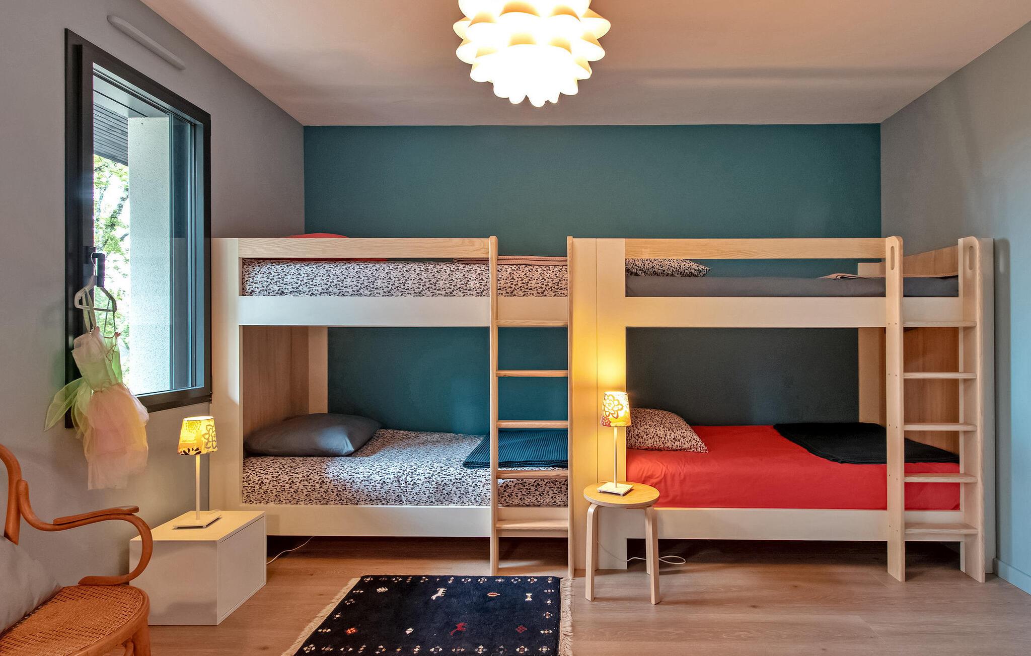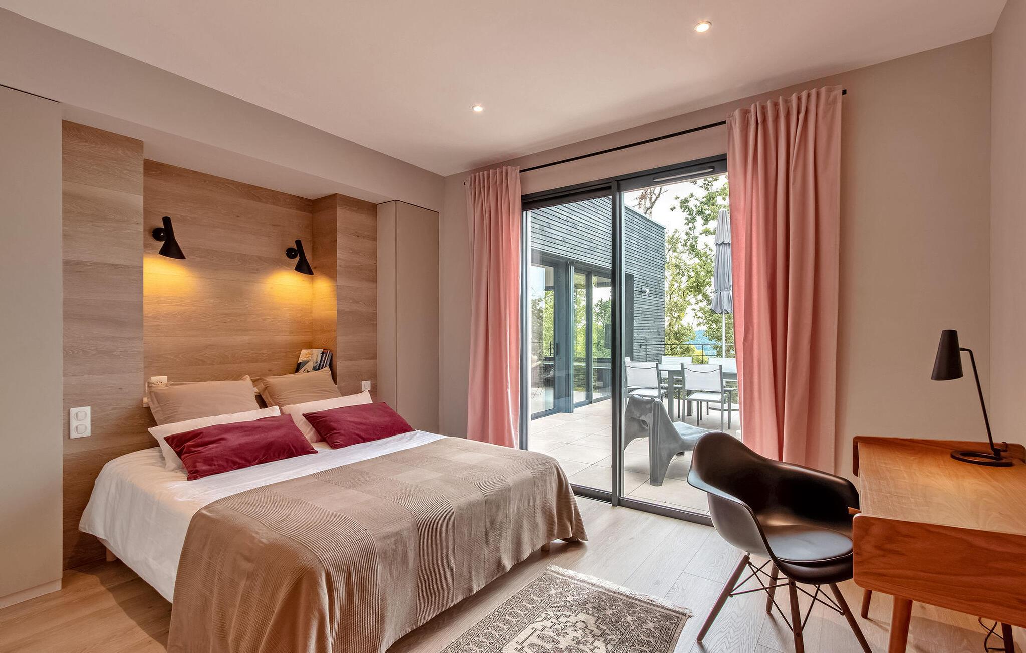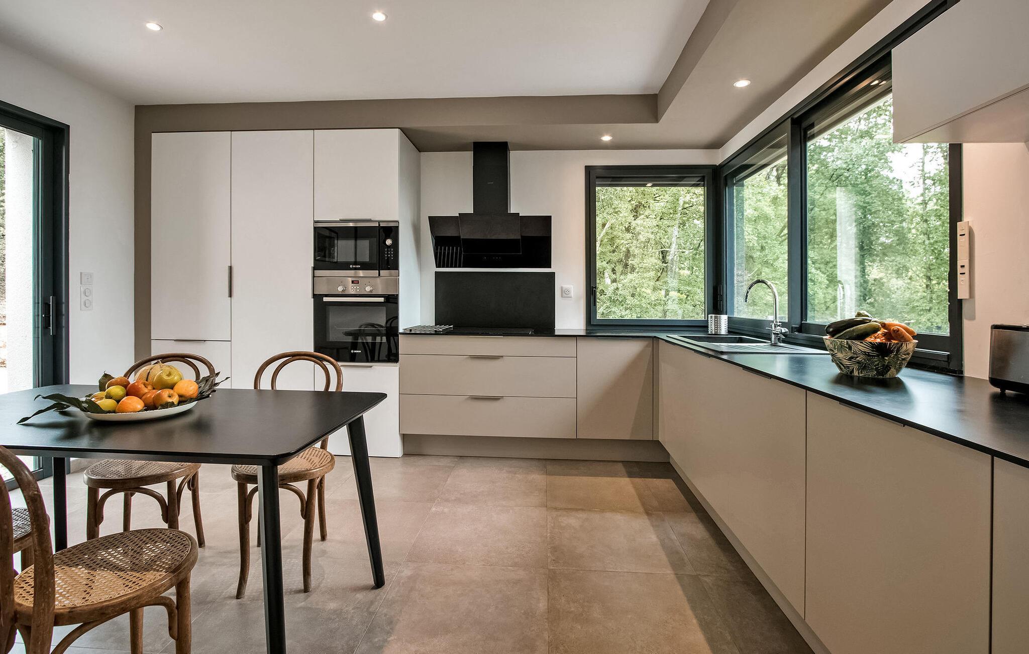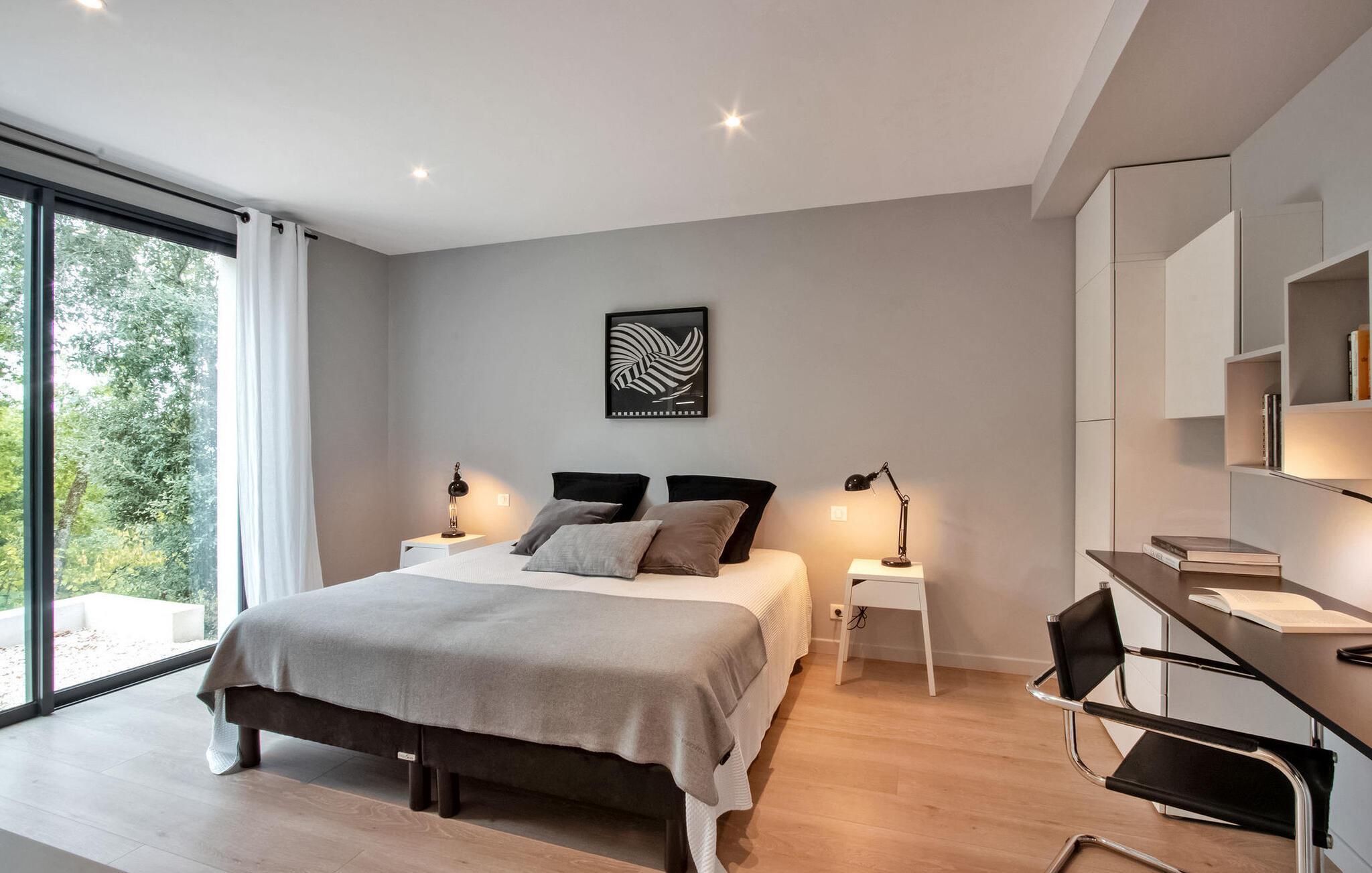Nyd en pragtfuld ferie i denne rummelige villa i Dordogne, perfekt til en gruppe, der søger afslapning og komfort. Denne moderne villa har en privat opvarmet og lukket pool, der tilbyder en dejlig udsigt over dalen. Villaen byder på en række faciliteter. Stueetagen består af et rummeligt opholdsrum med spiseplads samt et komfortabelt opholdsområde. Dobbelt karnapper åbner ud til terrassen, udstyret med solgardiner, mens det halvåbne køkken giver adgang til det fri gennem en glasdør. Villaen indeholder også et ensuite soveværelse i stueetagen med udgang til terrassen. På haveniveau omfatter villaen yderligere soveområder, herunder et soveværelse perfekt til at rumme 4 børn. Udendørs byder på rigelig plads til afslapning og nydelse. Du vil finde en opvarmet swimmingpool sikret med en dykkeralarm og et hegn. Bemærk venligst, at ejerne bor på en nabogrund med egen indgang. På grund af de stejlt skrånende grunde kræves der særlig opmærksomhed for små børn. Huset er beliggende på landet, den nærmeste landsby er Cazoulès (ingen butikker), nærmeste butikker (supermarked og marked) i Souillac (5 km)