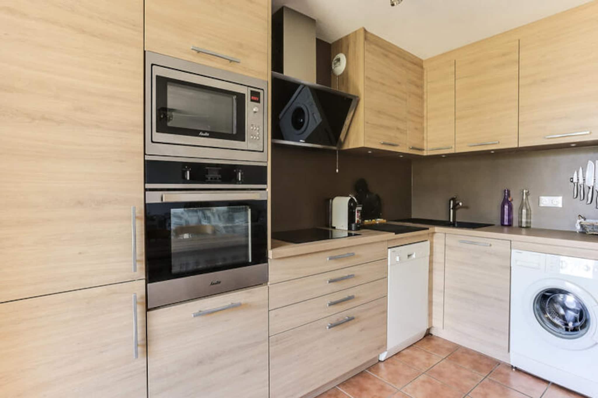Højt over Tarentaise-dalen, hvor den alpine luft er frisk og forfriskende, inviterer denne charmerende lejlighed i chaletstil dig til at opleve Vallandrys magi. Med sin sydvendte balkon, der tilbyder en fantastisk udsigt over pisterne, er denne bolig et paradis for både vintersportsentusiaster og sommereventyrere. Uanset om du er her for at grave dig gennem uberørt sne eller udforske frodige bjergstier, lover dette rolige tilflugtssted uforglemmelige øjeblikke i hjertet af de franske alper.\n\nIndenfor er den fuldstændig renoverede lejlighed på 50 m² omhyggeligt designet til at rumme op til otte gæster. Det åbne køkken, udstyret med moderne apparater, herunder induktionskogeplade, ovn, mikrobølgeovn og opvaskemaskine, er problemfrit forbundet med den hyggelige opholdsstue. Tre indbydende soveværelser tilbyder fleksible sovearrangementer, mens stuen giver ekstra plads til afslapning. Et badeværelse med badekar og separat toilet sikrer bekvemmelighed for alle. Med gratis Wi-Fi, et tv med flere kanaler og en vaskemaskine er hver eneste detalje tænkt over for din komfort.\n\nLejligheden ligger kun en kort gåtur fra pisterne, skiskolen og de lokale butikker og er ideel til at fordybe sig i den pulserende landsbyatmosfære. Om vinteren kan du nyde direkte adgang til det berømte Paradiski-område, mens sommeren byder på muligheder for vandreture, cykling og dyrelivsobservation i den nærliggende Vanoise Nationalpark. Overdækket parkering gør dit ophold nemmere og gør det nemt at udforske det omkringliggende område.\n\nUanset om du søger spændende alpine eventyr eller fredelige øjeblikke omgivet af natur, tilbyder denne bolig den perfekte blanding af komfort og beliggenhed. Lad Vallandrys skønhed inspirere din næste flugt til bjergene.