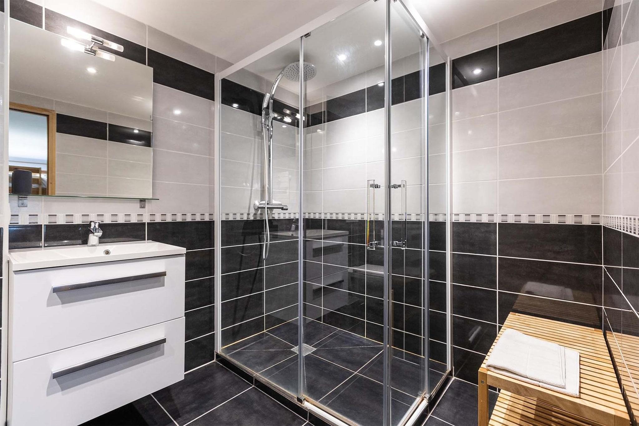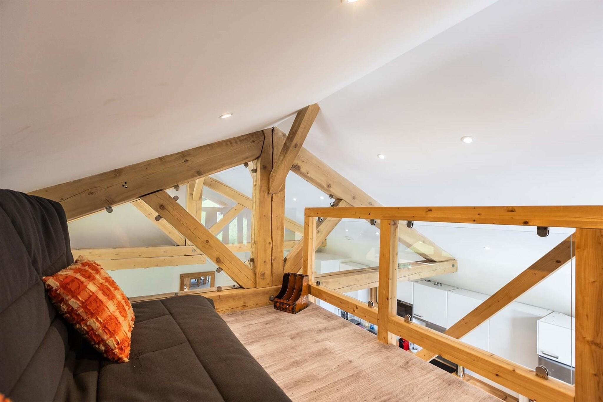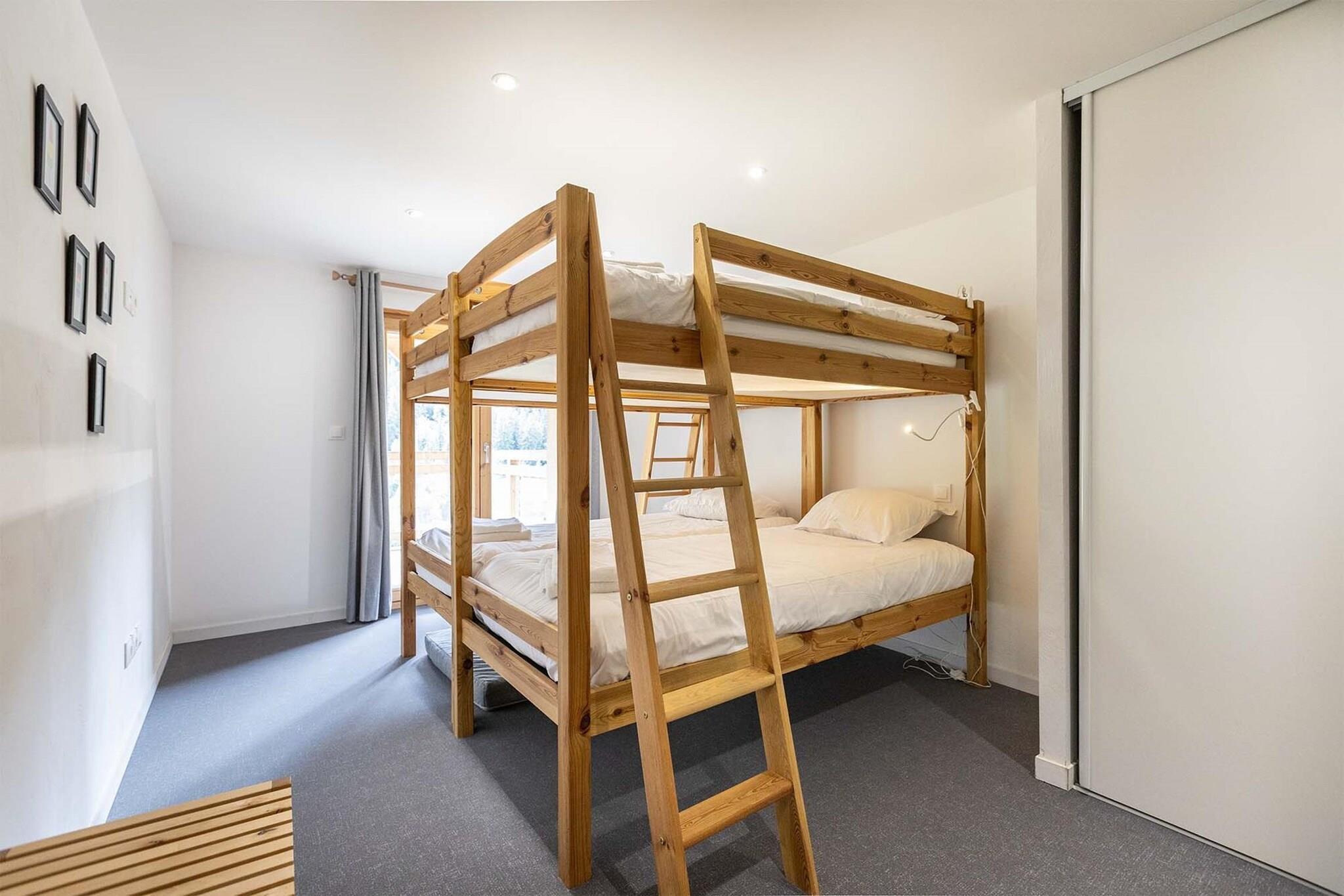 Chalet Les Amis-residensen har en privilegeret beliggenhed mellem Les Arcs og La Plagne, ved porten til den smukke Parc de la Vanoise, beliggende i hjertet af Paradiski-skiområdet. Det har 5 ferielejligheder til 8 til 14 personer og en separat hytte til højst 10 personer, som blev totalrenoveret i 2024. Et fælles spa-område med sauna og spabad tilbyder afslapning efter en lang dag i skiområdet. En gratis shuttlebus tager dig direkte til skiløjperne. Denne lejlighed er beliggende på 3. sal (elevator tilgængelig), selve lejligheden er fordelt på 2 etager og tilbyder enestående udsigt over Nancroix-dalen, bjergene, granskove og Massif de la Vanoise. Fra den store opholdsstue med åbent køkken fører en stejl trappe til sovende galleri med en sovesofa, et soveværelse med eget badeværelse er på stueplan, tre soveværelser, hver med eget badeværelse, er på øverste etage. lejligheden.