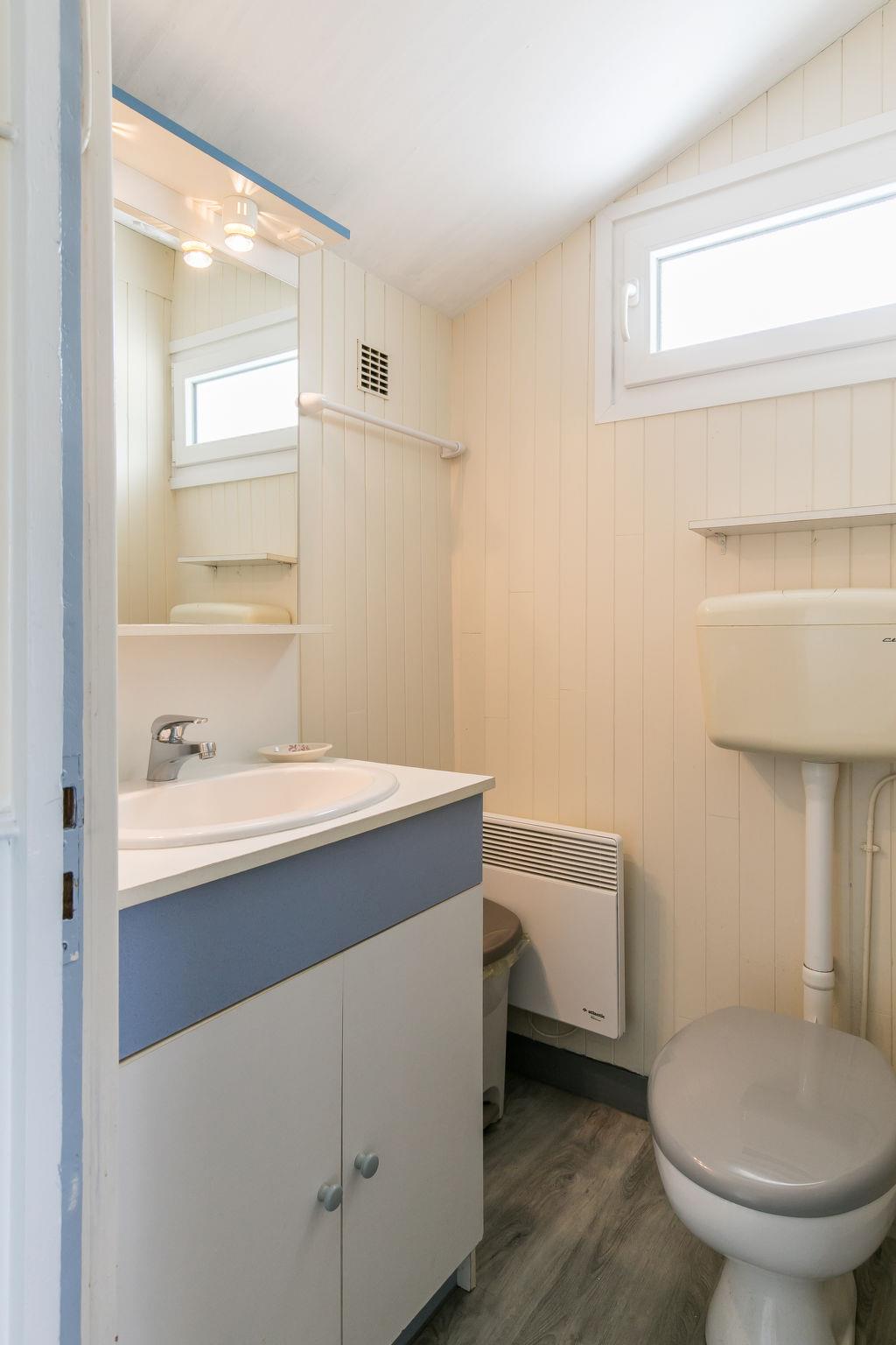 "La Littorine", 2-room house 40 m2. Beautiful and cosy furnishings: 1 room with 1 french bed (160 cm, length 200 cm), shower. Kitchen-/living room (mini-oven, 2 ceramic glass hob hotplates, toaster, kettle, microwave, electric coffee machine) with dining table and TV (flat screen), radio. Sep. WC. Electric heating. Patio. Terrace furniture, barbecue (portable), deck chairs (2). Facilities: children's high chair, baby cot. Please note: non-smoking house. Smoke alarm.