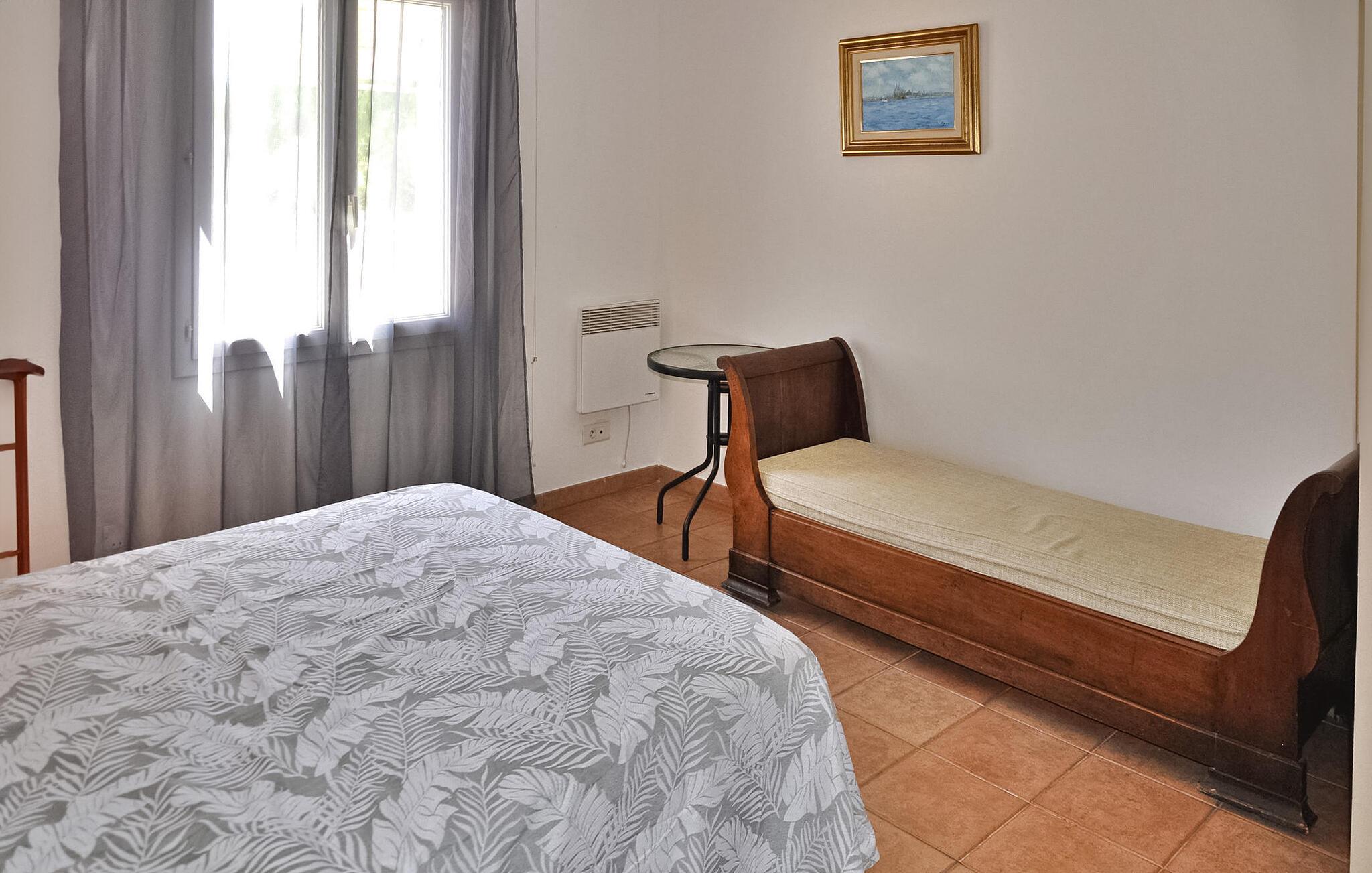 Denne feriebolig i Pernes les Fontaines ligger på landet, omkring 800 m fra de nærmeste butikker, i rolige omgivelser, men ikke afsondret. I stueetagen er der et åbent køkken forbundet med spise-/opholdsområdet med aircondition. Et soveværelse og et badeværelse er også på denne etage. Ovenpå er der et andet soveværelse. Udenfor ligger ejendommen på et stort lukket område med et petanqueområde. Terrassen, i skyggen af en pergola, giver adgang til spise-/opholdsområdet og køkkenet. Der er også en privat pool, sikret med en elektrisk rulleskodde. Bemærk venligst: Ejeren bor i et tilstødende hus med separat indgang og bruger ikke swimmingpoolen eller haven, men udfører nødvendig vedligeholdelse af poolen. Beliggende på sletten Monts de Vaucluse bakket op af Mont Ventoux, mellem Isle sur la Sorgue og Carpentras, er Pernes les Fontaines en by med vand og historier med sine mange gamle, skulpturelle springvand, som du vil opdage tilfældigt fra dine gåture i dens brostensbelagte gader og stræder. I nærheden kan du besøge: Isle sur la Sorgues samt Fontaine de Vaucluse og dens mystiske kilde. Byen Avignon vil kun være omkring 27 km væk og Mont Ventoux omkring 45 km væk. Familier med børn kan nyde vandattraktionsparken "Wave Island" og attraktionsparken "Parc Spirou Provence", begge beliggende i Monteux, omkring 8 km væk.