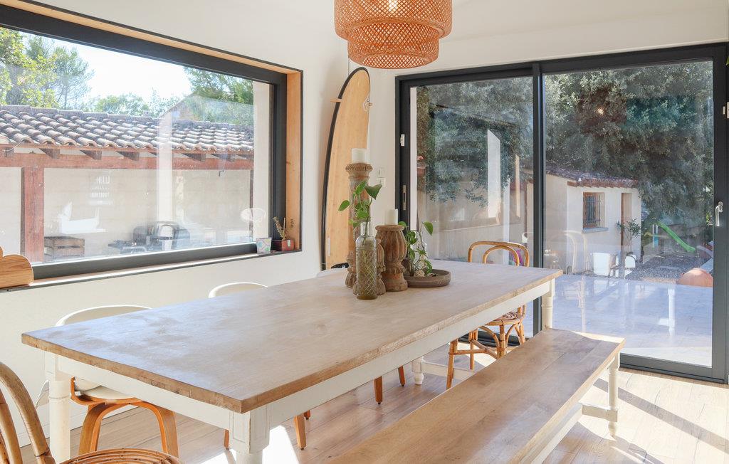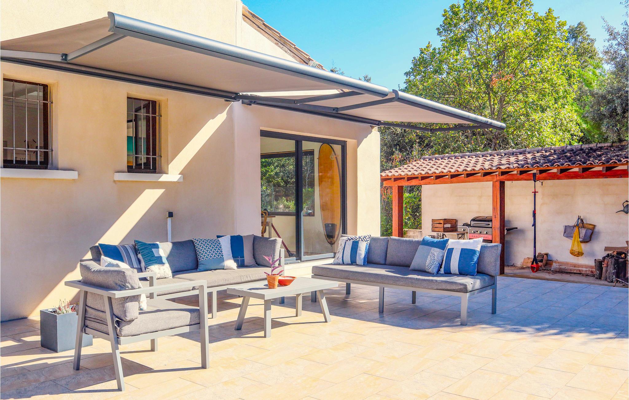 Tilbring en afslappende ferie i dette skønne feriehus, som har en optimal beliggenhed. Moderne design kombineret med hyggelige elementer kendetegner den rummelige bolig, der vil opfylde alle jeres ønsker. Om morgenen kan I samles i det lyse, store køkken, koge æg og nyde grøntsager og frugt fra regionen. Sæt jer i dagens første solstråler på terrasserne i haven og snup derefter en frisk dukkert i poolen.