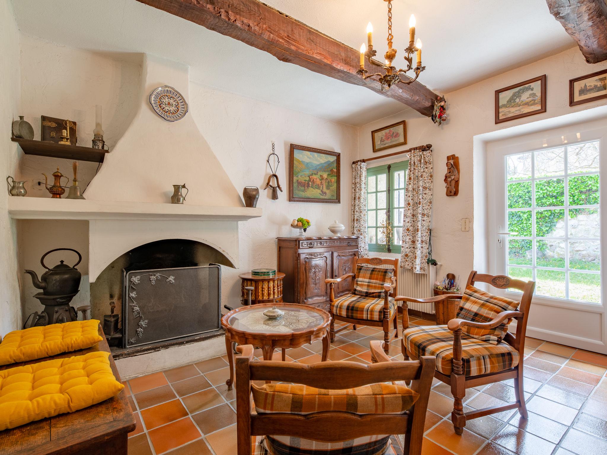 "La Palombière", 5-room house 145 m2. Romantic furnishings: living room with open-hearth fireplace (only for decoration). Exit to the garden. Living/dining room with TV and flat screen. 1 room with 1 french bed (160 cm, length 200 cm), fan and electric shutters. 1 room with 2 beds (80 cm, length 200 cm), TV, flat screen, fan and electric shutters. Open kitchen in the entrance (1 hot plate, oven, dishwasher, 3 gas rings, toaster, kettle, microwave, electric coffee machine). Exit to the terrace. Bath/WC, shower/WC. Upper floor: 1 room with 1 french bed (140 cm, length 190 cm), fan and electric shutters. Exit to the balcony. 1 room with 1 french bed (140 cm, length 190 cm), fan and electric shutters. Sep. WC. Gas heating. Large terrace 30 m2 partly roofed, south-east facing position. Terrace furniture, barbecue electric barbecue, deck chairs (8). Beautiful panoramic view of the countryside. Facilities: washing machine, mosquito net. Internet (WiFi). Please note: suitable for families. Non-smoking house. Maximum 1 pet/ dog allowed. Smoke alarm. Offer by a private individual according to Art. 155, IV of CGI. FR69662