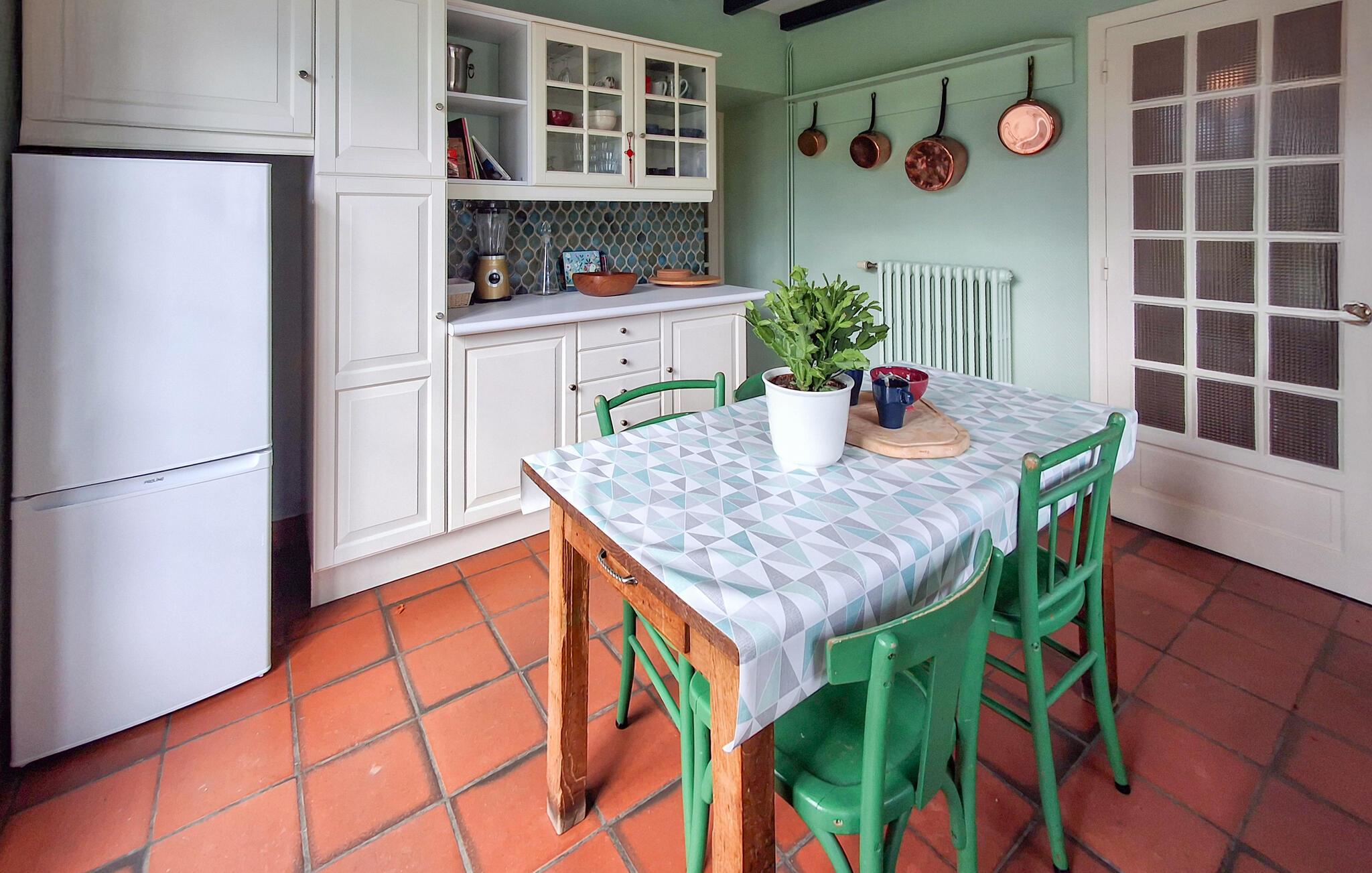 Dette charmerende feriehus fra 1700-tallet lægger op til at tage på en rejse tilbage i tiden i sine hyggelige og velindrettede værelser. Lad udsigten over den store have inspirere jer, mens I laver mad, og tag plads ved det lyse spisebord til harmoniske måltider. Tænd brændeovnen og afslut aftenen med en god læsning eller et brætspil, mens I lytter til det knitrende bål.