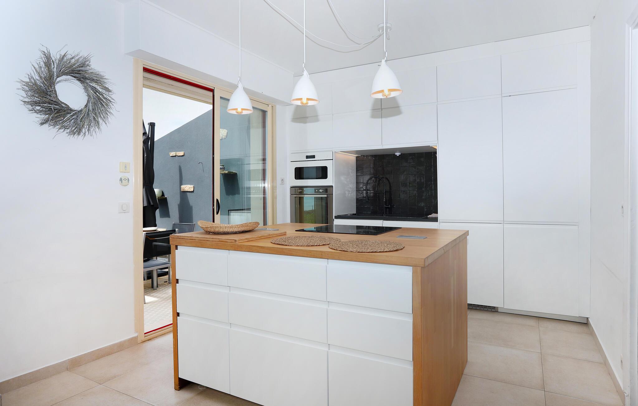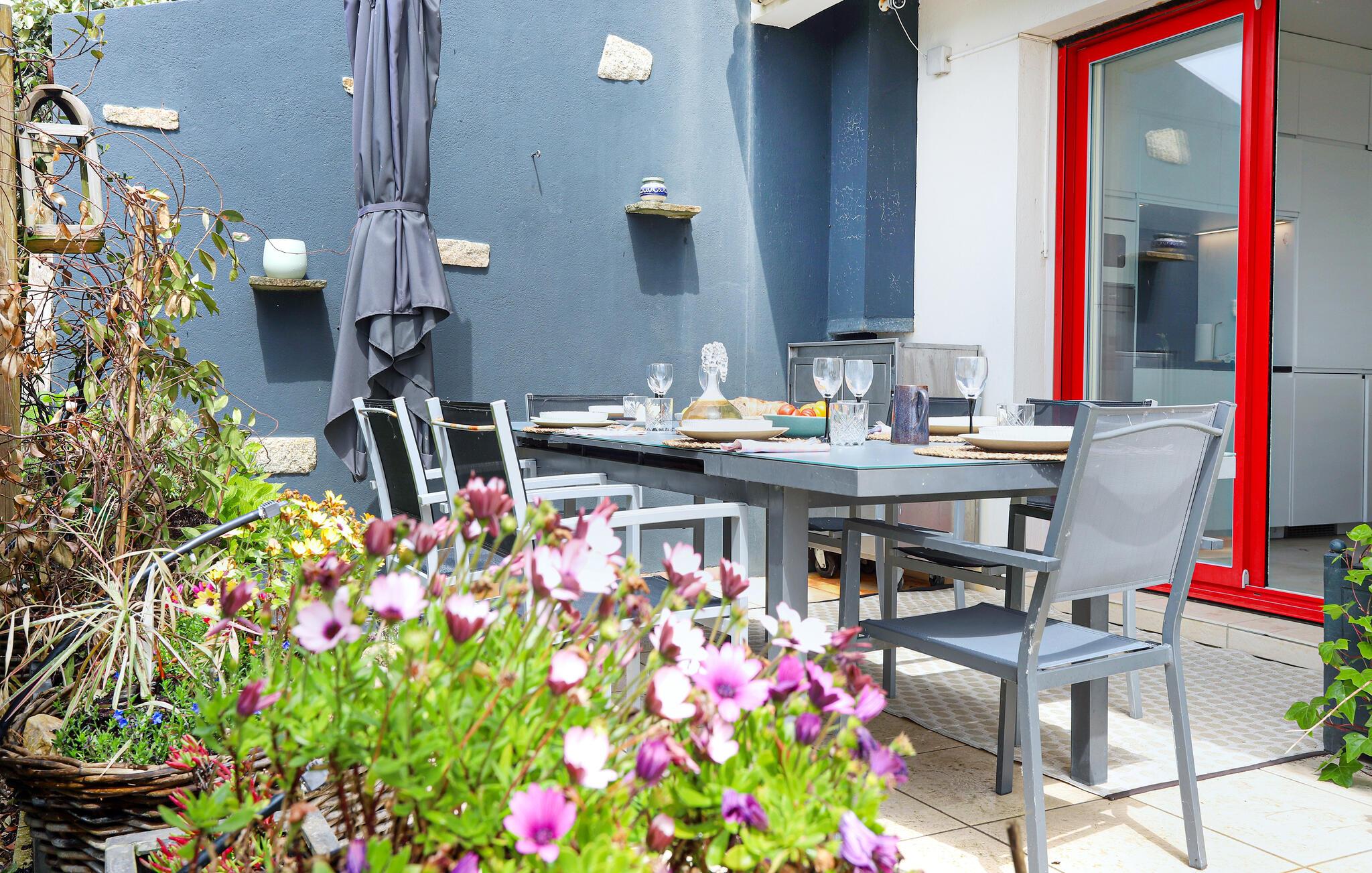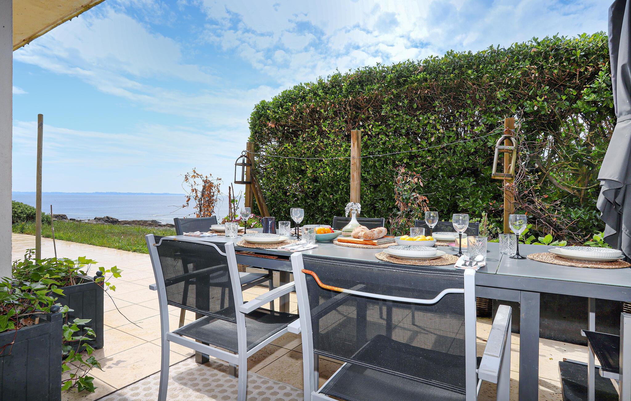 Træd ud på jeres solrige terrasse og lad den beroligende havluft forfriske jer. Server en solid morgenmad her og lyt til lyden af ??bølgerne. nyd de smukke solnedgange med en stemningsfuld grill i godt selskab.