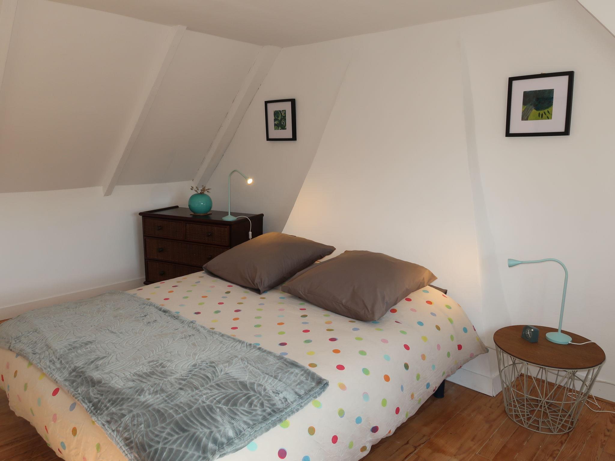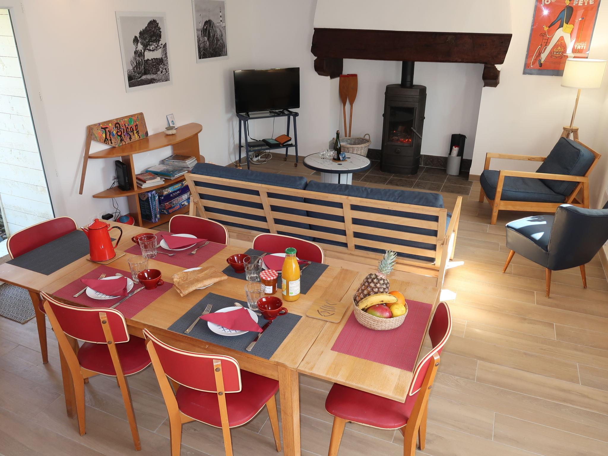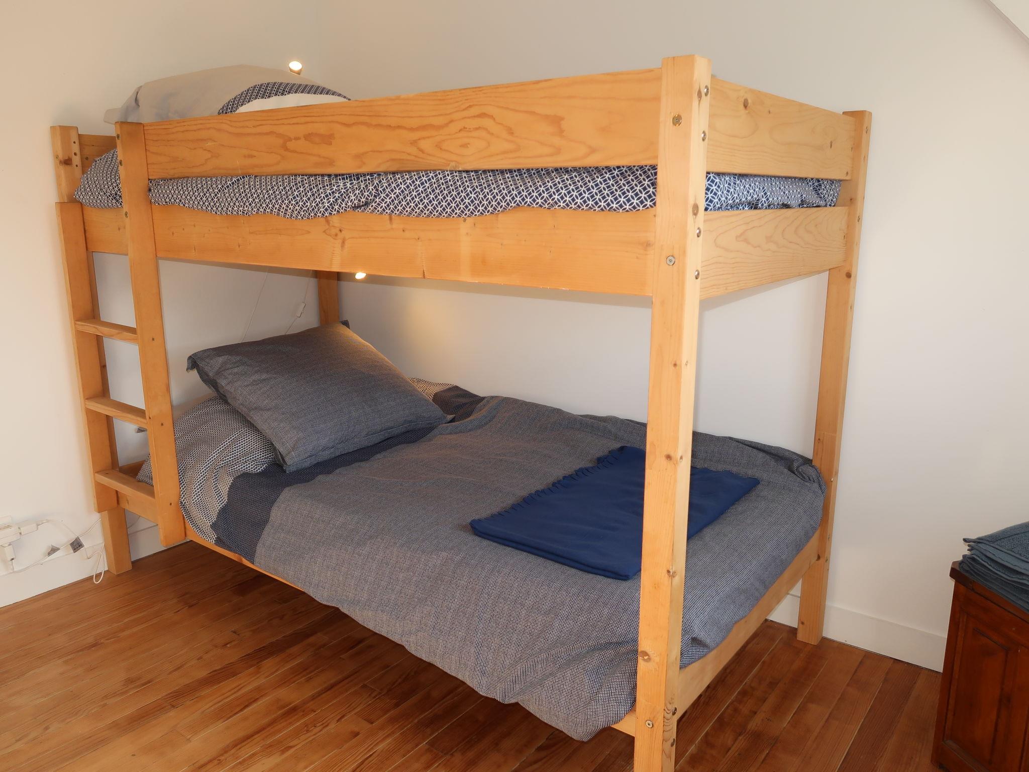 "Ty Bihan", 4-room house 75 m2 on 2 levels. Beautiful furnishings: open living/dining room with open-hearth fireplace, dining nook and TV (flat screen), DVD. Exit to the garden. Open kitchen (oven, dishwasher, 3 ceramic glass hob hotplates, toaster, kettle, microwave, freezer, electric coffee machine, Capsules for coffee machine (Nespresso) extra, raclette grill). Shower/WC. Electric heating. Upper floor: 1 room with 1 french bed (160 cm, length 200 cm). 1 room with 1 french bed (140 cm, length 190 cm). 1 room with 1 x 2 bunk beds (90 cm, length 190 cm). Parquet floors. Terrace furniture, barbecue, deck chairs (2). Facilities: washing machine, iron, children's high chair, baby cot for up to 2 year olds, hair dryer. Internet (WiFi). Please note: non-smoking house. Smoke alarm. 879385