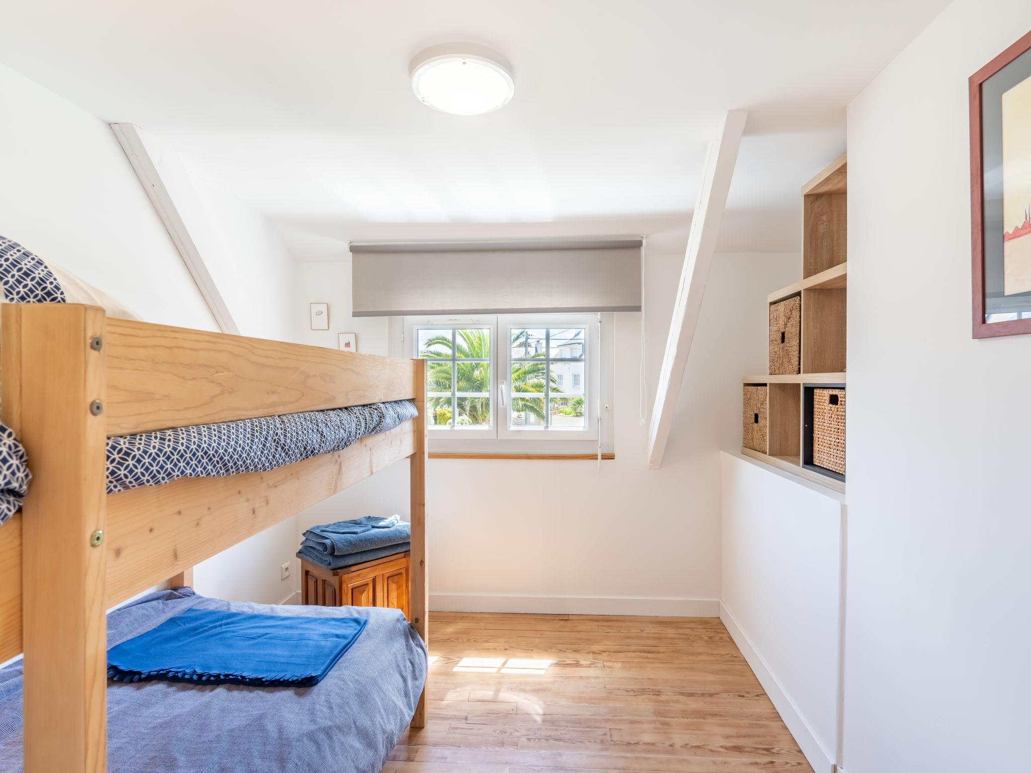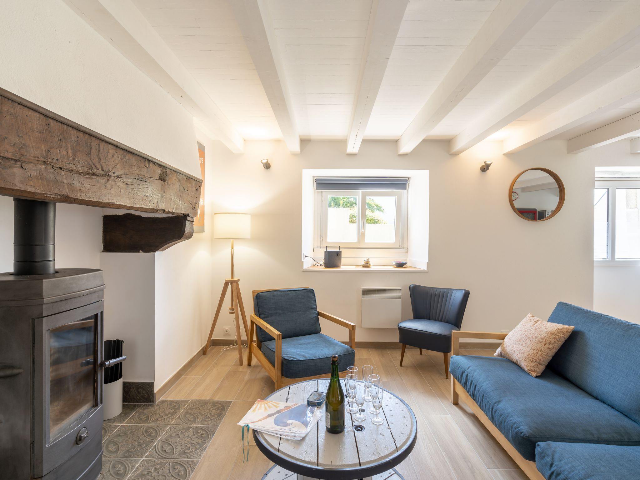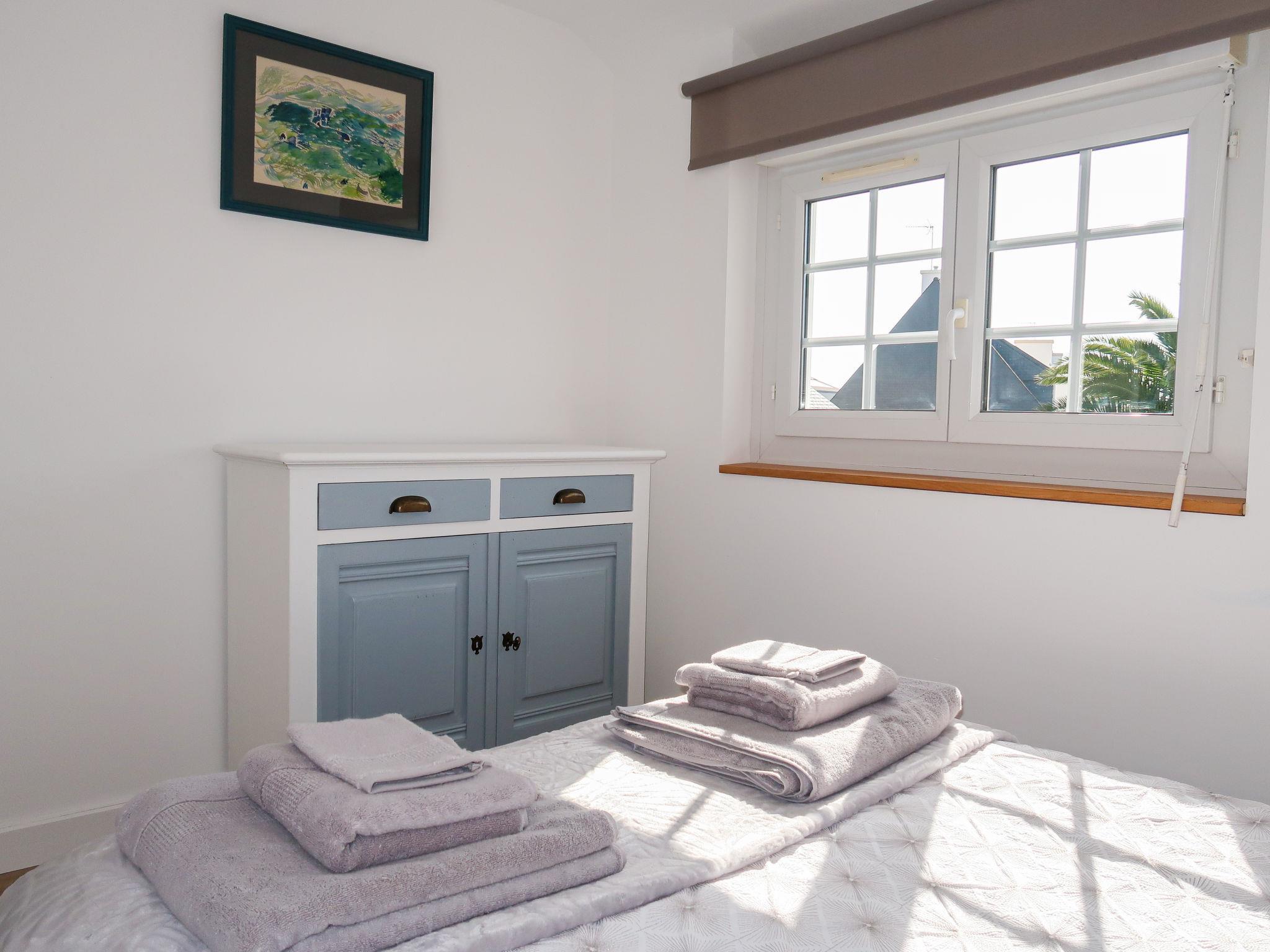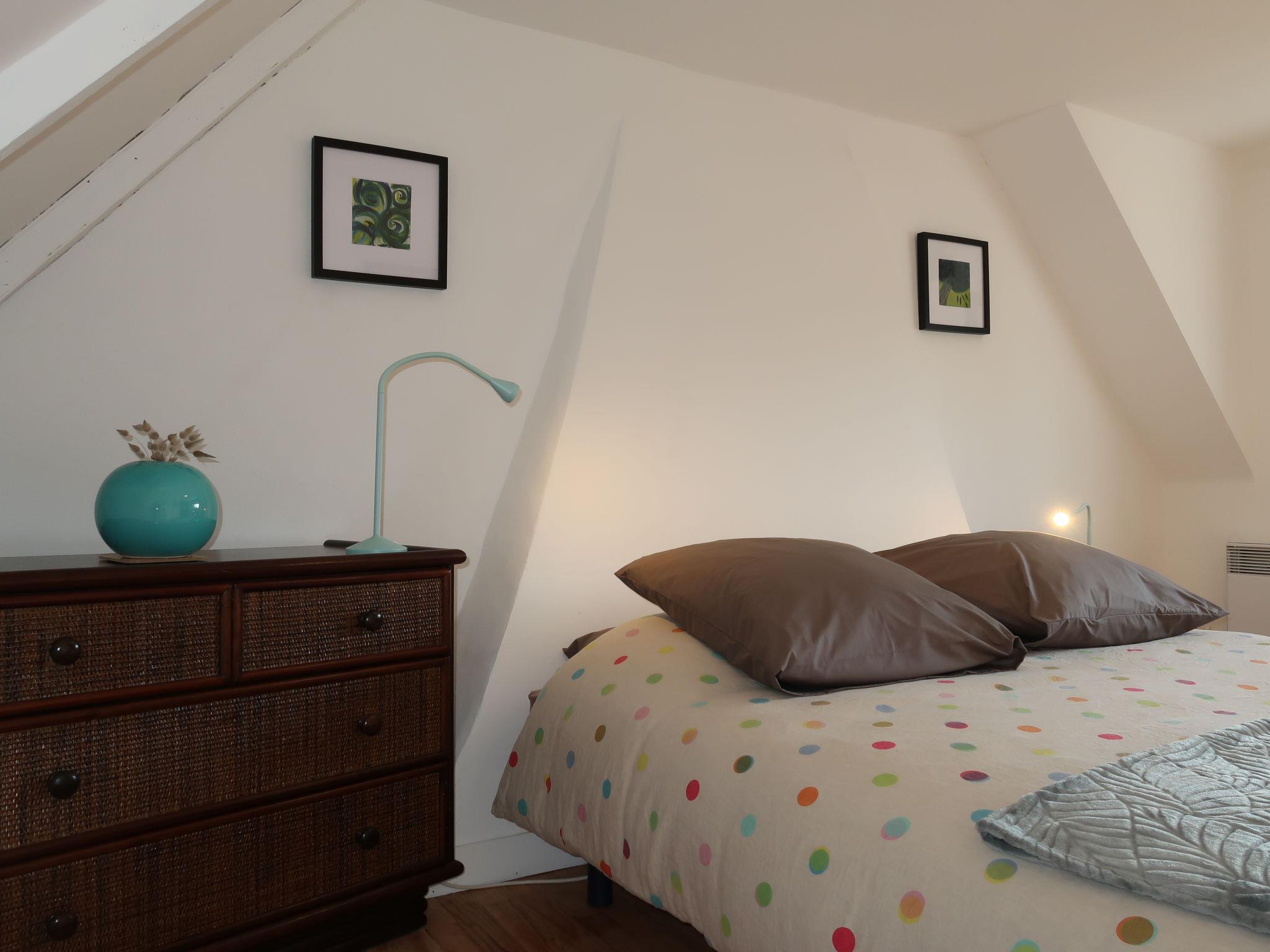 "Ty Bihan", 4-room house 75 m2 on 2 levels. Beautiful furnishings: open living/dining room with open-hearth fireplace, dining nook and TV (flat screen), DVD. Exit to the garden. Open kitchen (oven, dishwasher, 3 ceramic glass hob hotplates, toaster, kettle, microwave, freezer, electric coffee machine, Capsules for coffee machine (Nespresso) extra, raclette grill). Shower/WC. Electric heating. Upper floor: 1 room with 1 french bed (160 cm, length 200 cm). 1 room with 1 french bed (140 cm, length 190 cm). 1 room with 1 x 2 bunk beds (90 cm, length 190 cm). Parquet floors. Terrace furniture, barbecue, deck chairs (2). Facilities: washing machine, iron, children's high chair, baby cot for up to 2 year olds, hair dryer. Internet (WiFi). Please note: non-smoking house. Smoke alarm. 879385
