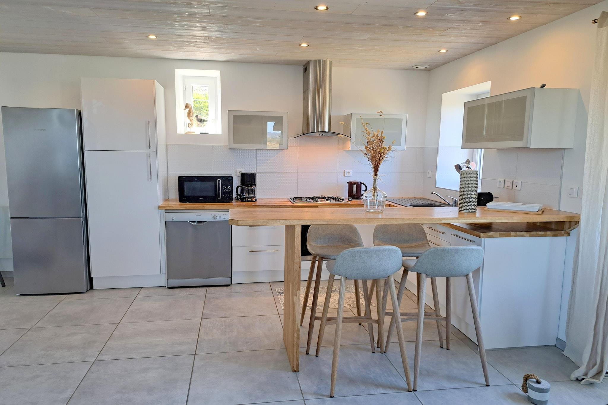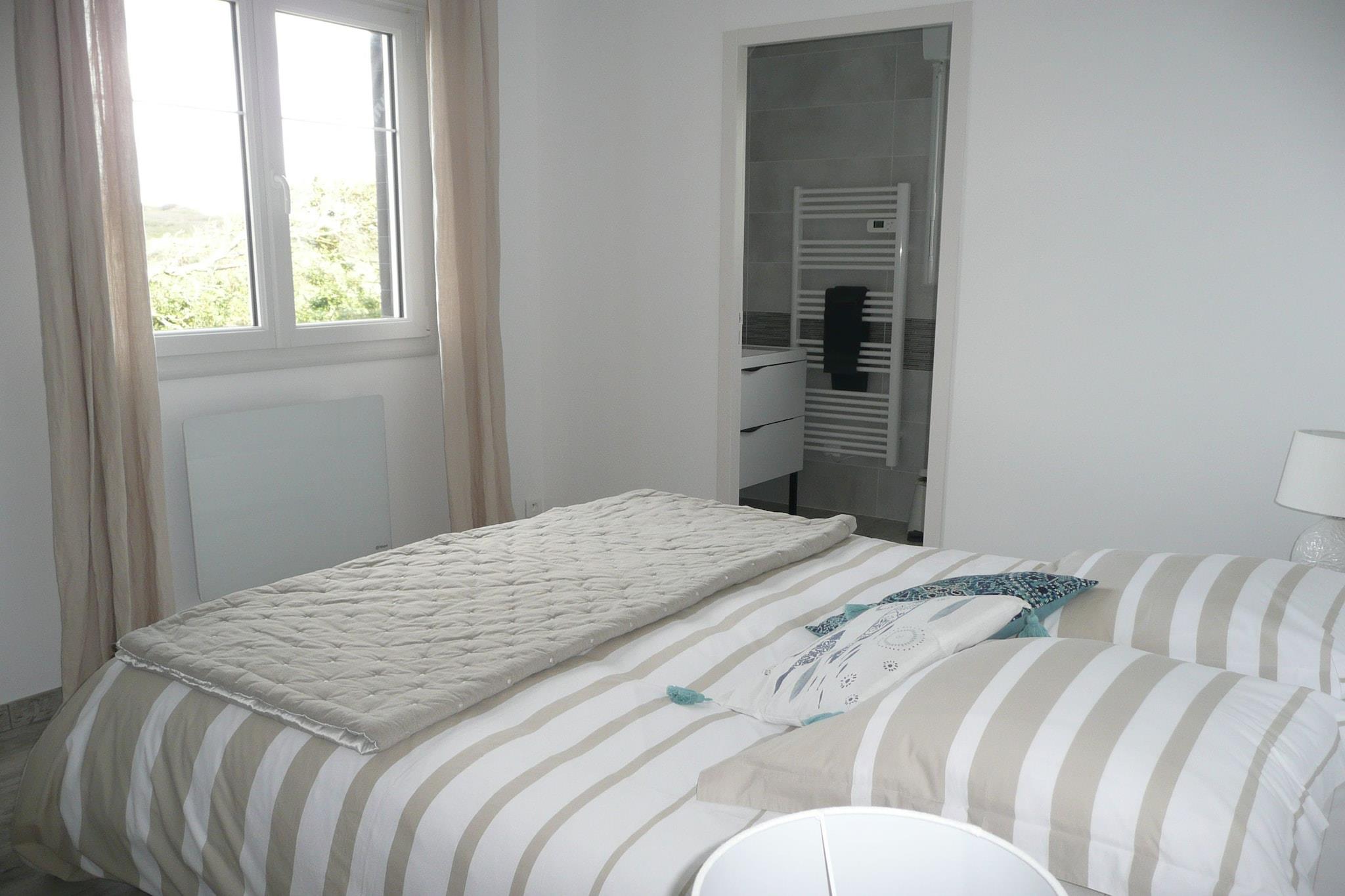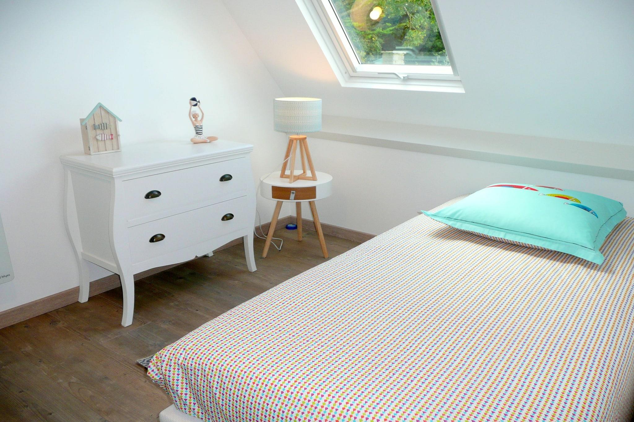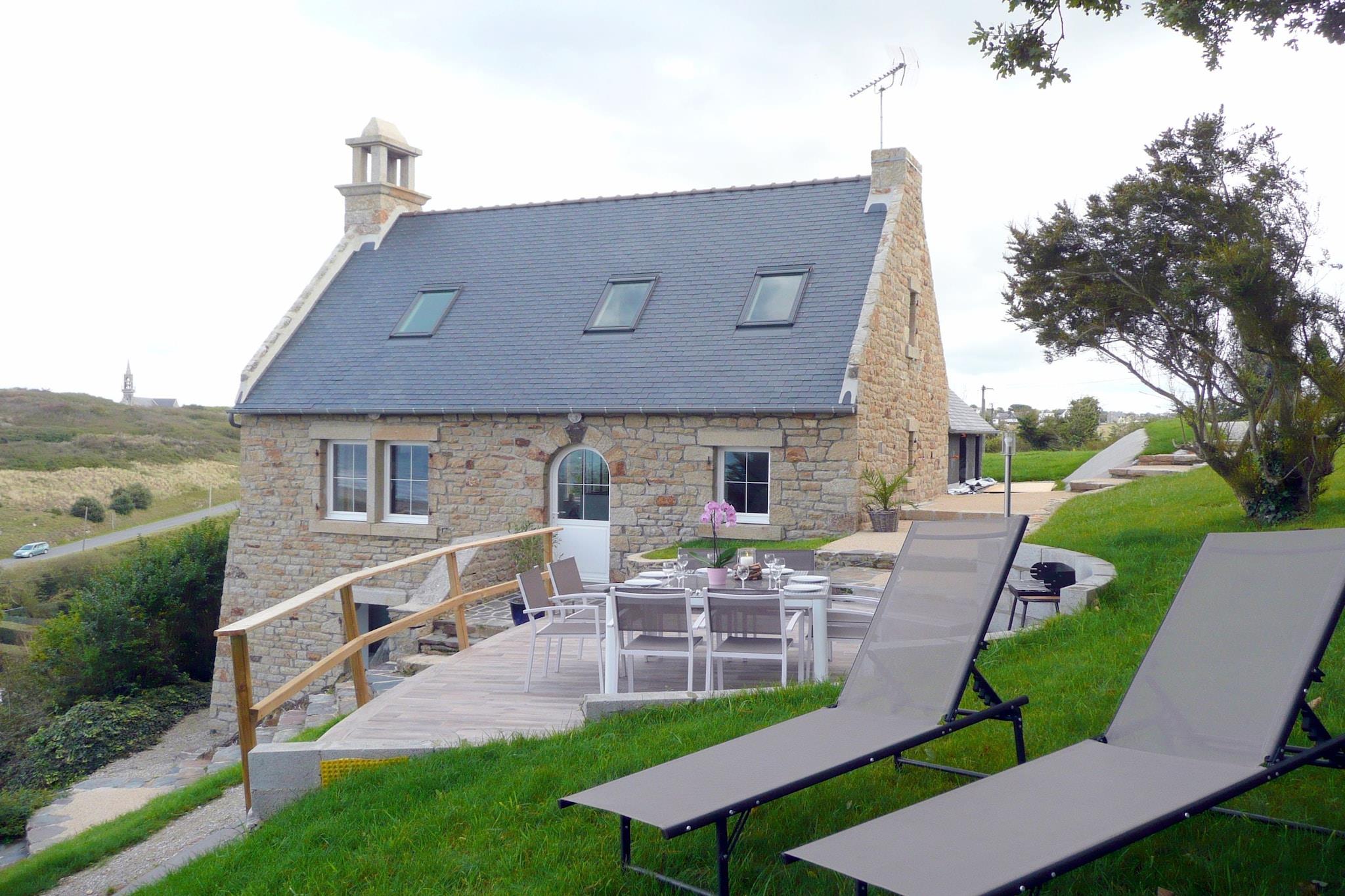 Fantastisk panoramaudsigt over havet, stranden og bugten. Kun 100 m fra stranden, direkte adgang fra terrassehaveejendommen. Stenhus med en usædvanlig, meget original moderne arkitektonisk stil, komfortable møbler, nyrestaureret i 2017. Om morgenen spiser du morgenmad på terrassen med croissanter og baguettes og en fantastisk havudsigt. Soveværelset på nederste etage med havudsigt har direkte udgang til en lille privat terrasse og haven. Vandsportsentusiaster, soldyrkere og naturelskere vil få noget for pengene her. På den kilometerlange sandstrand er der en strandsejlklub, som er en sand begivenhed ved lavvande. Hver sidste weekend i august er der optog i kapellet St. Anne la Palud.Den smukke placering af den brede, let skrånende sandstrand ved lavvande er et must for sandsejlere. Vi anbefaler et besøg i den tidligere sardinhavn Douarnenez med talrige pubber og specialrestauranter. På vejen bør du helt sikkert besøge middelalderlandsbyen Locronan, som er en af de smukkeste landsbyer i Frankrig og har været rammen om talrige film. Malerbyen Pont Aven med talrige kunstgallerier bør også besøges. Crozon har en labyrint, paintball, høj rebbane og drageflyvning fra Menez-Hom.