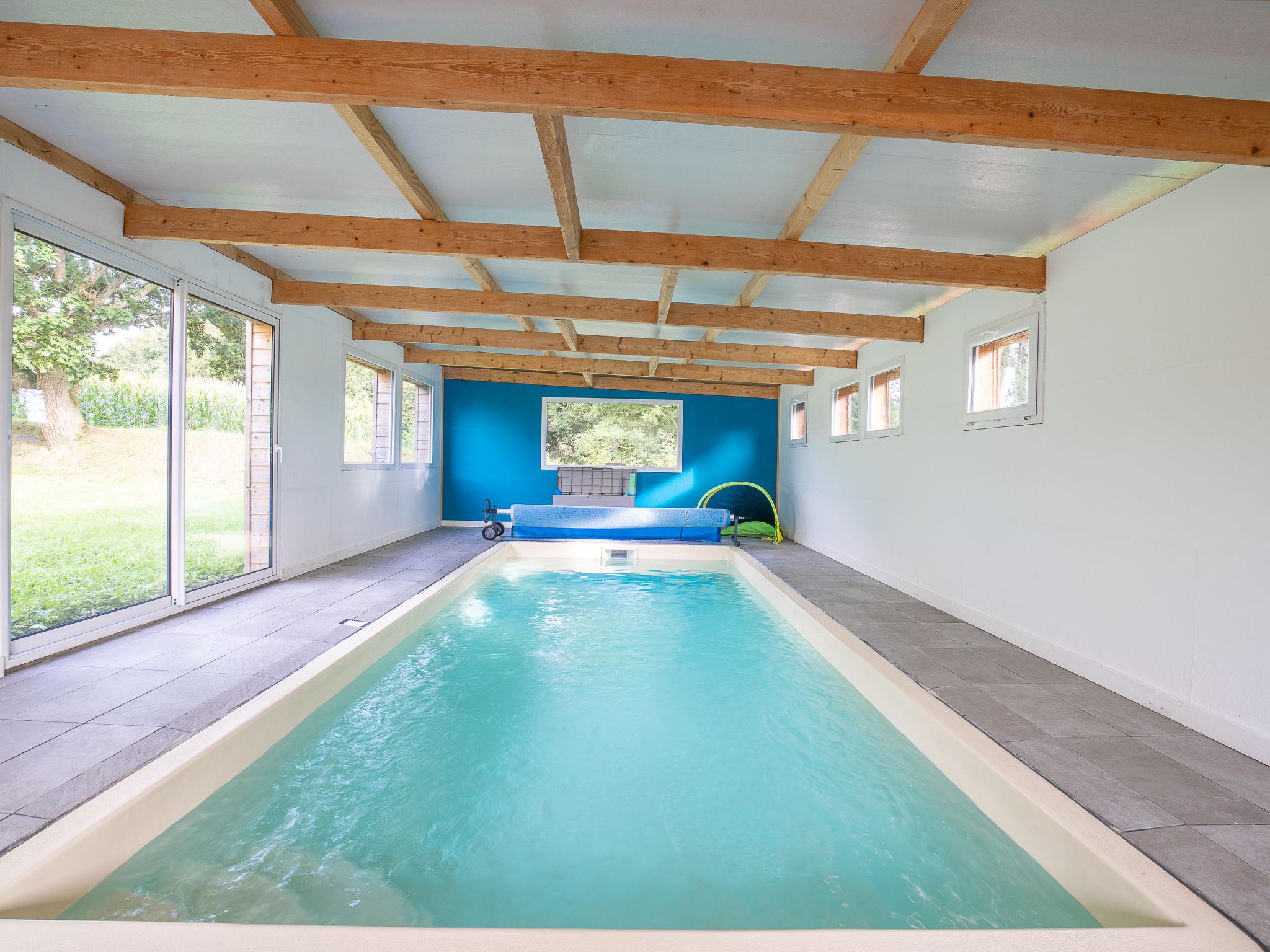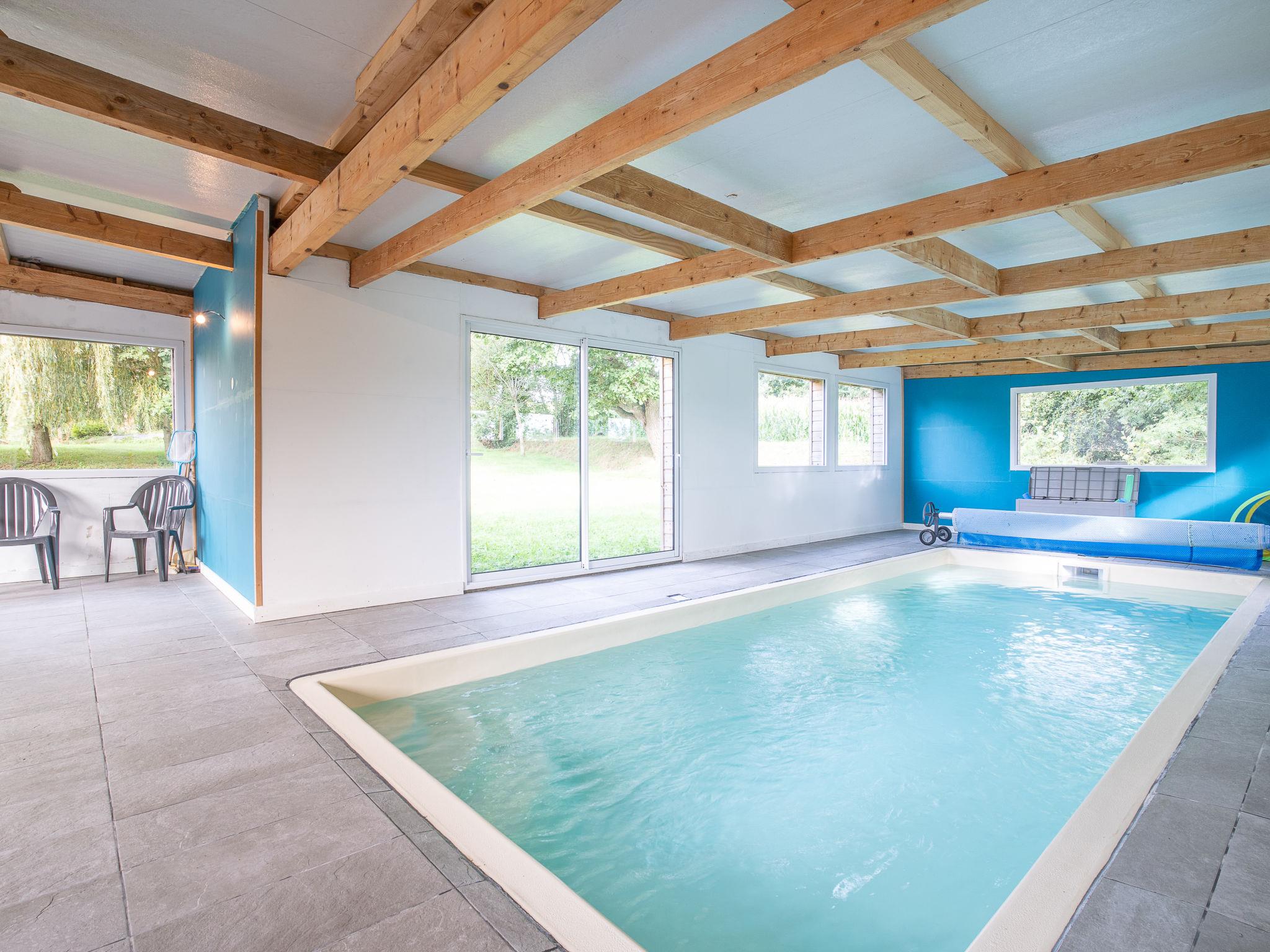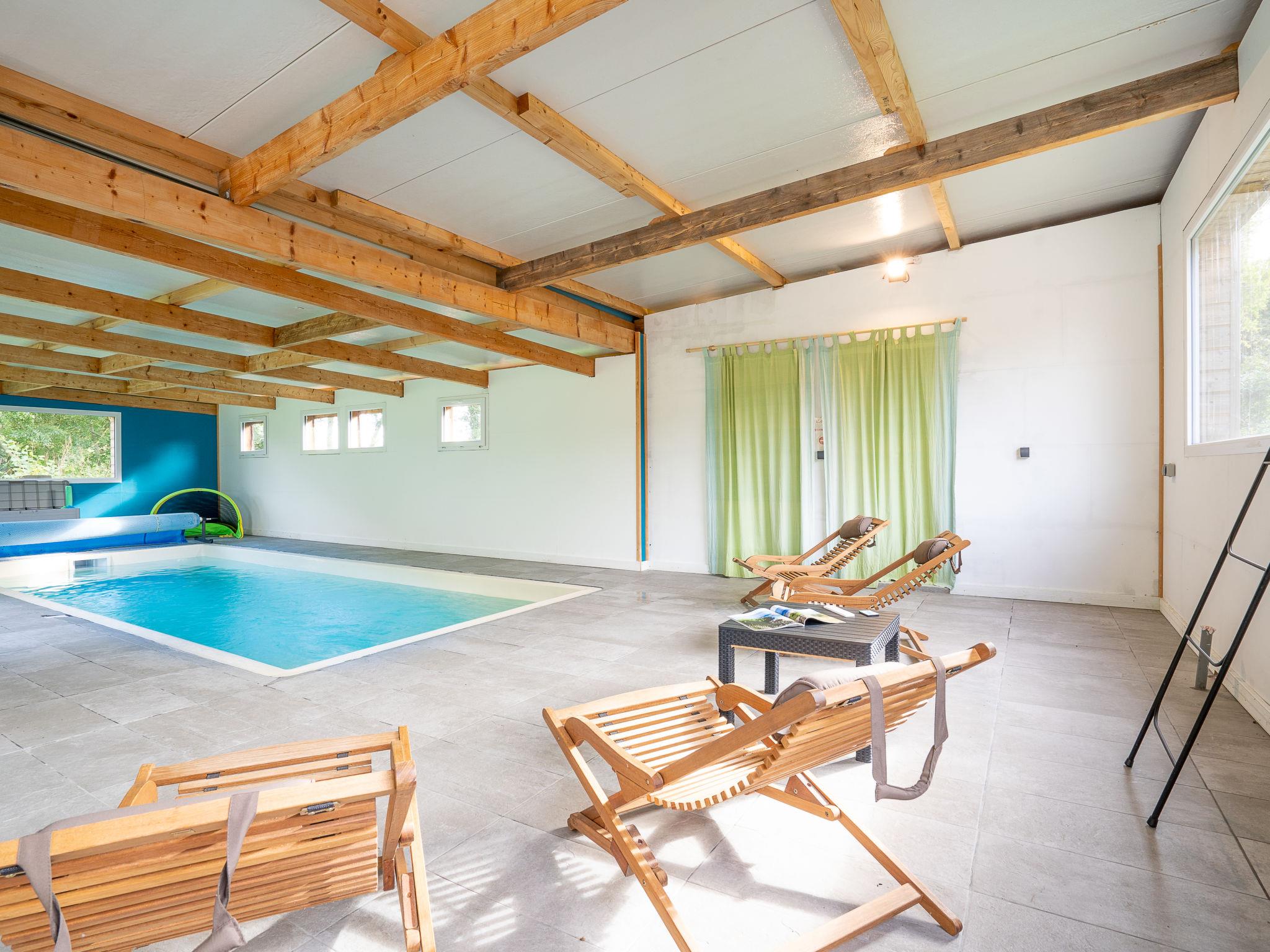 Large, cosy single-family house "Villa Heol", built in 2020. In the district of Pont Menou 3 km from the centre of Plestin, 6 km from the centre of Locquirec, 17 km from the centre of Morlaix, in a quiet position in the residential district, 4.6 km from the sea, 4.6 km from the beach, in a cul-de-sac, in the countryside. Private: property 2'000 m2, well-kept garden with lawn and trees, indoor pool heated (3 x 7 m, depth 110 - 140 cm, seasonal availability: 01.Jan. - 31.Dec.). Pool house, table tennis, volleyball, badminton, pool maintenance by the owner/gardener. In the house: billiard table, playroom. Parking (for 2 cars), single garage. Shop 3 km, supermarket 3.3 km, restaurant 3 km, bakery 3 km, bus stop 600 m, sandy beach "à Locquirec" 4.6 km, indoor swimming pool 10 km. Sports harbour 6.7 km, golf course (9 hole) 16 km, surf school 6 km, sailing school 6 km, tennis 4 km, riding stable 500 m, walking paths from the house 300 m. Nearby attractions: Locquirec 6 km, Plougasnou 12 km, Lannion 20 km, Ploumanac'h, Côte du Granit Rose 36 km, Carantec, Baie de Morlaix 33 km. Hiking paths: circuit de 5,21km, départ Pont Menou 300 m, GR34, sentier des douaniers 4.5 km. Please note: baby equipment (included). Object suitable for 6 adults + 2 children. Please note that the pool area is not heated.