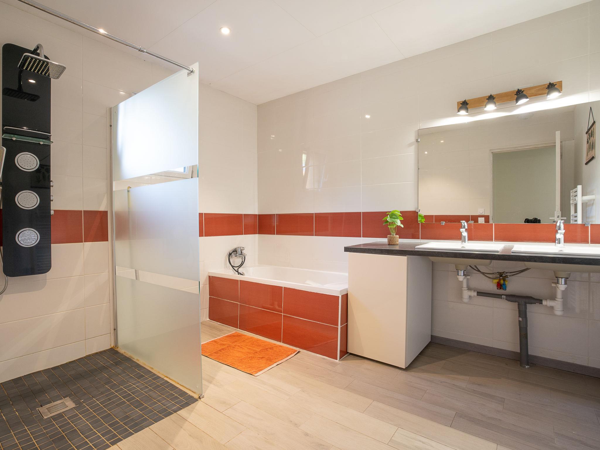 "Villa Heol", 5-room house 210 m2, on the ground floor. Object suitable for 6 adults + 2 children. Spacious, beautiful and tasteful furnishings: living/dining room with dining table, kitchen corner, TV and DVD. Exit to the garden. 1 room with 1 french bed (160 cm), shower/WC. Exit to the garden. 1 room with 2 beds (90 cm), 1 x 2 bunk beds (90 cm). 1 room with 1 french bed (160 cm). Open kitchen (oven, dishwasher, 3 induction hot plates, microwave, electric coffee machine). Exit to the garden. Bath/shower, sep. WC, double hand-basin. Electric heating. Terrace furniture, barbecue (portable), deck chairs (4). Facilities: washing machine, iron, baby cot. Internet (WiFi). Please note: suitable for families. Non-smokers only. Smoke alarm.