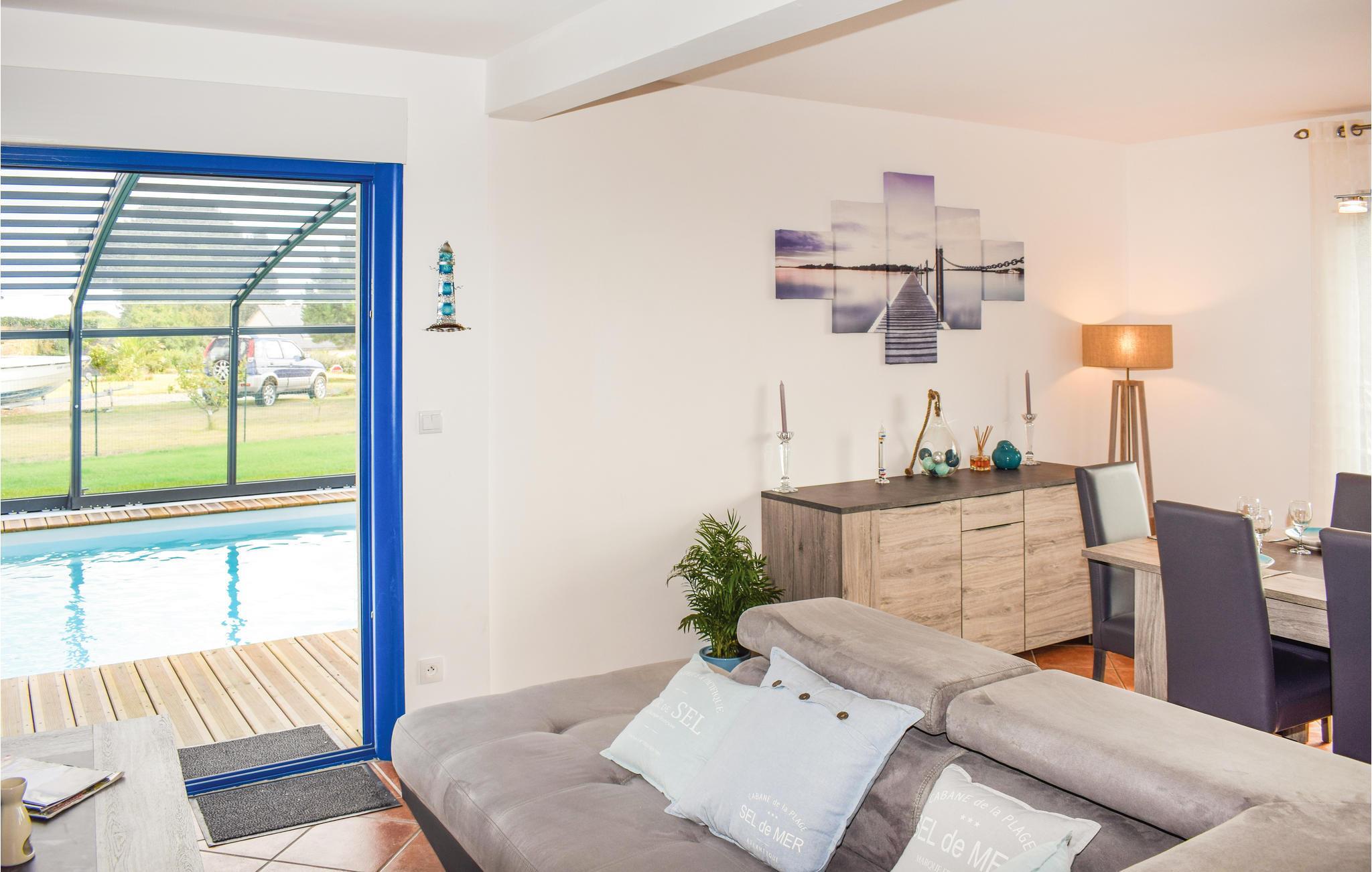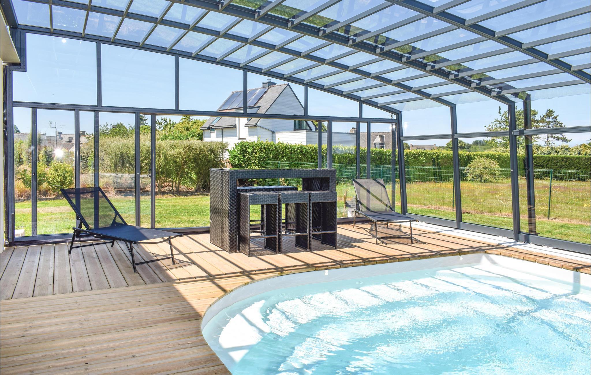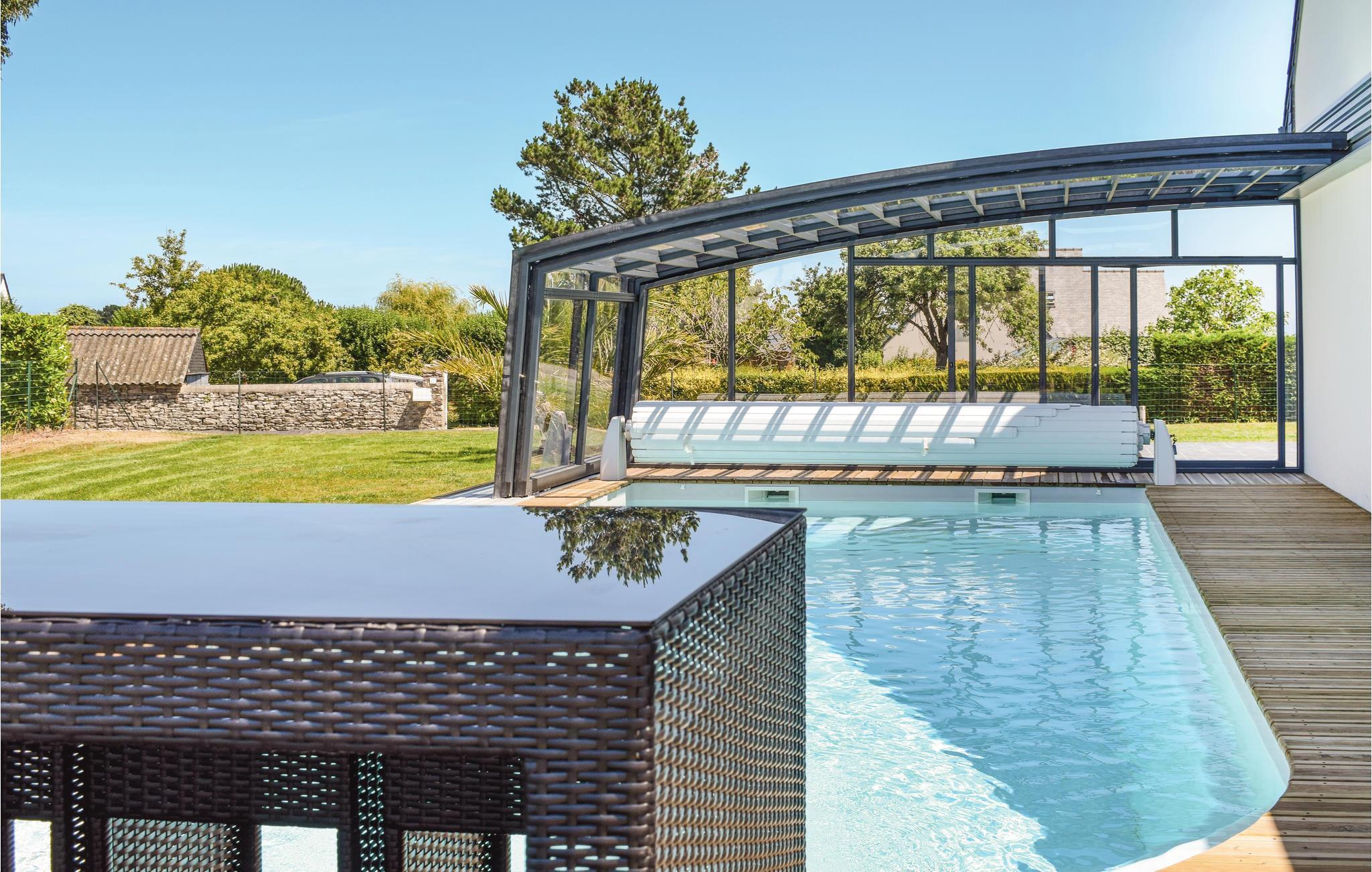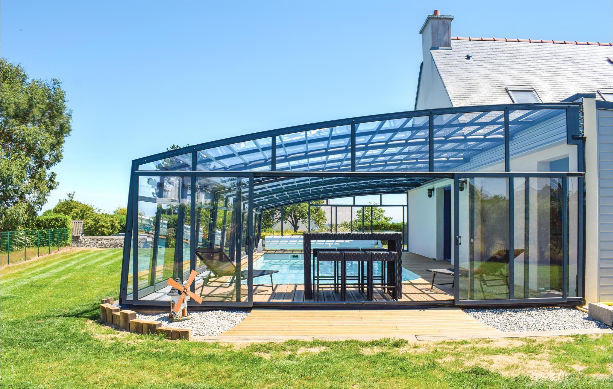 Indretningen er moderne, og den store stue fører ud til poolen, hvor I kan slappe af med udsigt over haven. De store vinduer giver et behageligt dagslys. Fra soveværelserne har I direkte udsigt over havet. Ejendommen imponerer med en rigtig hyggelig atmosfære, ikke mindst takket være den indendørs pool, som kan opvarmes på alle tider af året.