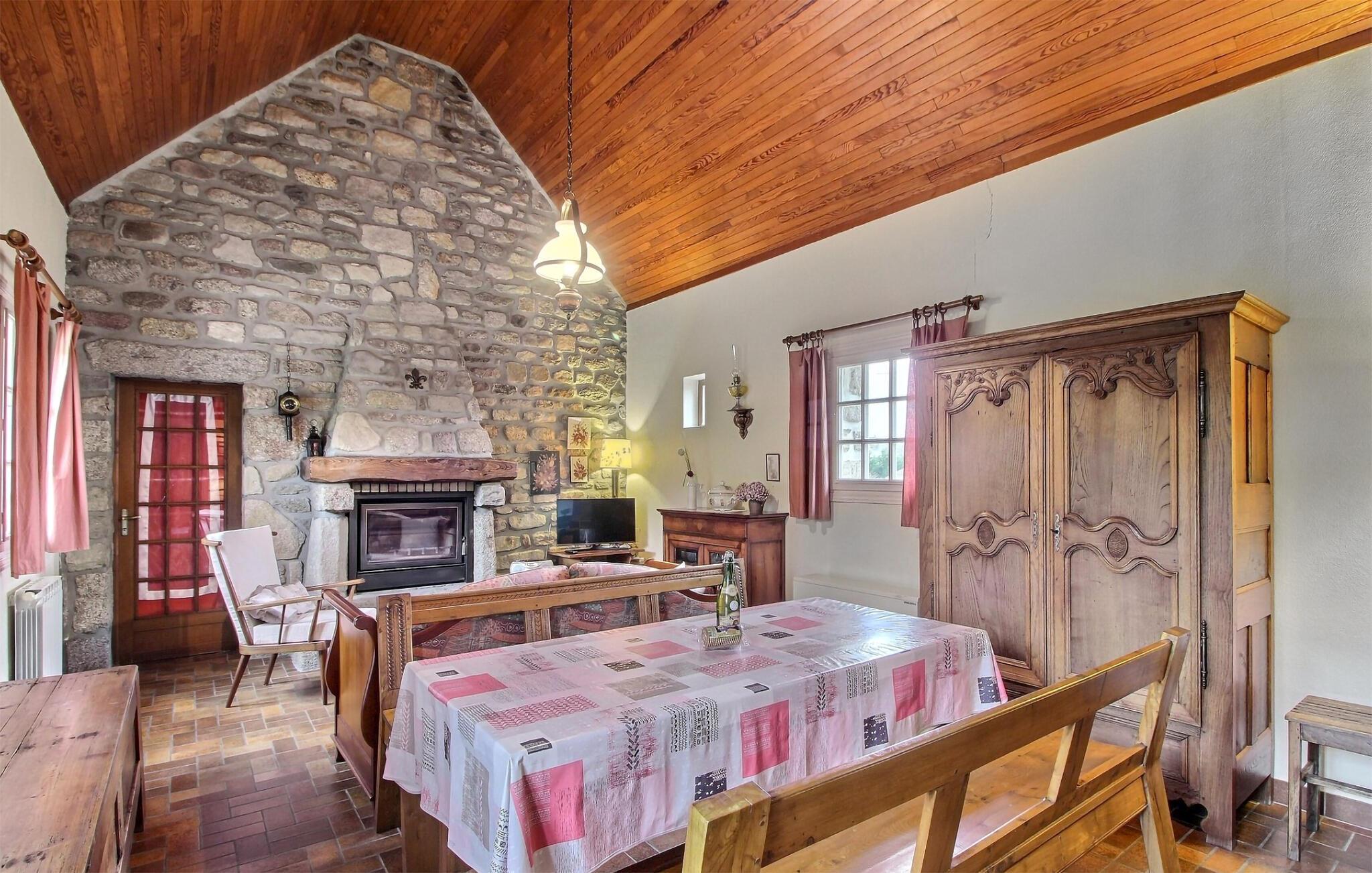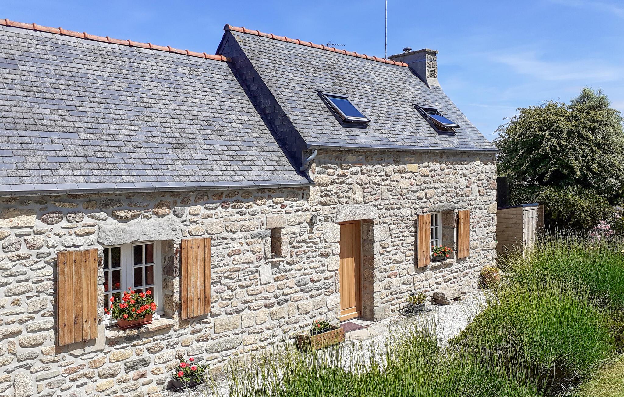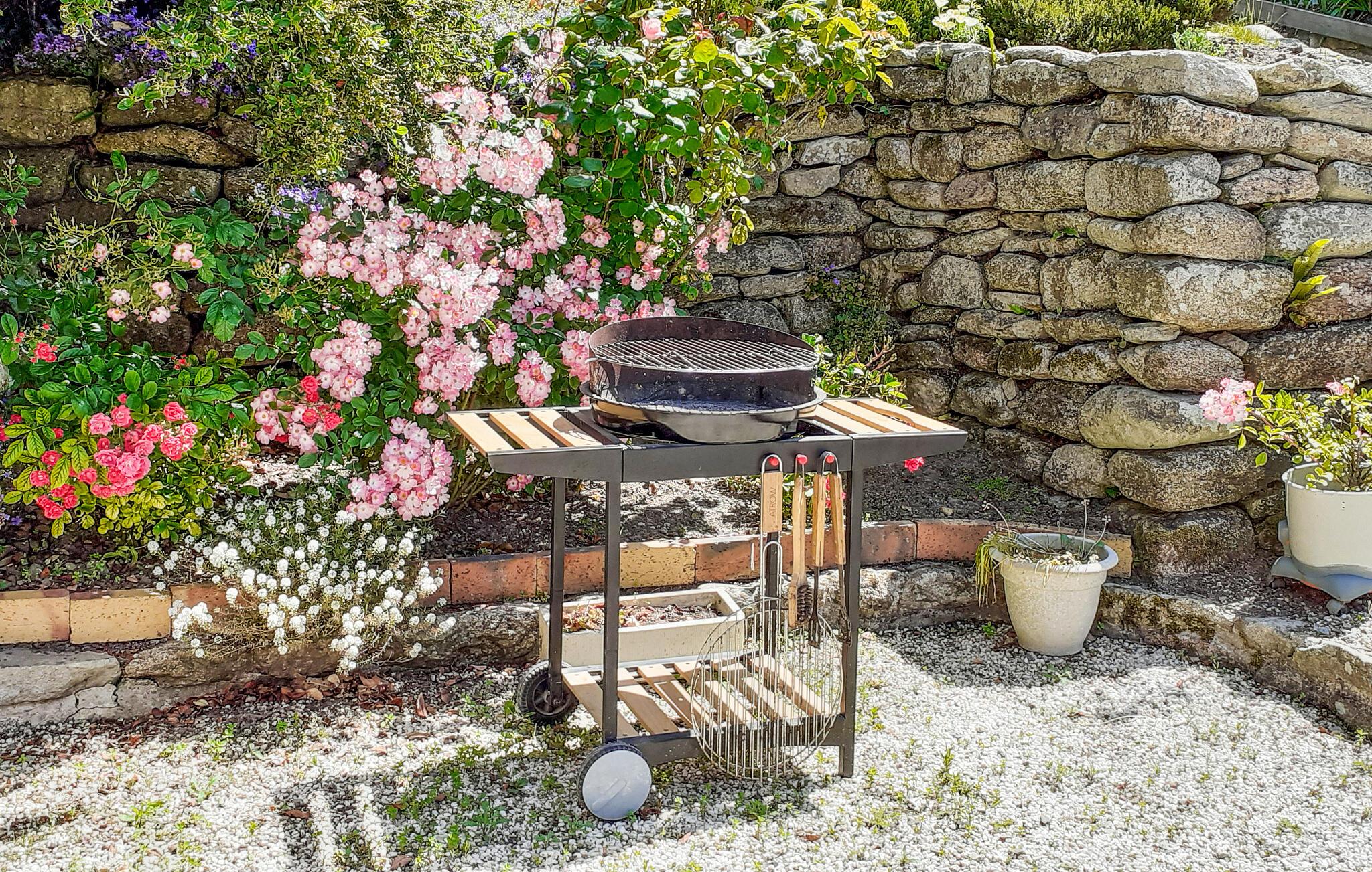 Velkommen til dette rustikke stenhus, der ligger vidunderligt omgivet af en smuk have tæt på havet. Indretningen fremtræder særdeles varmt og charmerende med gennemgående træelementer og delvist frilagte murværk, der skaber en varm og afslappende atmosfære, hvor I bare kan lade hverdagens bekymringer blive derhjemme. Efter en dejlig dag på stranden kan I lade aftenen gå på hæld med et glas god vin og den hyggelige gnitren og varme fra pejsen.