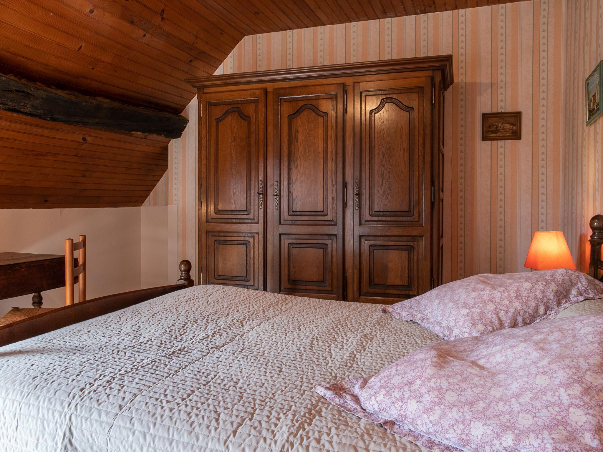 "Manoir des Halles", 4-room house 110 m2 on 2 levels, on the upper ground floor. Beautiful and rustic furnishings: upper floor: living/dining room with open-hearth fireplace, dining table, TV, international TV channels, radio, CD-player and DVD. Open kitchen (1 hot plate, oven, dishwasher, 3 gas rings, toaster, kettle, microwave, freezer, electric coffee machine) with small dining table. Sep. WC. Gas heating. 2nd upper floor: (spiral staircase), 1 room with 1 french bed (140 cm, length 190 cm), bath/WC. 2 rooms, each room with 1 french bed (140 cm, length 190 cm), shower/WC. Balcony, south facing position and west facing position. Terrace furniture, barbecue (portable), deck chairs (2). Facilities: washing machine, dryer, iron, children's high chair, baby cot. Internet (WiFi, free). Please note: non-smoking house. Maximum 1 pet/ dog allowed. If the additional bed is not reserved, the room with the single bed remains closed. 29185 000058B1