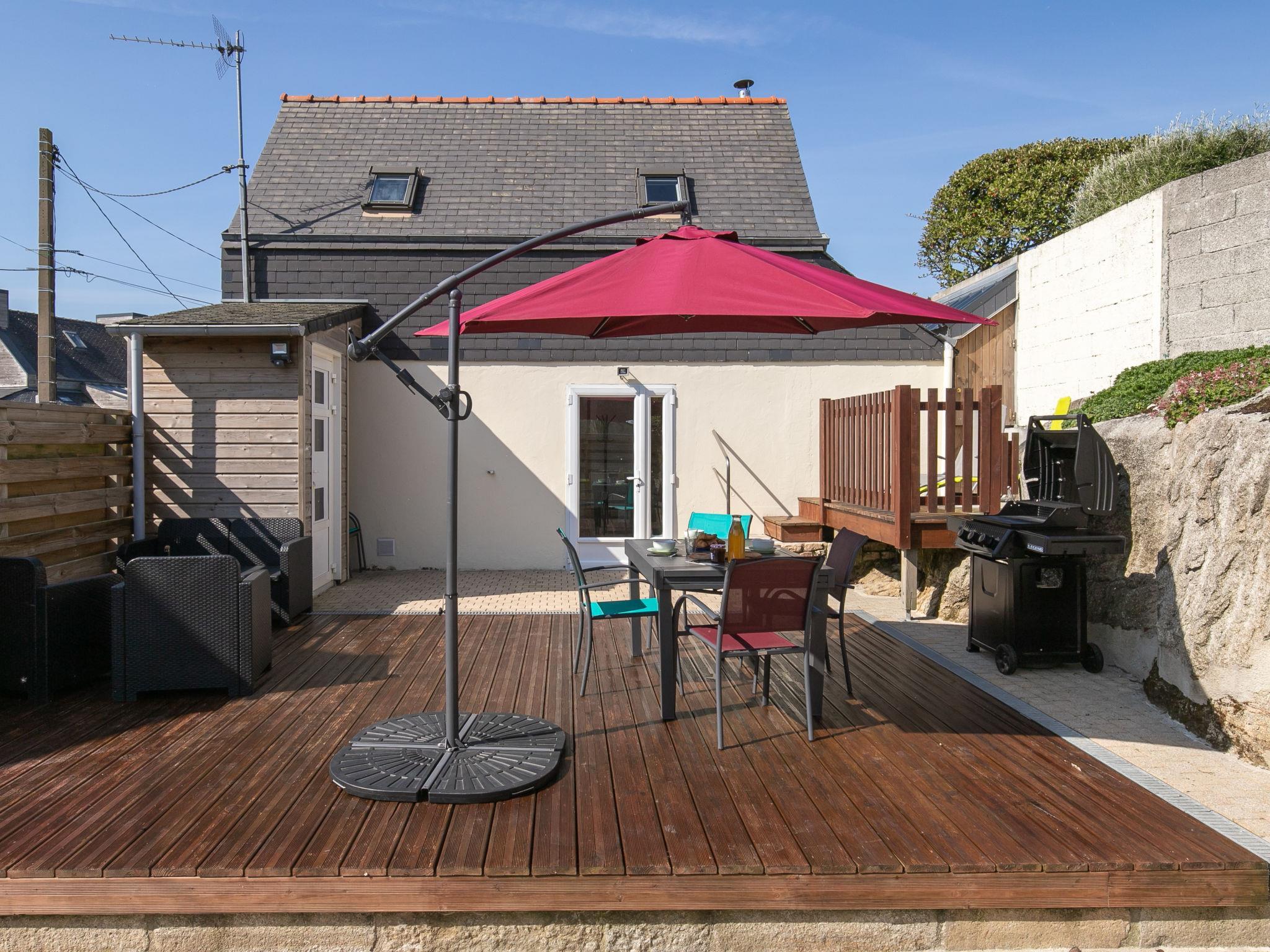 "Ti Bihan", 3-room house 35 m2 on 2 levels. Fully renovated in 2024, beautiful and cosy furnishings: living/dining room 20 m2 with Scandinavian wood stove and TV (flat screen). Exit to the terrace. Small kitchenette (2 gas rings, toaster, kettle, microwave, electric coffee machine, Capsules for coffee machine (Dolce Gusto) extra). Shower/WC. Upper floor: 1 room 9 m2, with sloping ceilings with 1 french bed (140 cm, length 190 cm). 1 room 9 m2, with sloping ceilings with 1 bed (90 cm, length 190 cm). Electric heating. Terrace 30 m2, south facing position. Terrace furniture, barbecue (portable), deck chairs (2), box-room. Facilities: washing machine, children's high chair, baby cot, hair dryer. Please note: non-smoking house. Smoke alarm. Offer by a private individual according to Art. 155, IV of CGI. 29185000158FU