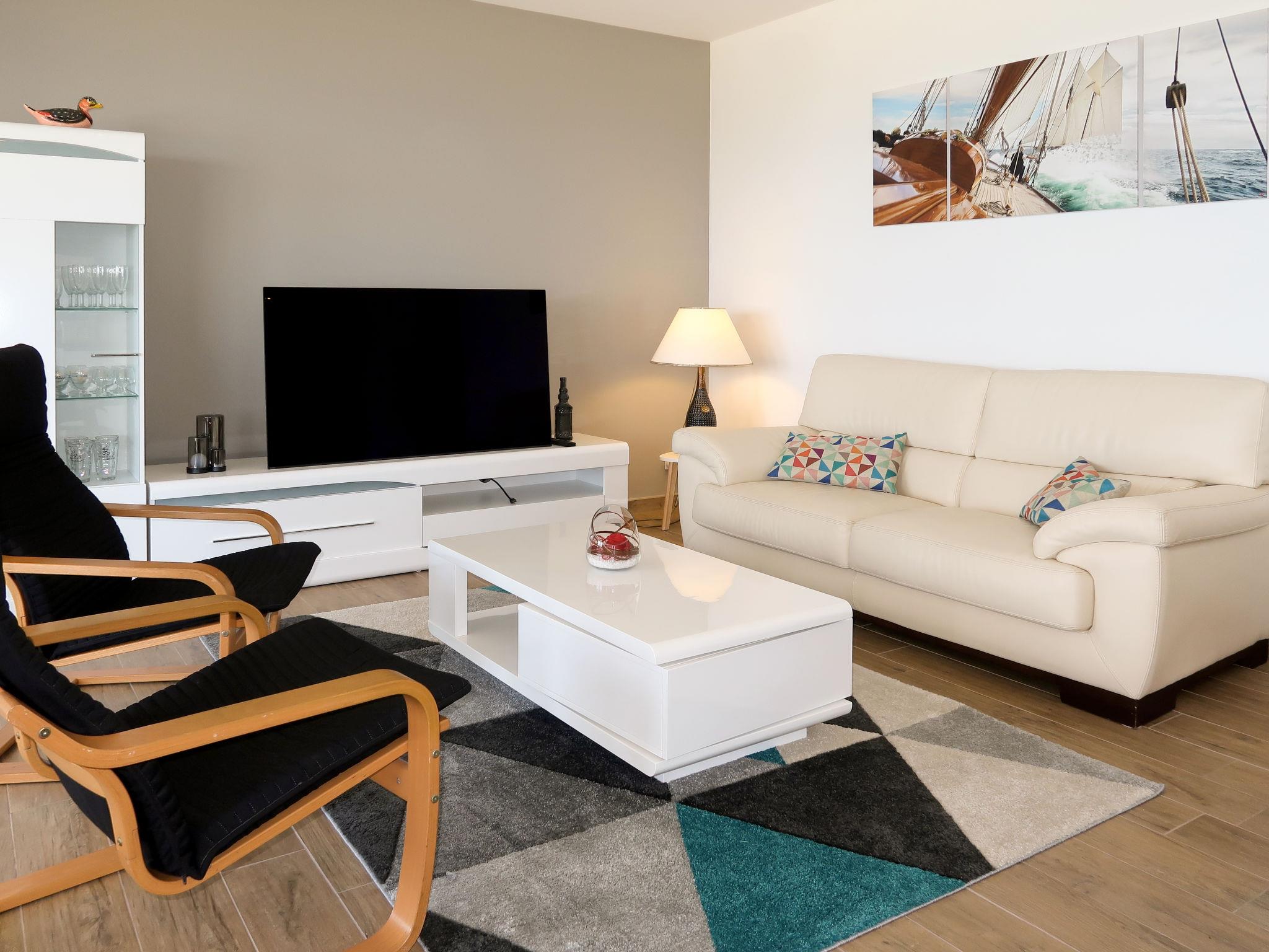 Modern terraced house "de la Digue". In the district of Pors Meur 3.5 km from the centre of Plouescat, 19.5 km from the centre of Saint Pol de Léon, 18.5 km from the centre of Lesneven, 30 m from the sea, 30 m from the beach, direct access to the beach. Private: property 330 m2, garden (fenced) with wildlife garden. In the house: storage room for bicycles. Parking (for 2 cars) on the premises. Shop 450 m, supermarket 3.5 km, restaurant 200 m, bakery 3.5 km, bus stop 2.7 km, sandy beach "Pors Meur" 30 m, thermal baths "Thalasso Roscoff" 24 km. Golf course (9 hole) 7 km, surf school, sailing school 300 m, walking paths from the house 10 m. Nearby attractions: Réserve ornithologique Keremma 10 km, Roscoff et Jardin exotique, Île de Batz 24 km, Château de Kerjean 32 km, Morlaix 38 km, Océanopolis Brest 50 km, Carantec 28 km. Hiking paths: GR34, sentier des douaniers 20 m.