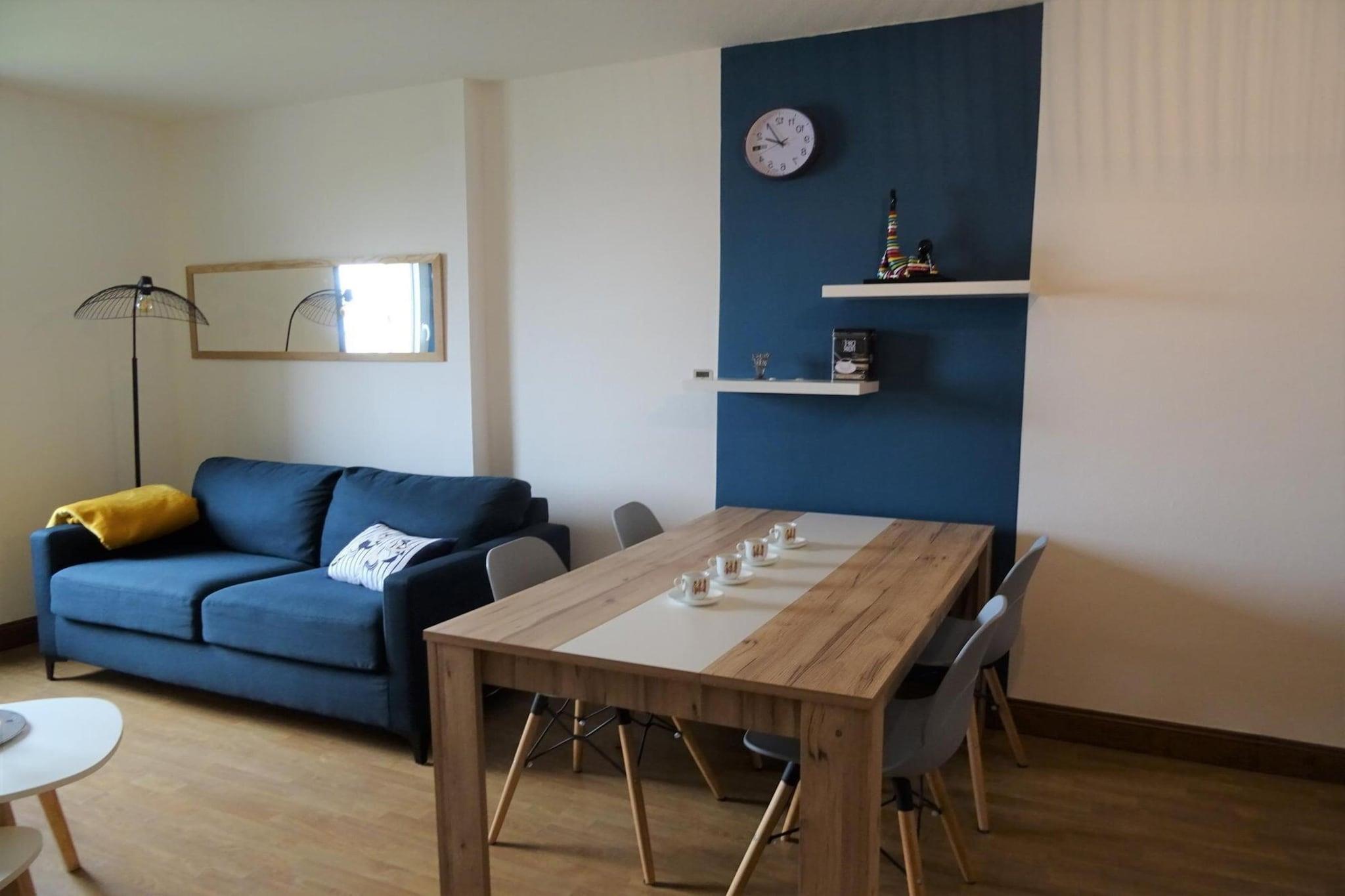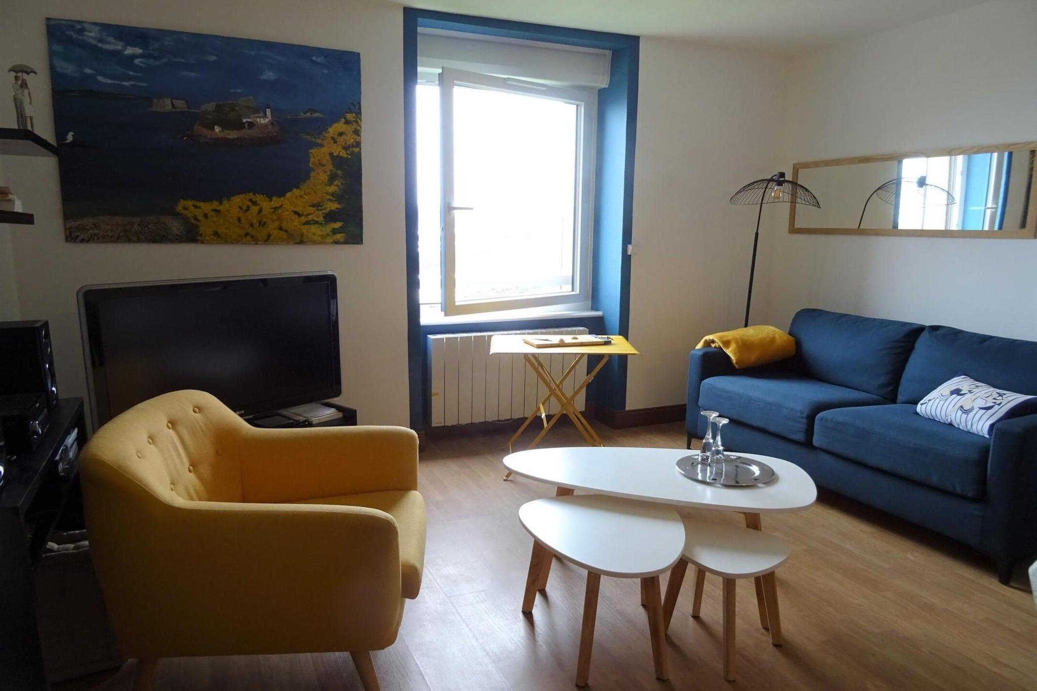 Lille, men dejligt! Pænt studie med en smuk udsigt over havet og stranden foran. Den lille lejlighed ligger på 2. sal i en feriebolig (med elevator). Et ideelt alternativ til et hotel eller gæsteværelse, da I helt sikkert kan forsyne jer selv fra tid til anden. Nyd den smukke udsigt som det første om morgenen med en fransk morgenmad med café og croissanter eller om aftenen med et glas vin. Den private parkeringsplads er også velkommen og særligt praktisk, især i højsommeren. De otte strande, der tilhører kommunen, ligger i den østlige ende af Morlaix-bugten og strækker sig over 17 km kystlinje. Ud over brede sandstrande, der er bevogtet om sommeren, finder I også små, beskyttede bugter. Plougasnou ligger i grænseområdet mellem de to departementer Finistère og Côtes d'Armor. En ideel, central beliggenhed for attraktive udflugter til begge regioner: Mod vest den smukke lille by Morlaix, den maleriske kur- og havneby Roscoff og badebyen Carantec; mod nordøst begynder den fantastiske lyserøde granitkyst med den populære badeby Perros Guirec få kilometer væk.
