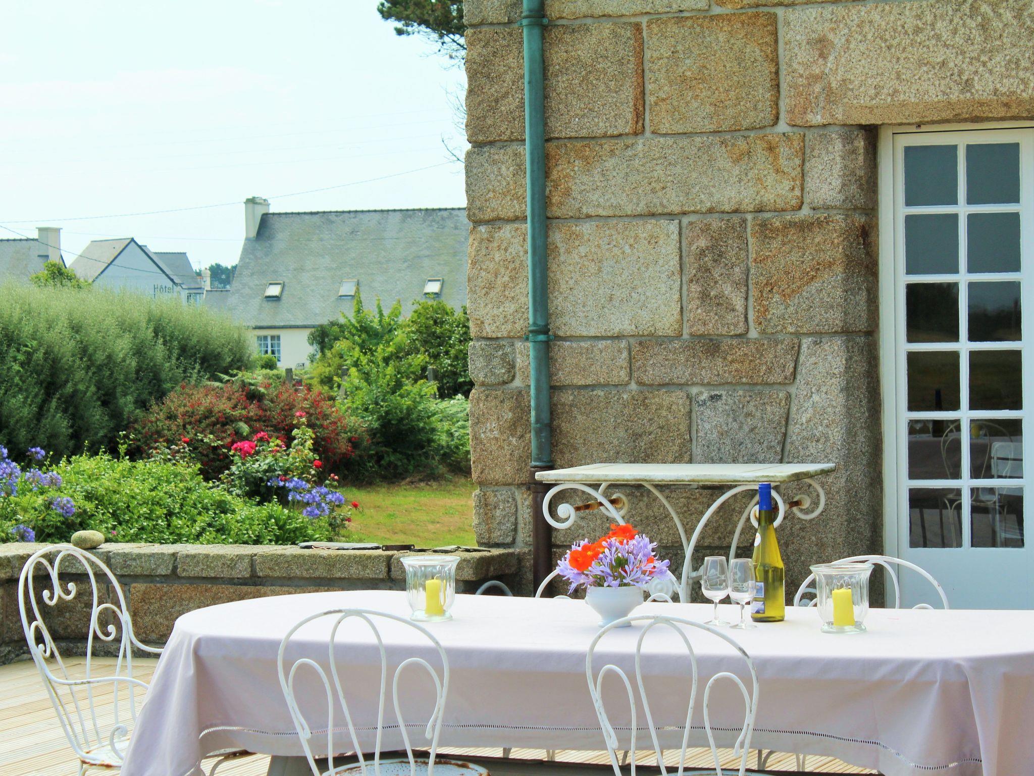 A large villa, classic, Breton, stately - a great property built from old granite stones. The terraces are large and promise a unique view of the largest granite lighthouse in the whole of Europe. In addition to the villa's superb construction, the beautiful, huge garden in front of the Phare de Ile de Vierge is certainly unforgettable. The property has a large entrance gate, a dovecote and a fountain, and a granite terrace to the south. Towards the lighthouse is the larger wooden deck. The villa offers plenty of space for twelve people in six bedrooms, three bathrooms, a fireplace and a large kitchen with direct access to the living room. You can also see the lighthouse directly from the living room through large windows. A man-sized fireplace, from an old manoir, is also located in the living area. You enter the villa through the large and open entrance area.