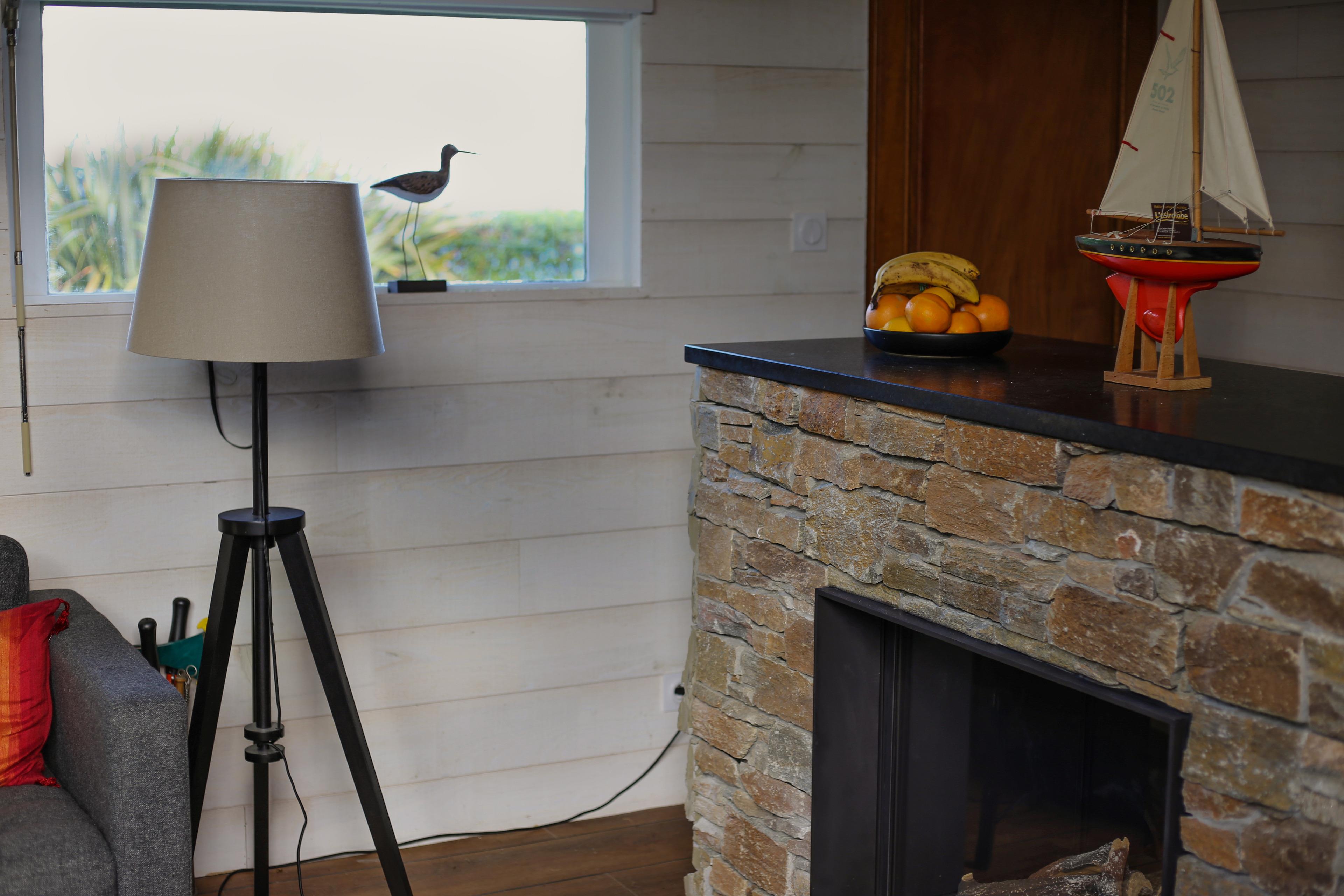 Sandpiper Cottage selbst ist ein gemütliches Ferienhaus, das Anfang der 80er Jahre erbaut und kürzlich in einem modernen renoviert wurde. Im Wohnzimmer dominiert ein großer durchsichtiger Gaskamin aus Naturstein, der das gesamte Haus heizen kann. Die Temperaturen in Plouguerneau sind im Allgemeinen auch im Winter mild, aber an einem kühlen Abend gibt es nichts romantischeres als vor einem einladenden Kamin zu sitzen.