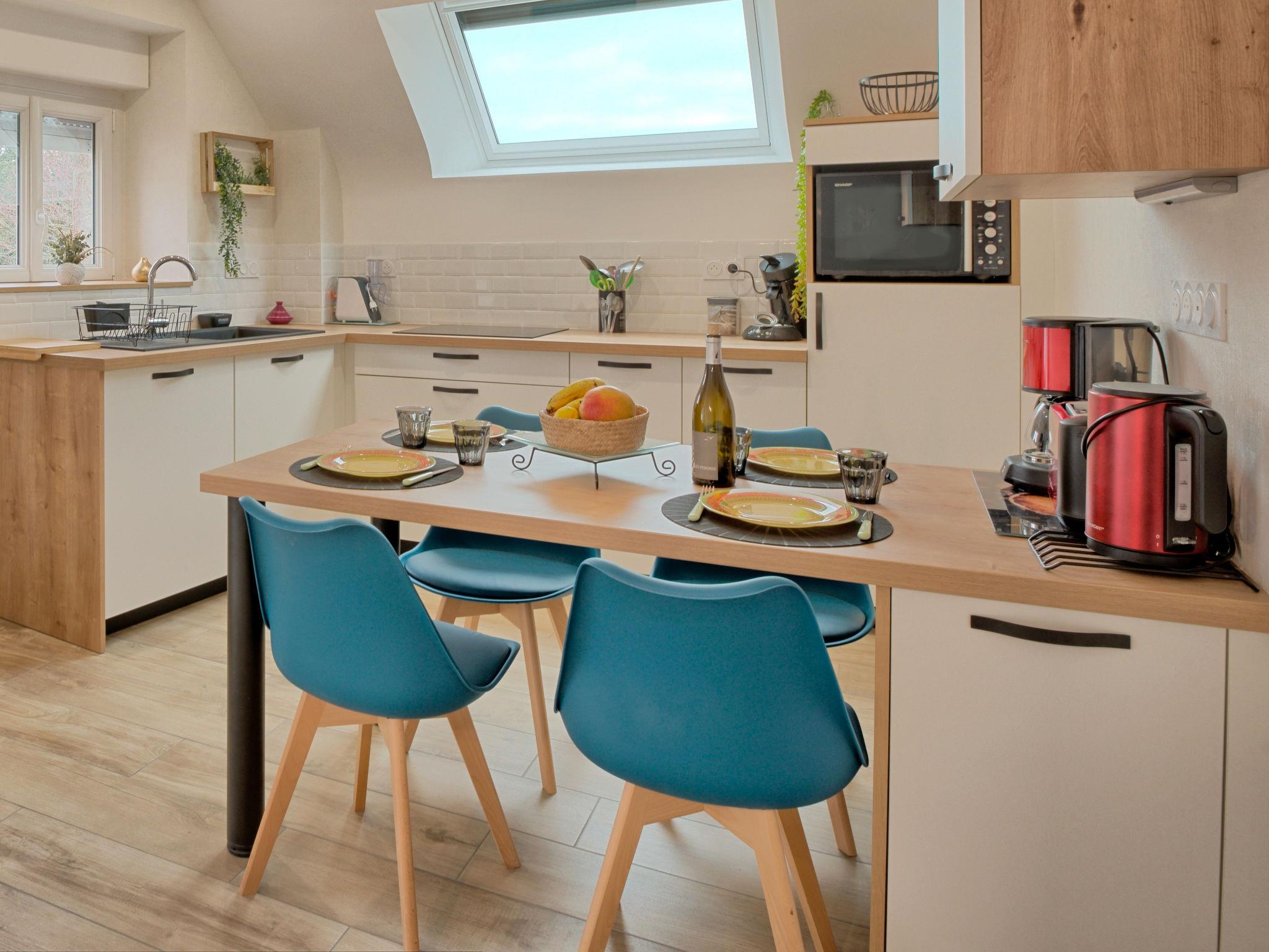 "Hoedic", 3-room apartment 40 m2 on 1st floor. Fully renovated in 2022, beautiful and cosy furnishings: living/dining room with dining table, satellite TV and international TV channels (flat screen). 1 room with 1 french bed (140 cm, length 190 cm). 1 room with 2 beds (90 cm, length 190 cm). Open kitchen (dishwasher, 3 induction hot plates, toaster, microwave, freezer, electric coffee machine). Shower, sep. WC. Electric heating. Deck chairs (2). Facilities: washing machine, iron, hair dryer. Internet (WiFi, free). Please note: non-smokers only. Smoke alarm. Offer by a private individual according to Art. 155, IV of CGI. 56169250021PL
