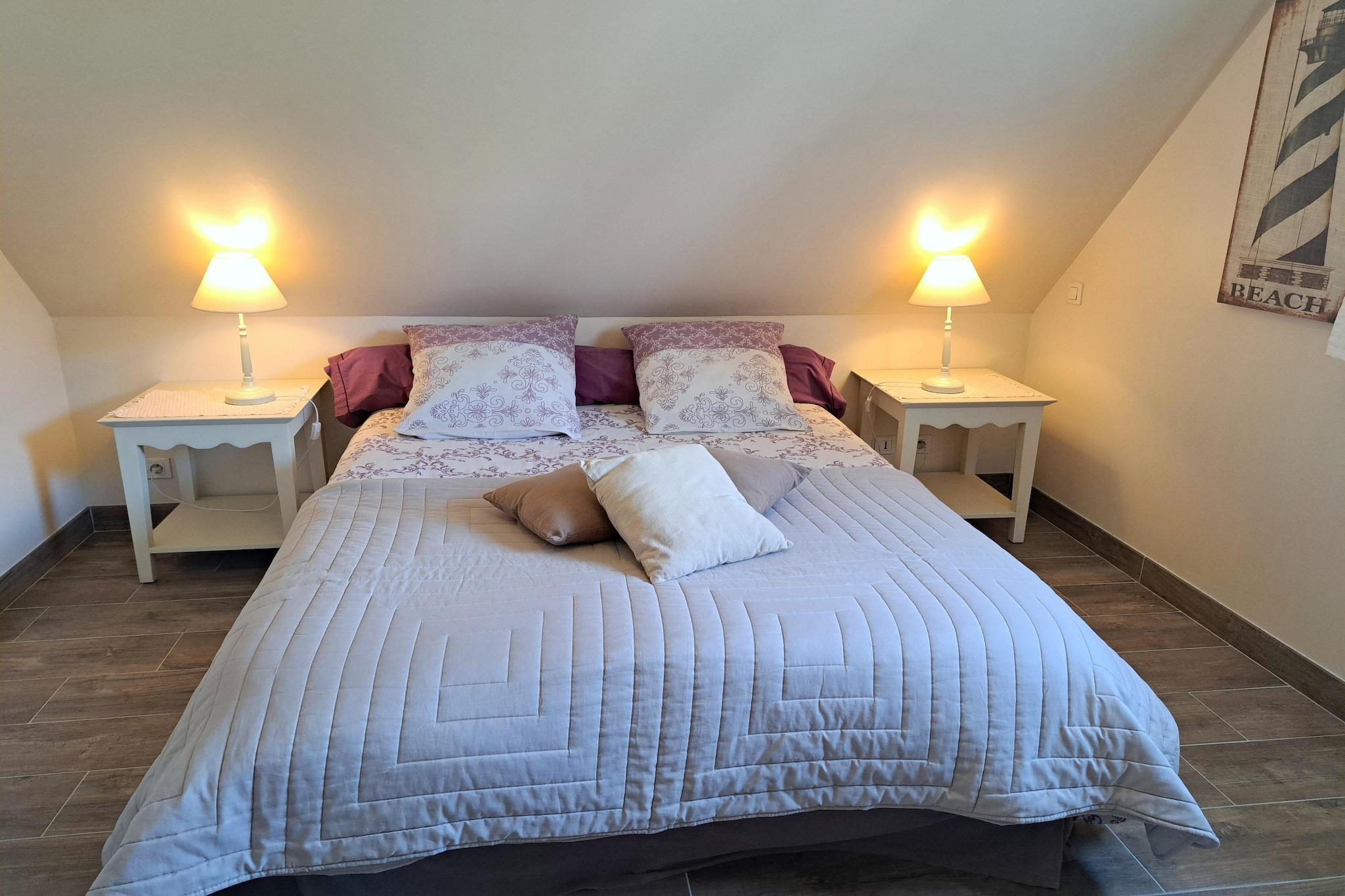 Smuk havudsigt over den lavvandede bugt! Ved lavvande trækker havet sig tilbage her: en ideel betingelse for en ubekymret ferie med børn, og din firbenede ven vil også føle sig hjemme her. Dejligt sommerhus til en afslappet ferie ved havet. For en forfriskende svømmetur skal du bare krydse den lille kystvej. Den indhegnede havegrund med den overdækkede træterrasse indbyder til solbadning og hyggelig grillaften. Plouneour-Trez er nabobyen Brignogan-Plage ved Goulven-bugten. I sejlklubben, som ligger kun få meter fra jeres sommerhus, kan unge og gamle tage undervisning i sandyachting. Aktiviteter i nærheden: I nabobyen Brignogan-Plage står den 8,5 m høje menhir Men Marz, det er en af de fire største menhirs i Frankrig. Pontusval Fyrtårn, et af de vigtigste for skibsfart i denne region, kan hurtigt nås via den tilstødende kyststi GR34. I det fjerne knejser fyrtårnet i Ile Vierge over hele kysten. Et besøg med en krydsning med båd anbefales. I Kerlouan er den gamle fiskerby Meneham blevet restaureret. Her afholdes udstillinger, der er en specialrestaurant og om sommeren er der dans uden for Breton hver søndag. Hver fredag er der marked i Brignogan, og det største marked i området er i Lesneven. Frisk fisk og mange regionale specialiteter er tilgængelige her hver mandag