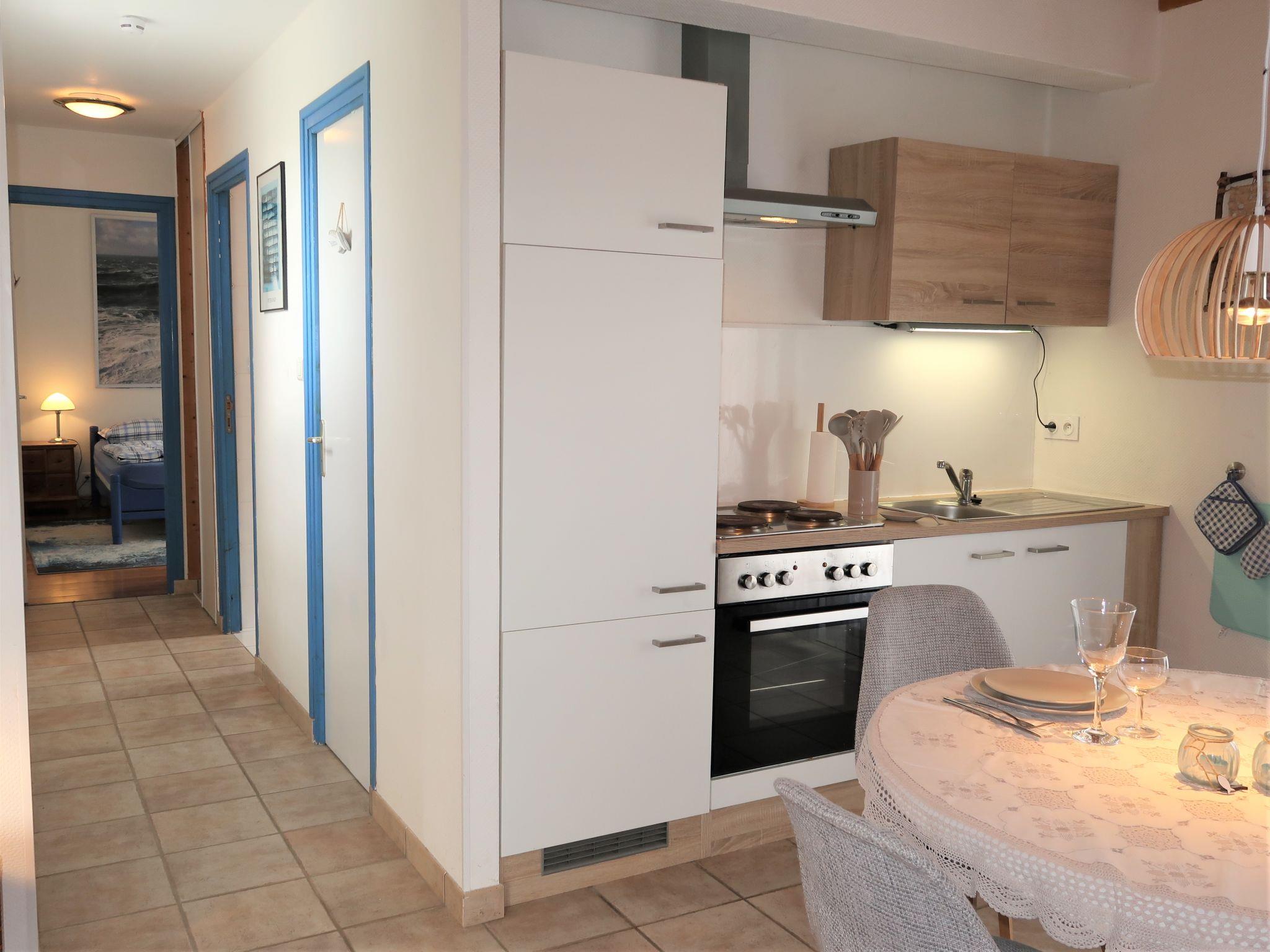 "Ker Maeziou", 2-room house 60 m2. Comfortable and tasteful furnishings: living/dining room with dining table, satellite TV and international TV channels. Exit to the garden. 1 room with 1 bed (180 cm, length 200 cm). Exit to the garden. Small, open kitchen (4 hot plates, oven, toaster, kettle, electric coffee machine). Exit to the garden. Shower, sep. WC. Gas heating. Patio, south facing position. Terrace furniture, deck chairs (2). Facilities: hair dryer. Internet (WiFi, free). Please note: non-smoking house. Maximum 1 pet/ dog allowed. Smoke alarm, fire extinguisher. 29206 000021 DV