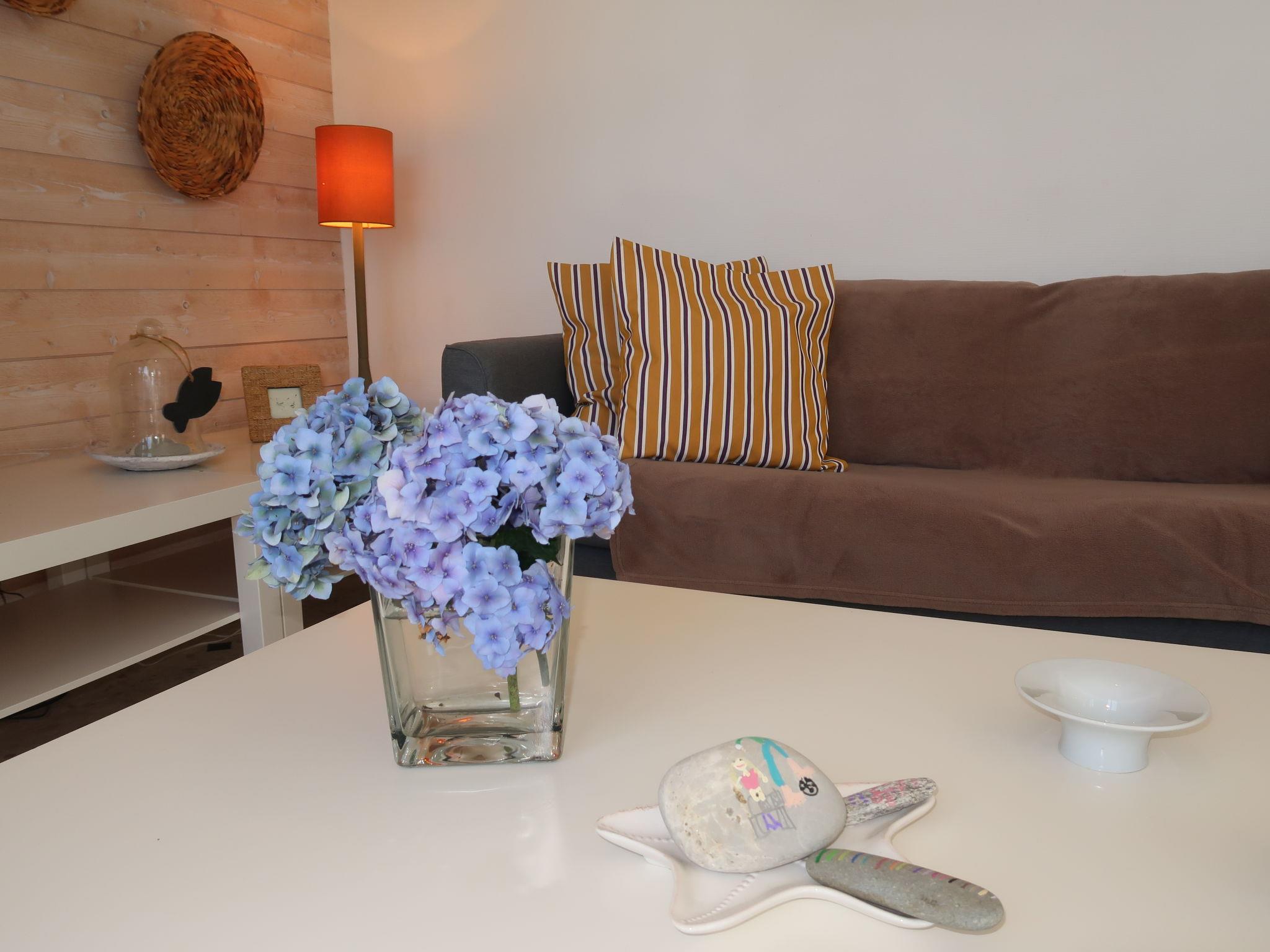 "Rendez-vous à la plage", 4-room terraced house 70 m2 on 2 levels. Practical and cosy furnishings: living/dining room with dining table, satellite TV and international TV channels. 1 room with 1 french bed (140 cm, length 190 cm). Open kitchen (oven, 4 ceramic glass hob hotplates, toaster, kettle, microwave, freezer, electric coffee machine). Exit to the garden. Shower/WC. Electric heating. Upper floor: walk-through room with sloping ceilings with 2 beds (90 cm, length 190 cm). 1 room with sloping ceilings with 2 beds (90 cm, length 190 cm). Parquet floors. Terrace. Terrace furniture, barbecue (portable). Facilities: children's high chair, baby cot for up to 2 year olds. Please note: non-smokers only. Maximum 1 pet/ dog allowed. Smoke alarm.