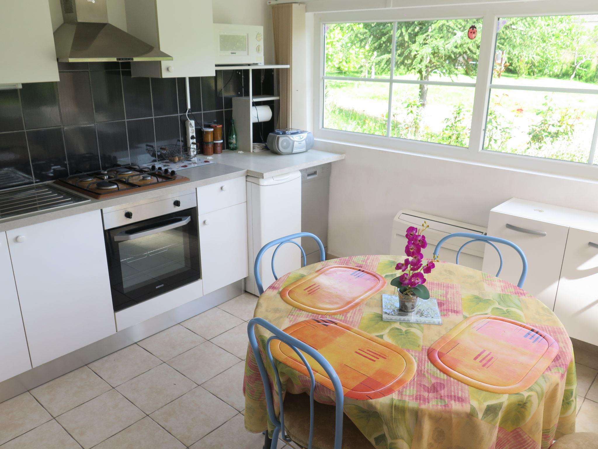 "Rillettes", 4-room house 70 m2. Practical and beautiful furnishings: living/dining room with dining table and TV (flat screen). Exit to the terrace. 2 rooms, each room with 1 french bed (140 cm, length 190 cm). Kitchen (oven, dishwasher, 4 gas rings, toaster, kettle, microwave, freezer, electric coffee machine) with dining table. Exit to the terrace. Shower/WC. Electric heating. Terrace 20 m2 partly roofed. Terrace furniture, barbecue (portable), deck chairs. View of the countryside. Facilities: washing machine, iron, children's high chair, baby cot. Please note: suitable for families. Non-smoking house. Maximum 1 small pet/ dog allowed. Smoke alarm.