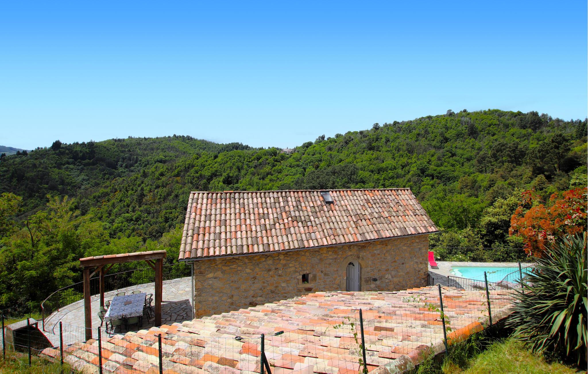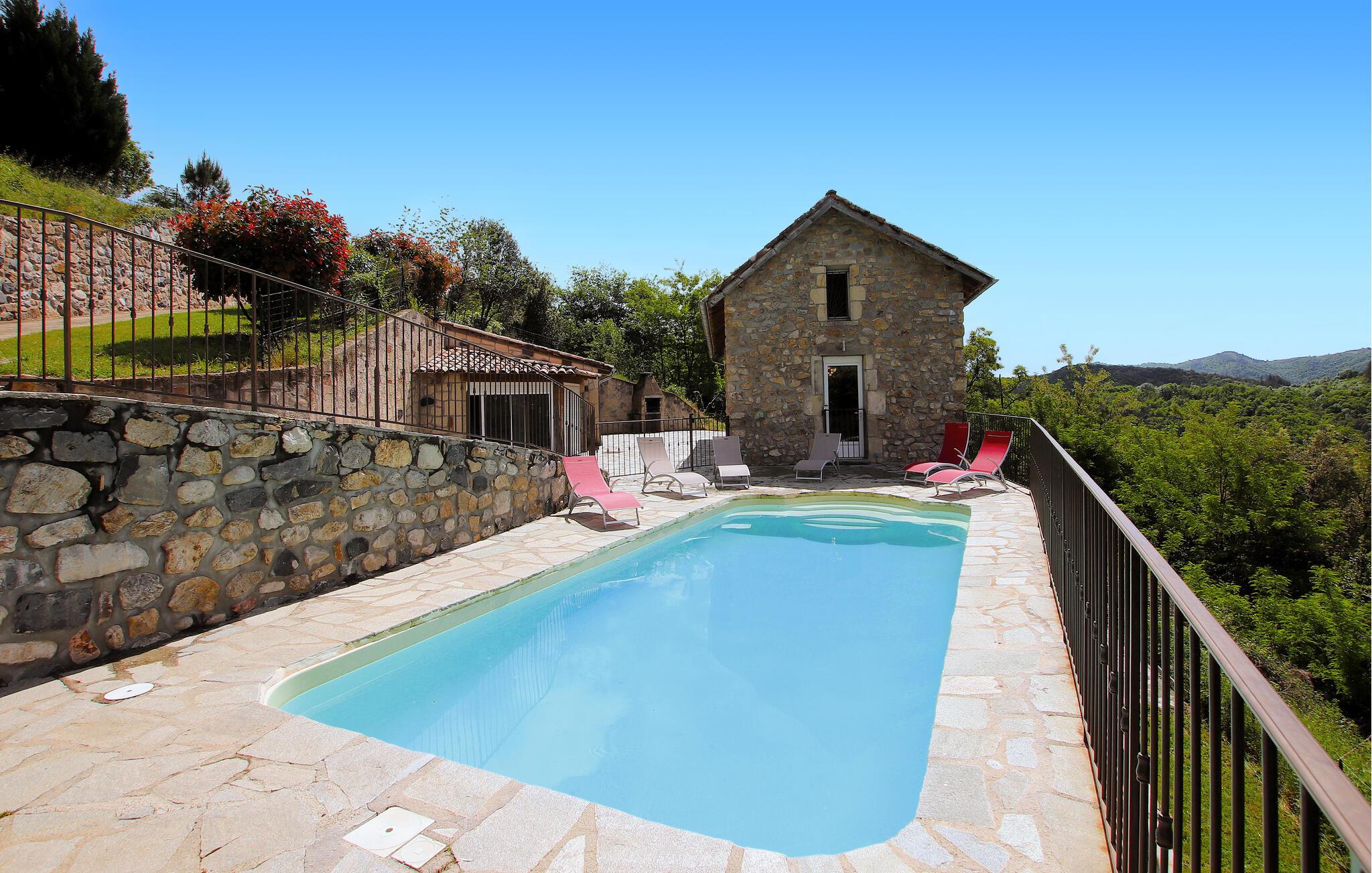 Oplev idylliske dage i dette store og karakterfulde feriehus med opvarmet pool omgivet af uspoleret natur.