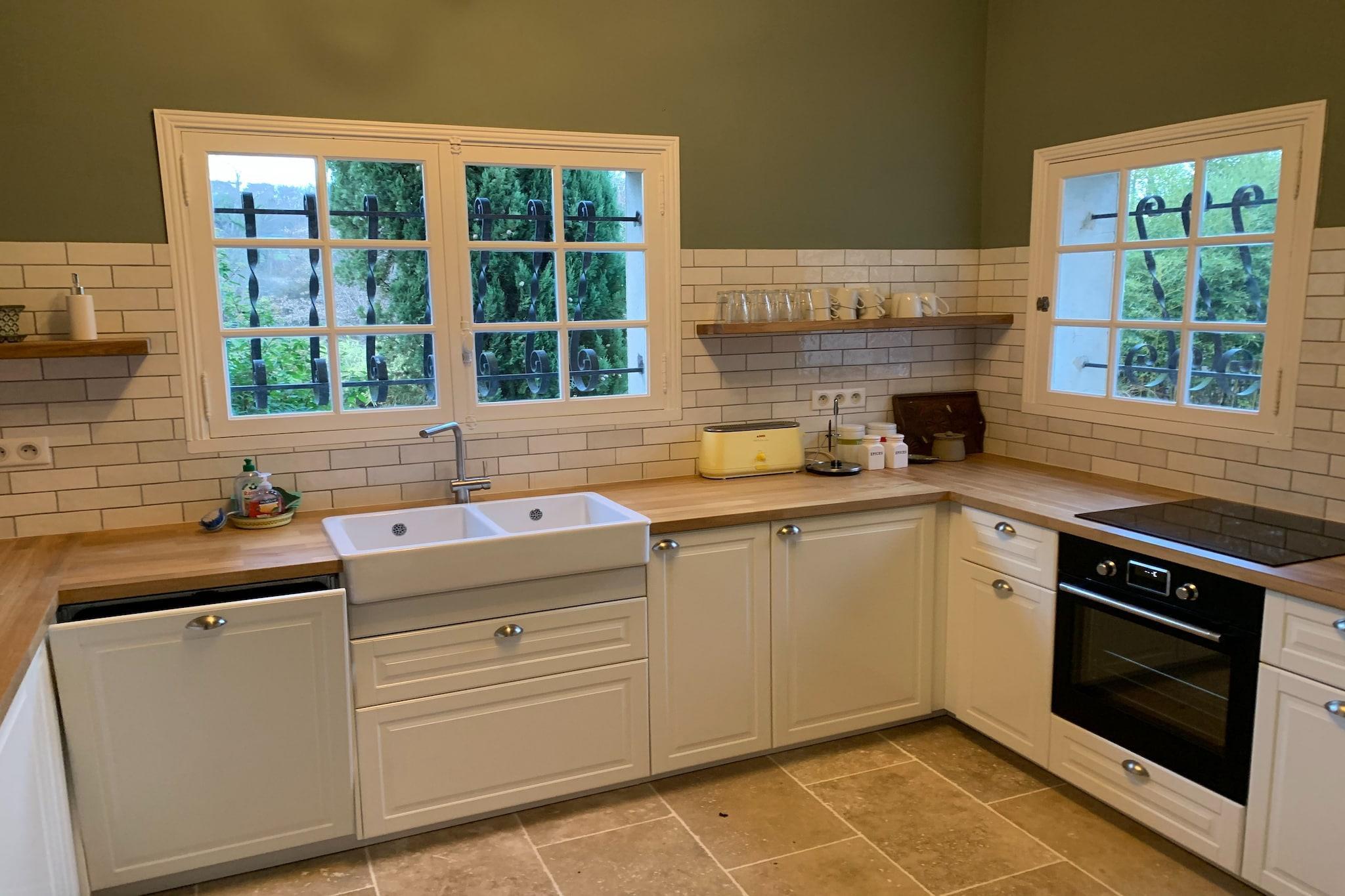 Stueetage: (Stue(Fjernsyn, pejs, sofahjørne, toilet), Køkken(spisebord, kogeplade, brødrister, komfur, 2x ovn, køle-fryseskab), soveværelse(enkeltseng), soveværelse(enkeltseng, barneseng), badeværelse(badekar med bruser, bruser, 2x håndvask, toilet), toilet, vaskerum (tørretumbler, vaskemaskine), bryggers(mikrobølgeovn, fryser)) På 1. etage: (soveværelse(dobbeltseng(boxmadras, 160 x 210 cm)), soveværelse(dobbeltseng(140 x 200 cm)), Soveværelse med badeværelse(dobbeltseng(150 x 200 cm), badekar med bruser, håndvask, toilet), badeværelse(bruser(Walk-in-bruser), håndvask)) Gæsteophold Stueetage: (Køkken(komfur(Komfur med fire kogeplader, gas), ovn, opvaskemaskine , tørretumbler, vaskemaskine), stue / spisestue(spisebord(8 personer), sofahjørne), soveværelse(dobbeltseng(150 x 190 cm)), badeværelse(badekar med bruser, håndvask), toilet) Gæsteophold På 1. etage: (soveværelse(dobbeltseng(140 x 190 cm)), soveværelse(dobbeltseng(150 x 200 cm)), Repos) have, havemøbler, grill, liggestole, swimmingpool(privat), petanquebane, bordtennisbord
