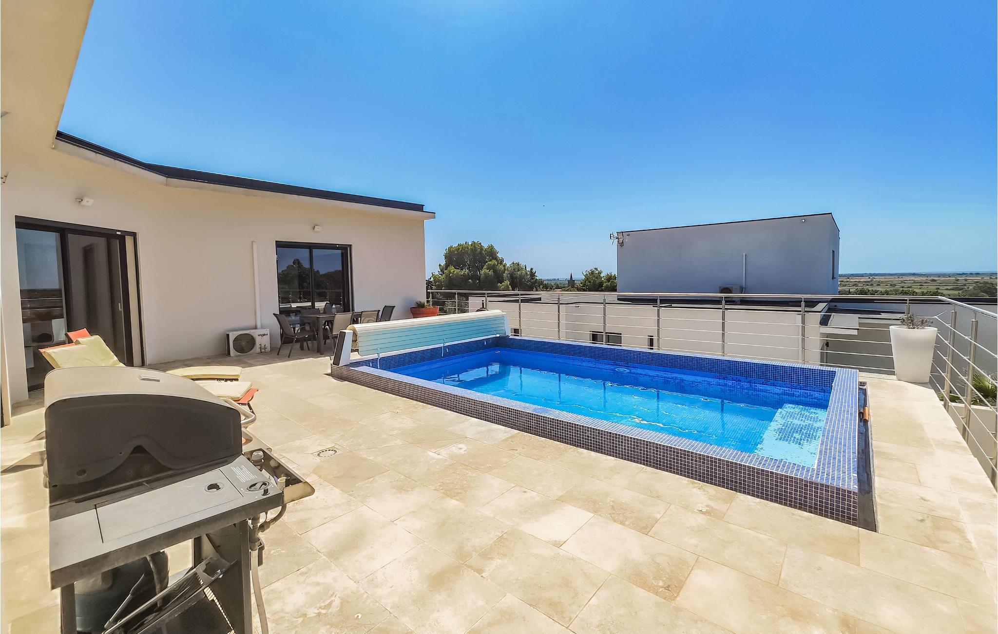 Dette rummelige feriehus med pool byder velkommen få minutters kørsel fra den kilometerlange sandstrand.